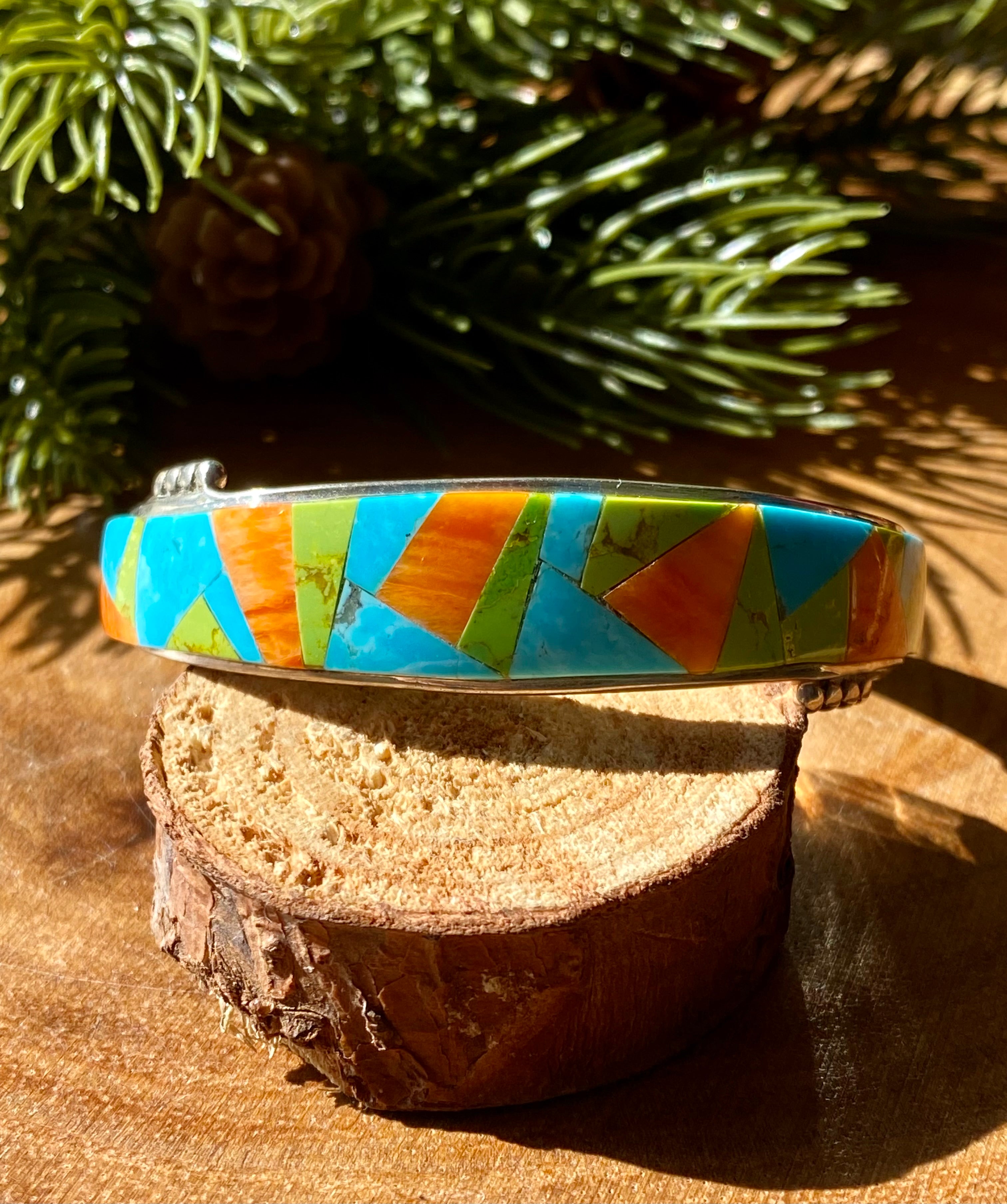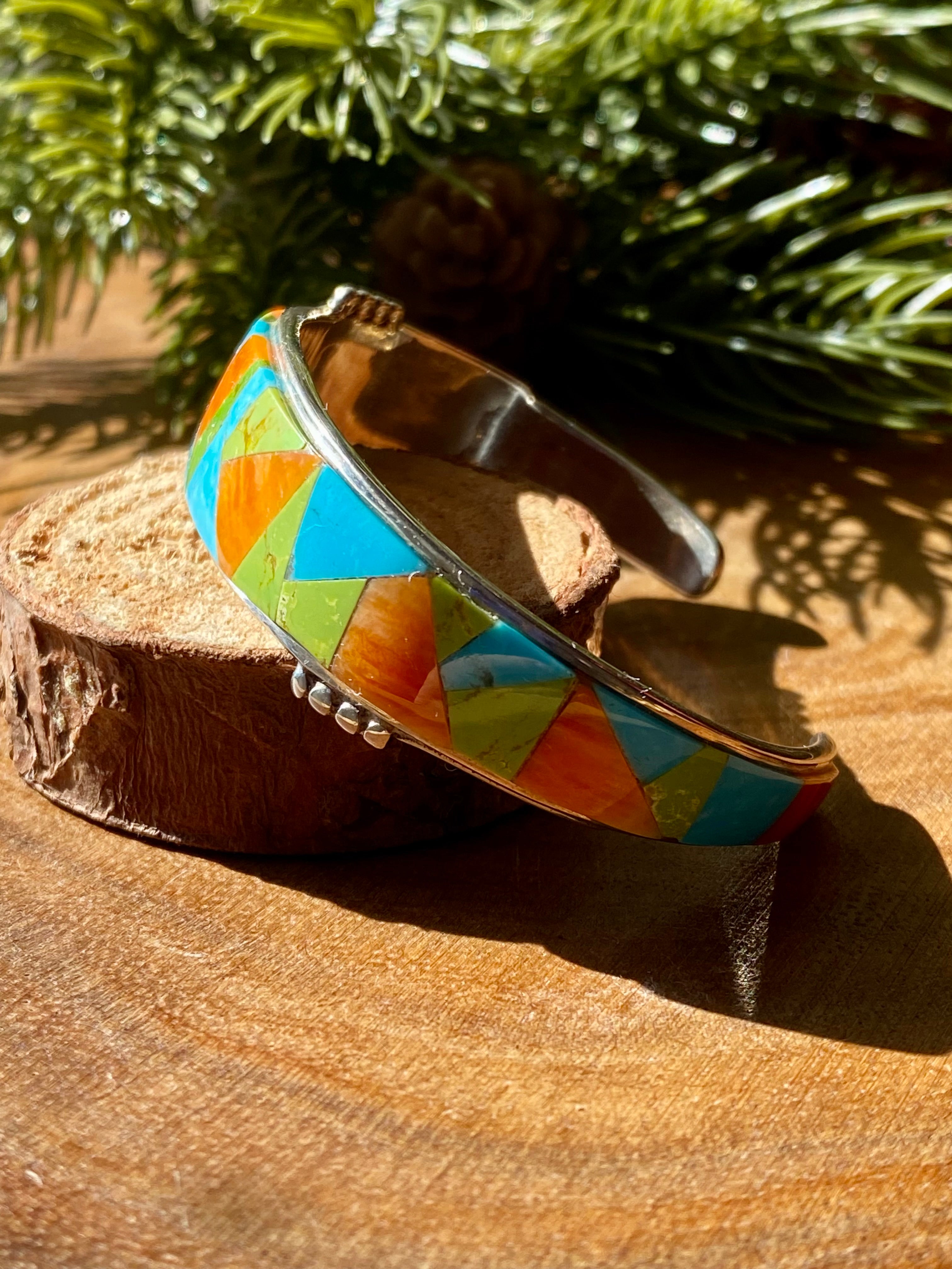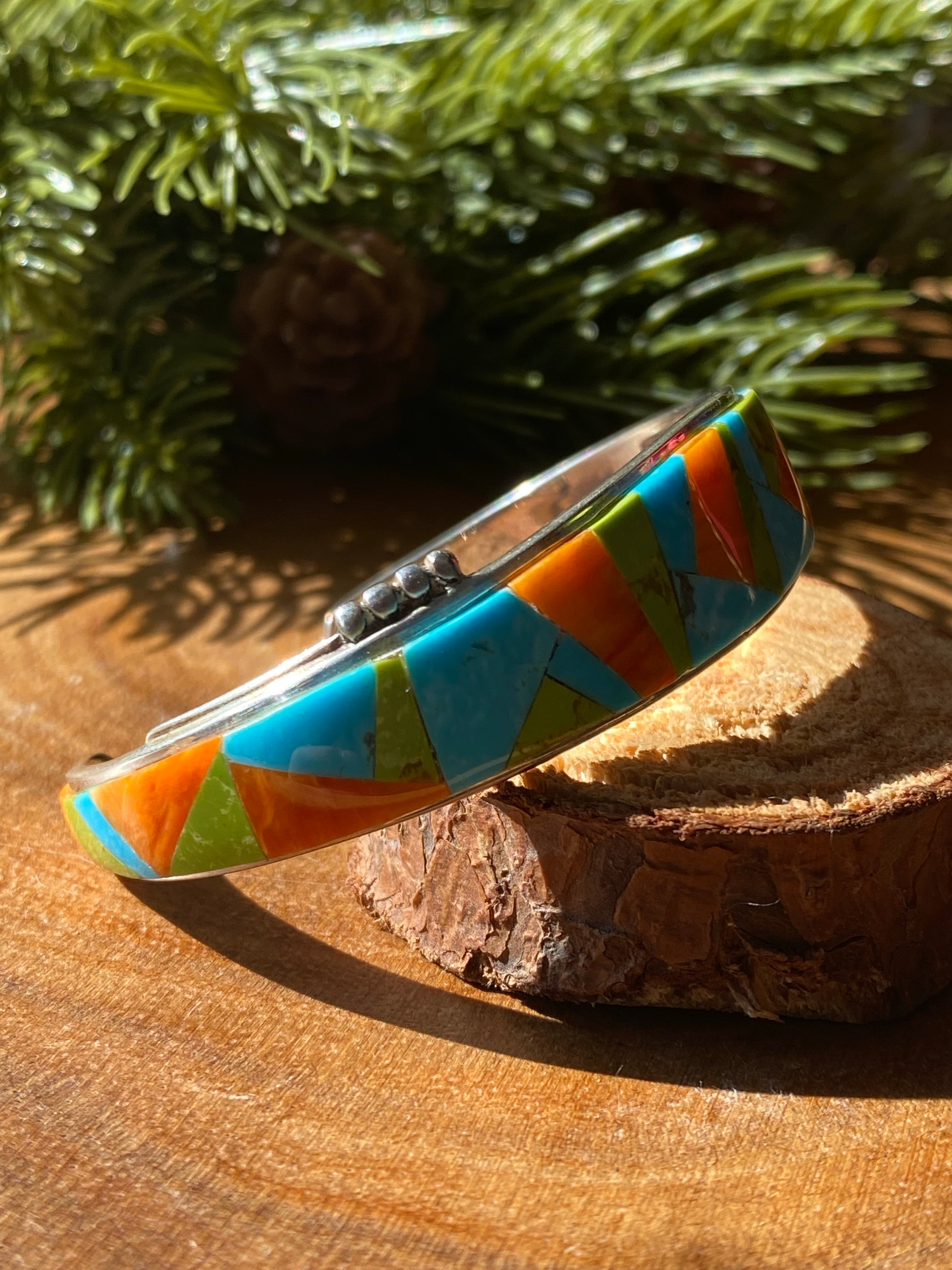 Navajo Made Multi Stone & Sterling Silver Inlay Cuff Bracelet