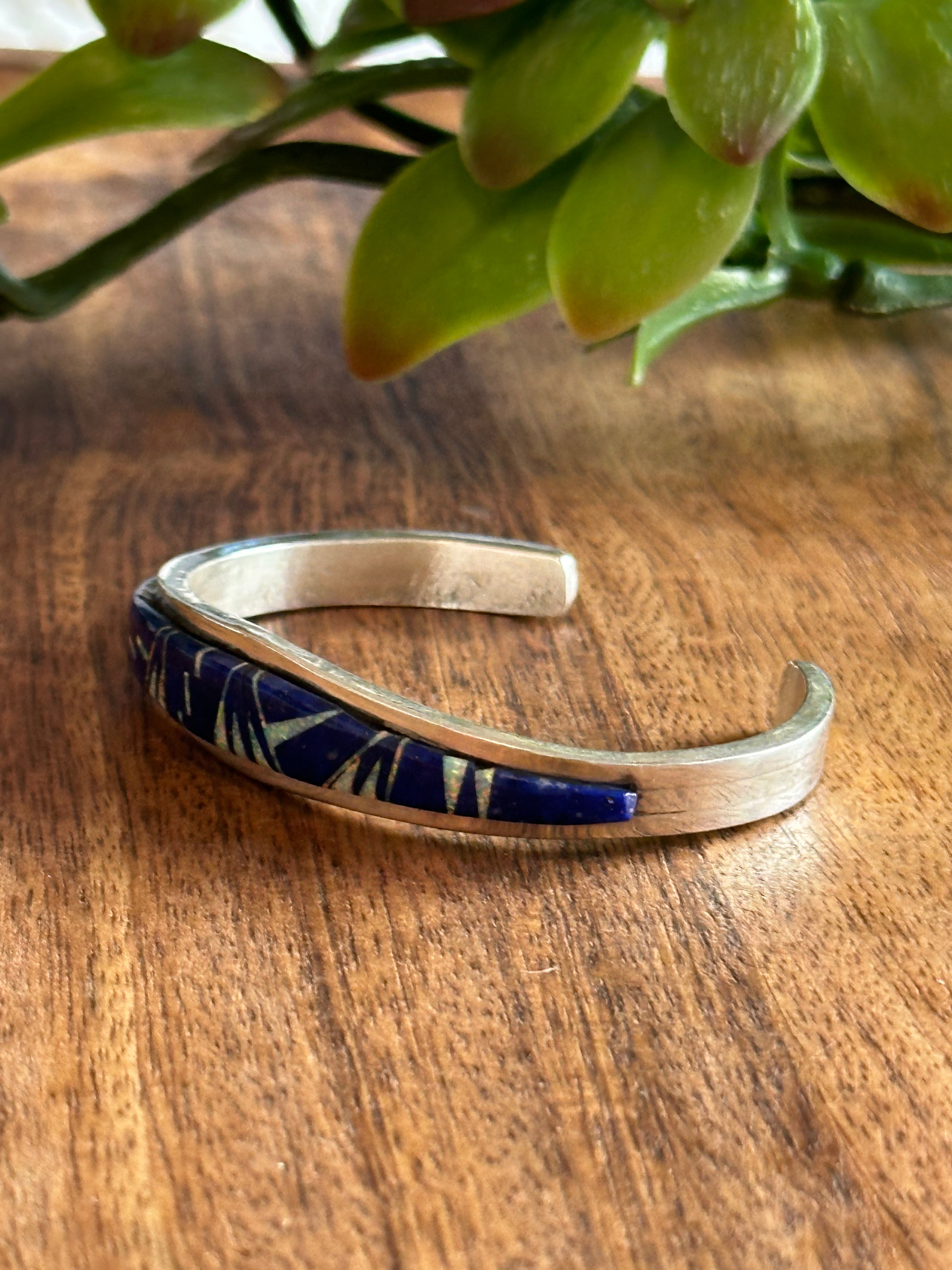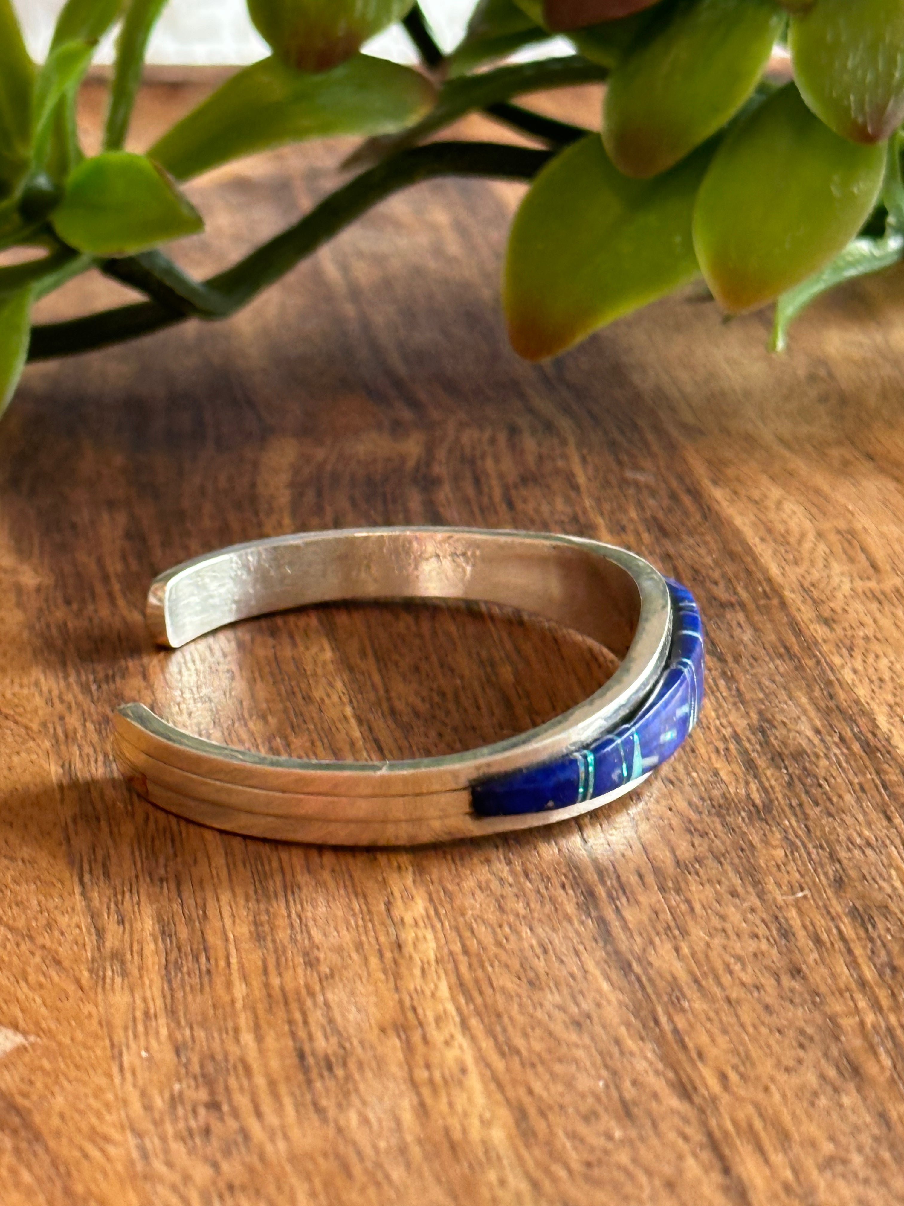 Navajo Made Multi Stone & Sterling Silver Inlay Cuff Bracelet