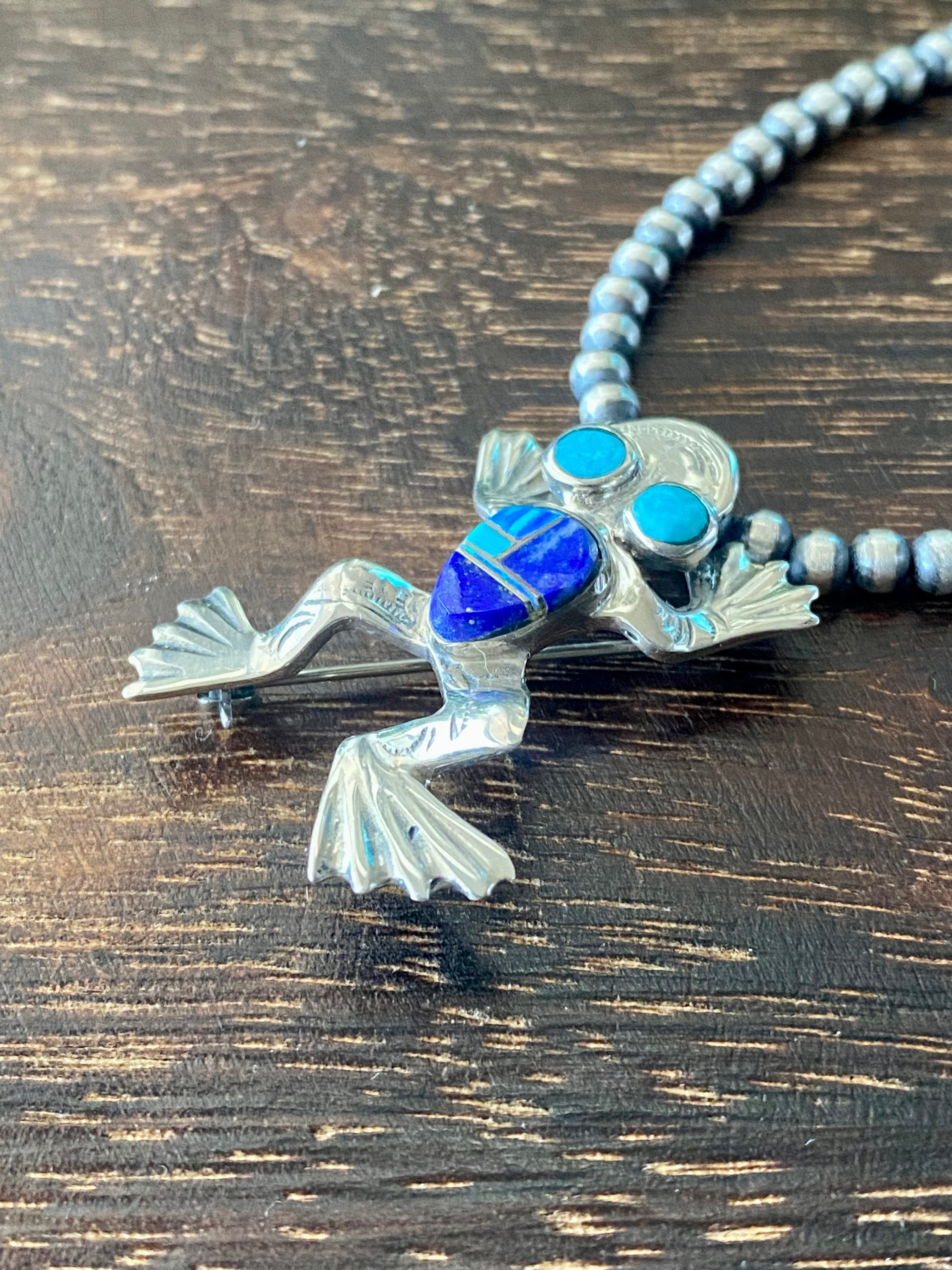 Navajo Made Multi Stone & Sterling Silver Inlay Frog Pin/Pendant