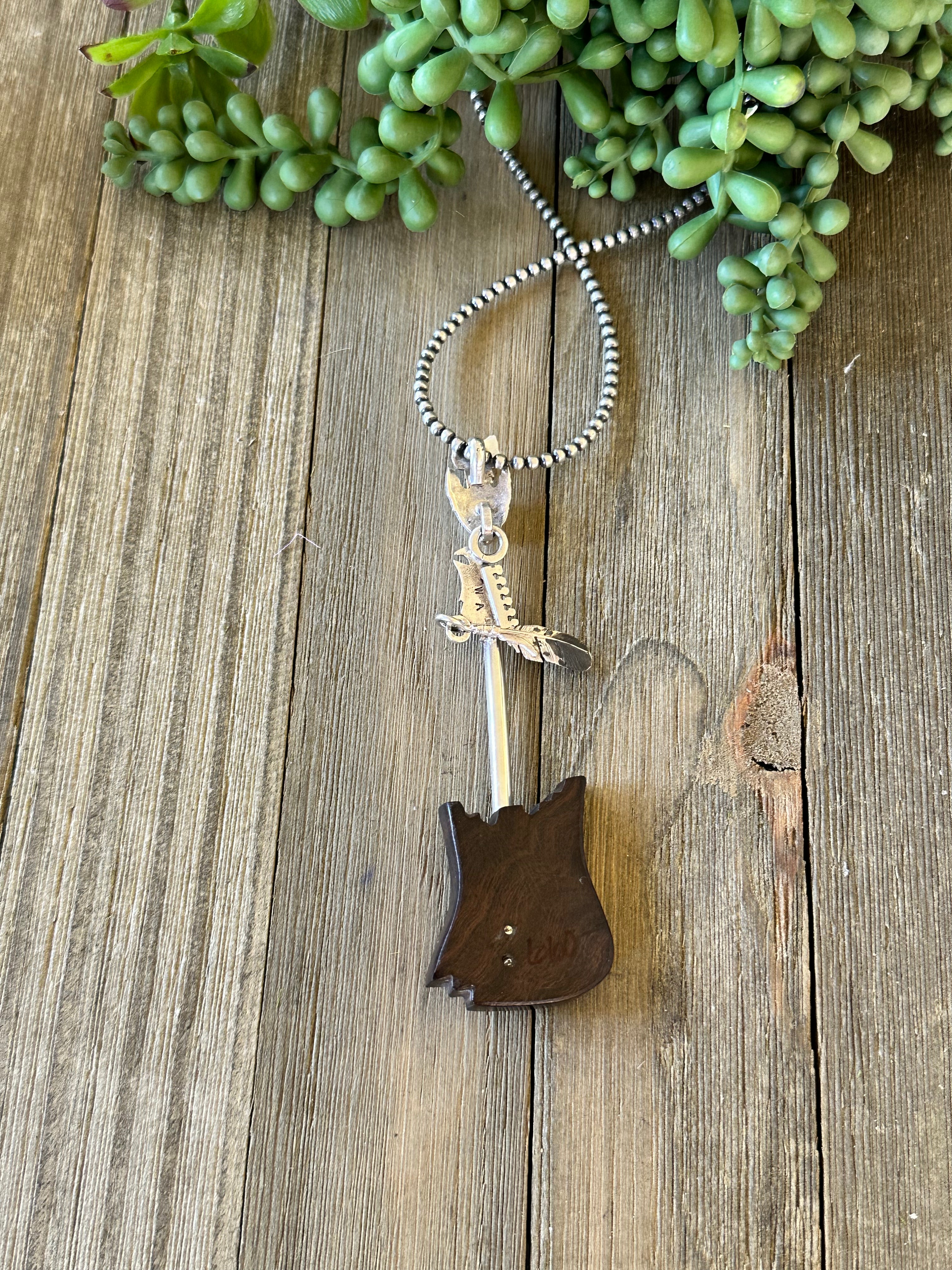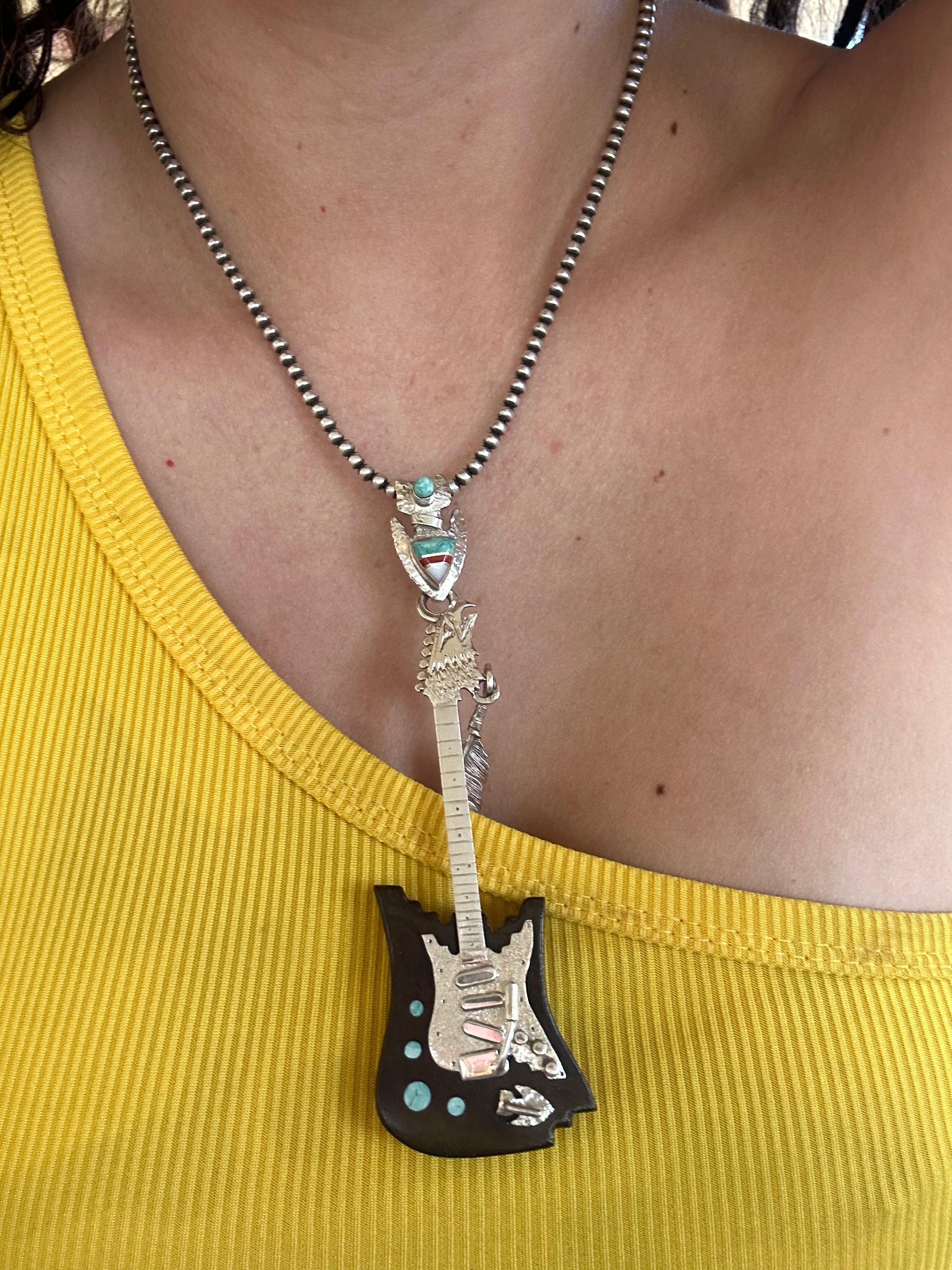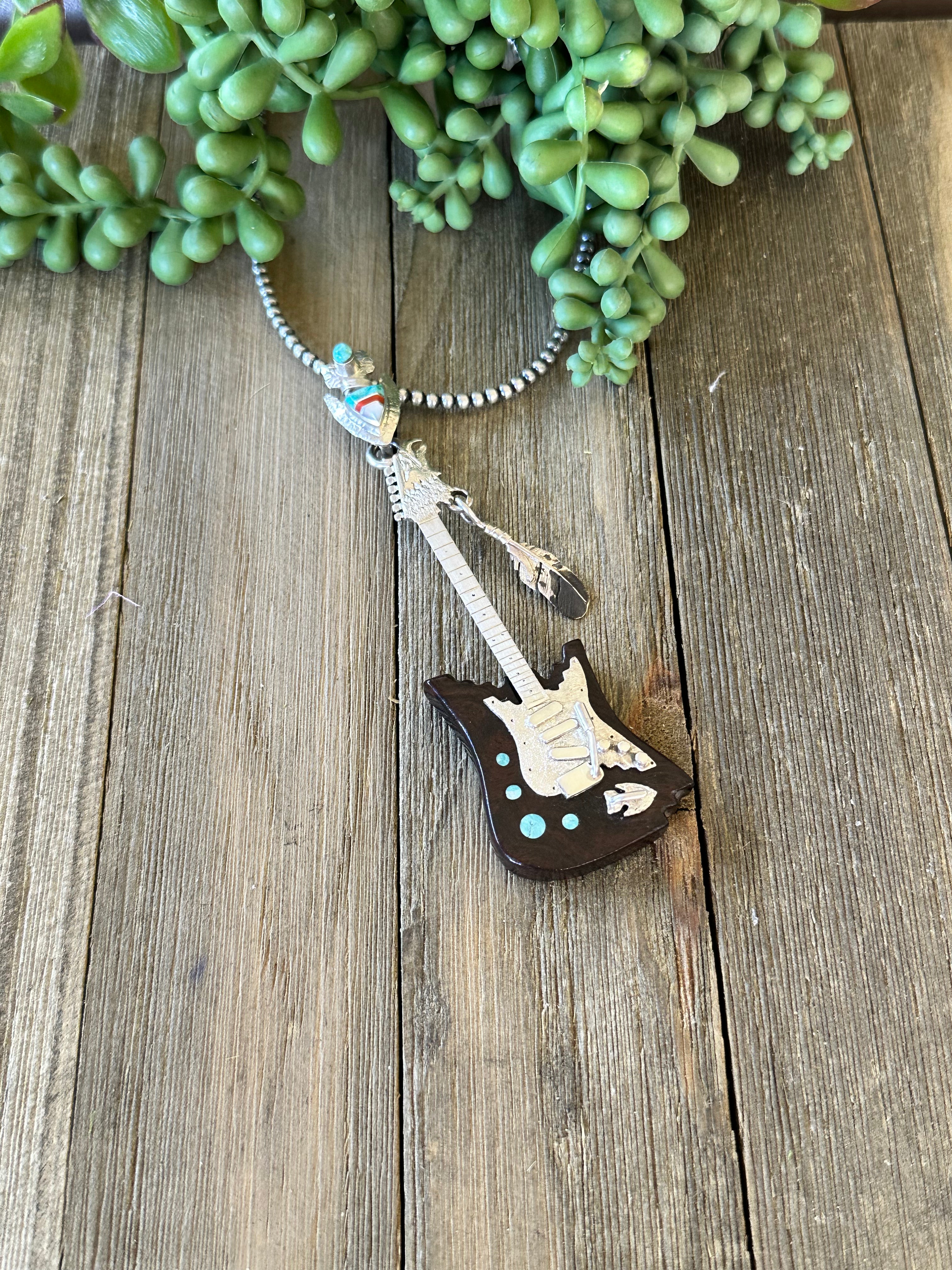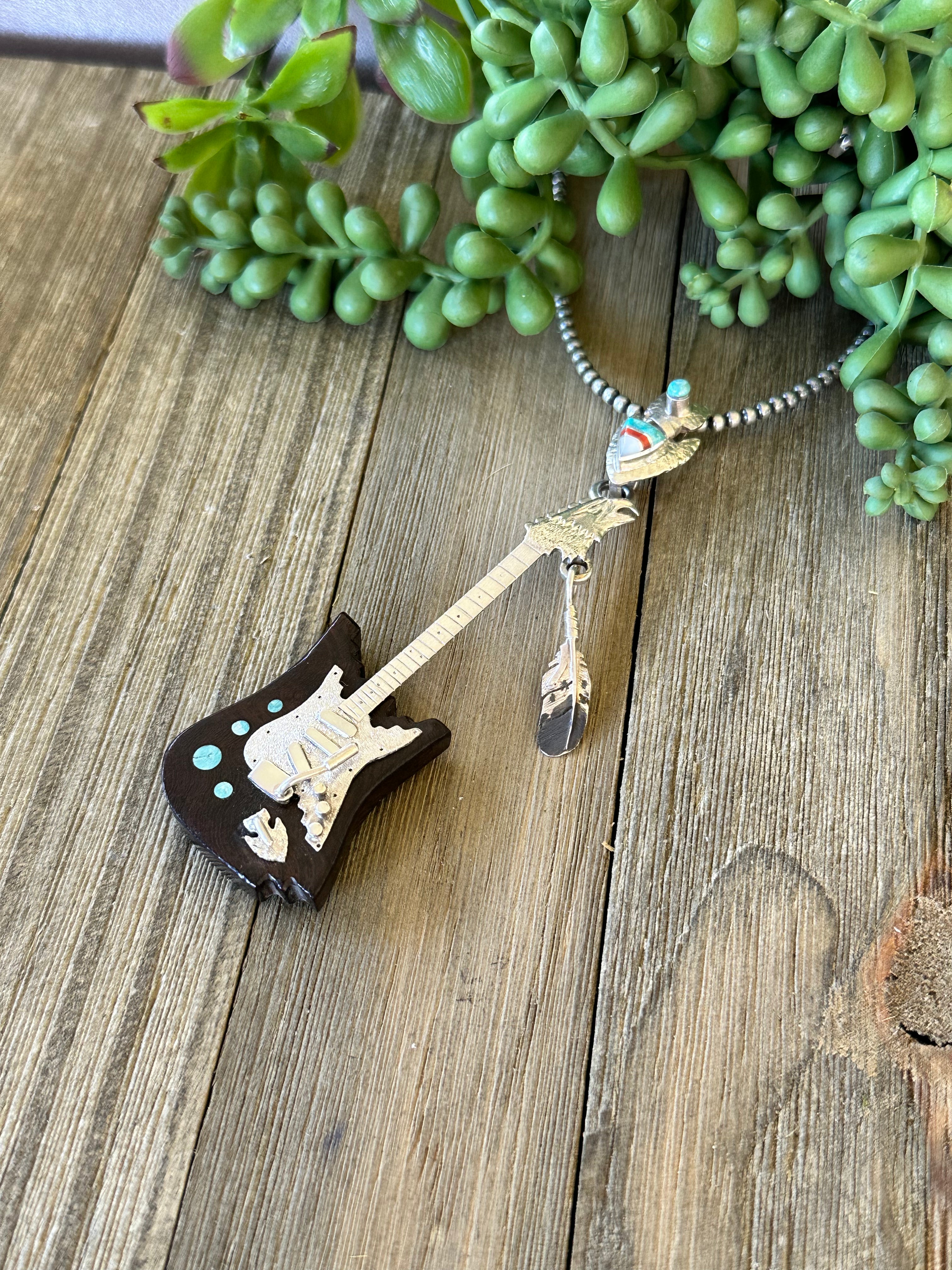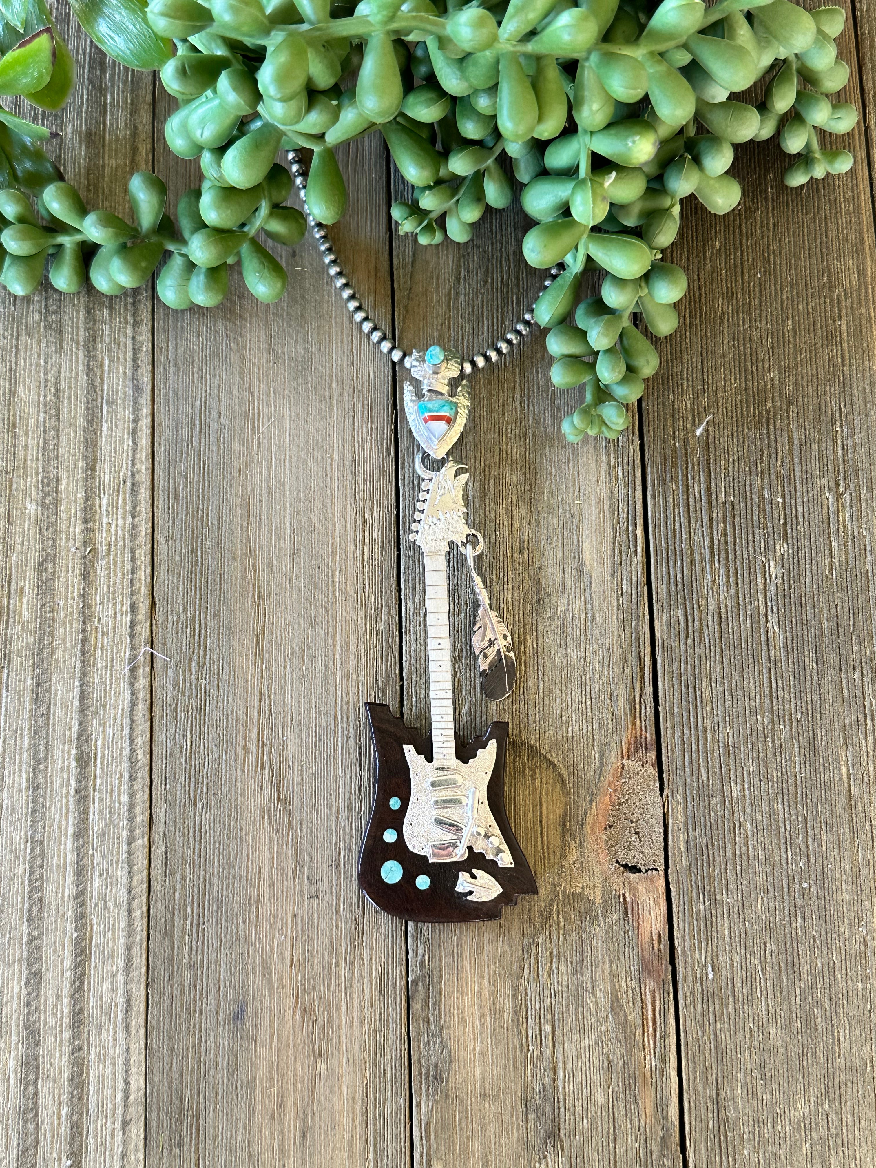 Navajo Made Multi Stone & Sterling Silver Inlay Guitar Pendant