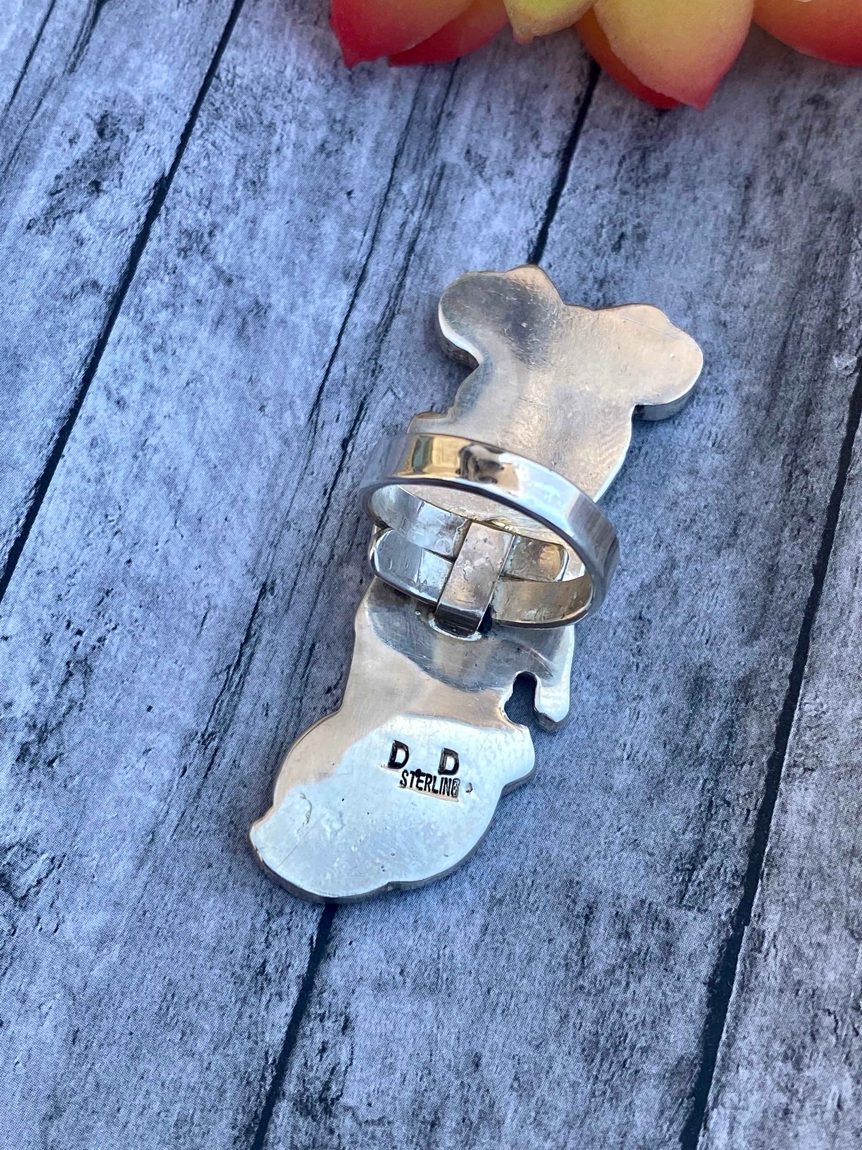 Navajo Made Multi Stone & Sterling Silver Inlay Mouse Adjustable Ring Size 5