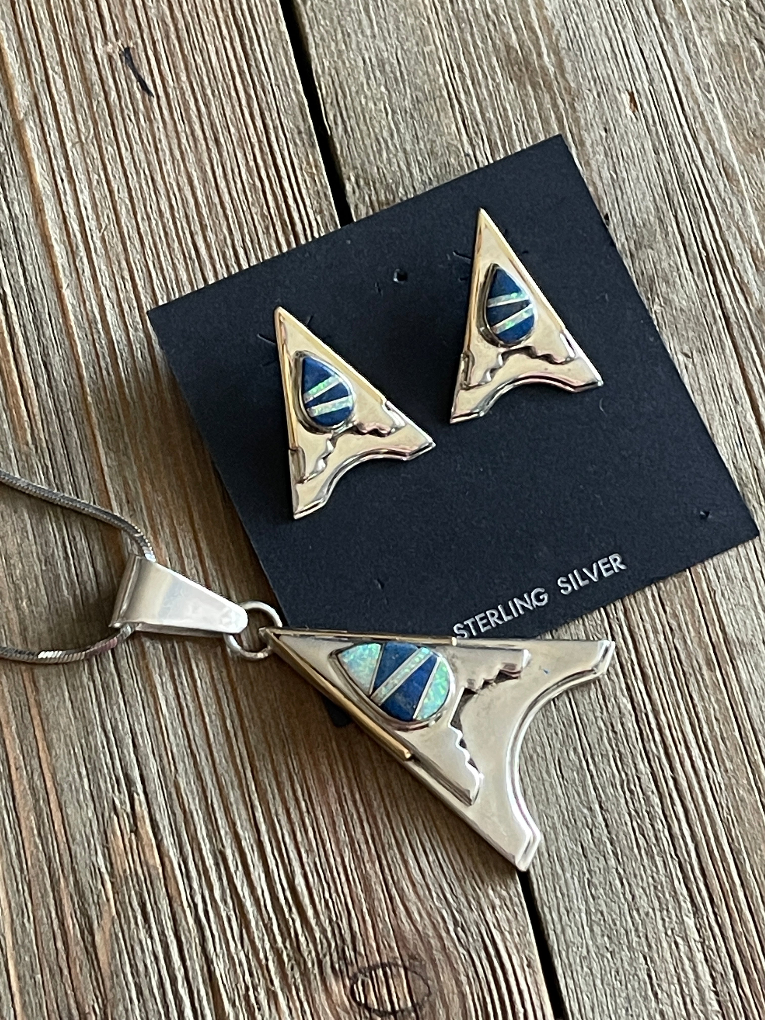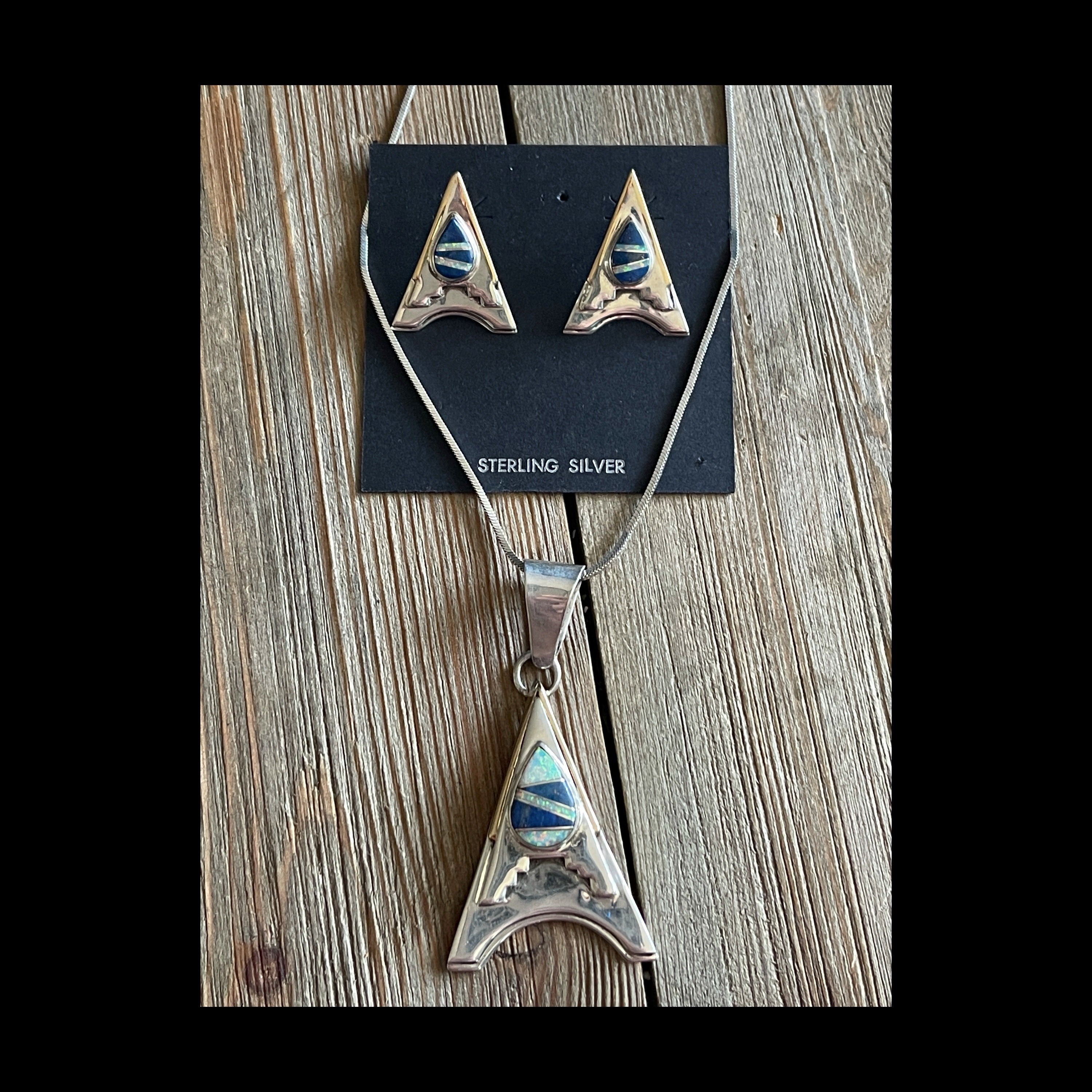 Navajo Made Multi Stone & Sterling Silver Inlay Necklace & Earring Set