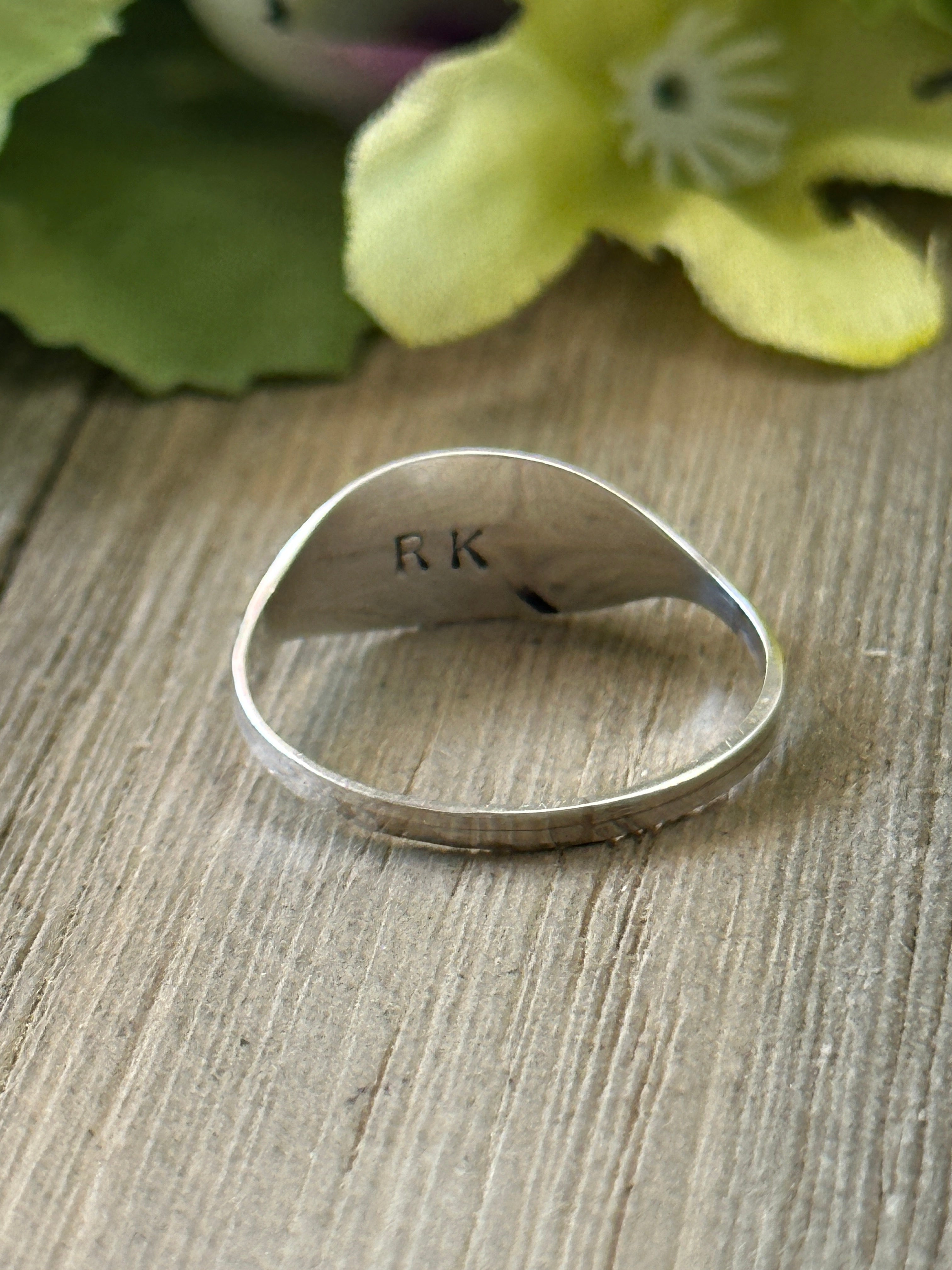 Navajo Made Multi Stone & Sterling Silver Inlay Ring. It measures 1/4 of an inch long. Signed by artist and stamped sterling silver.