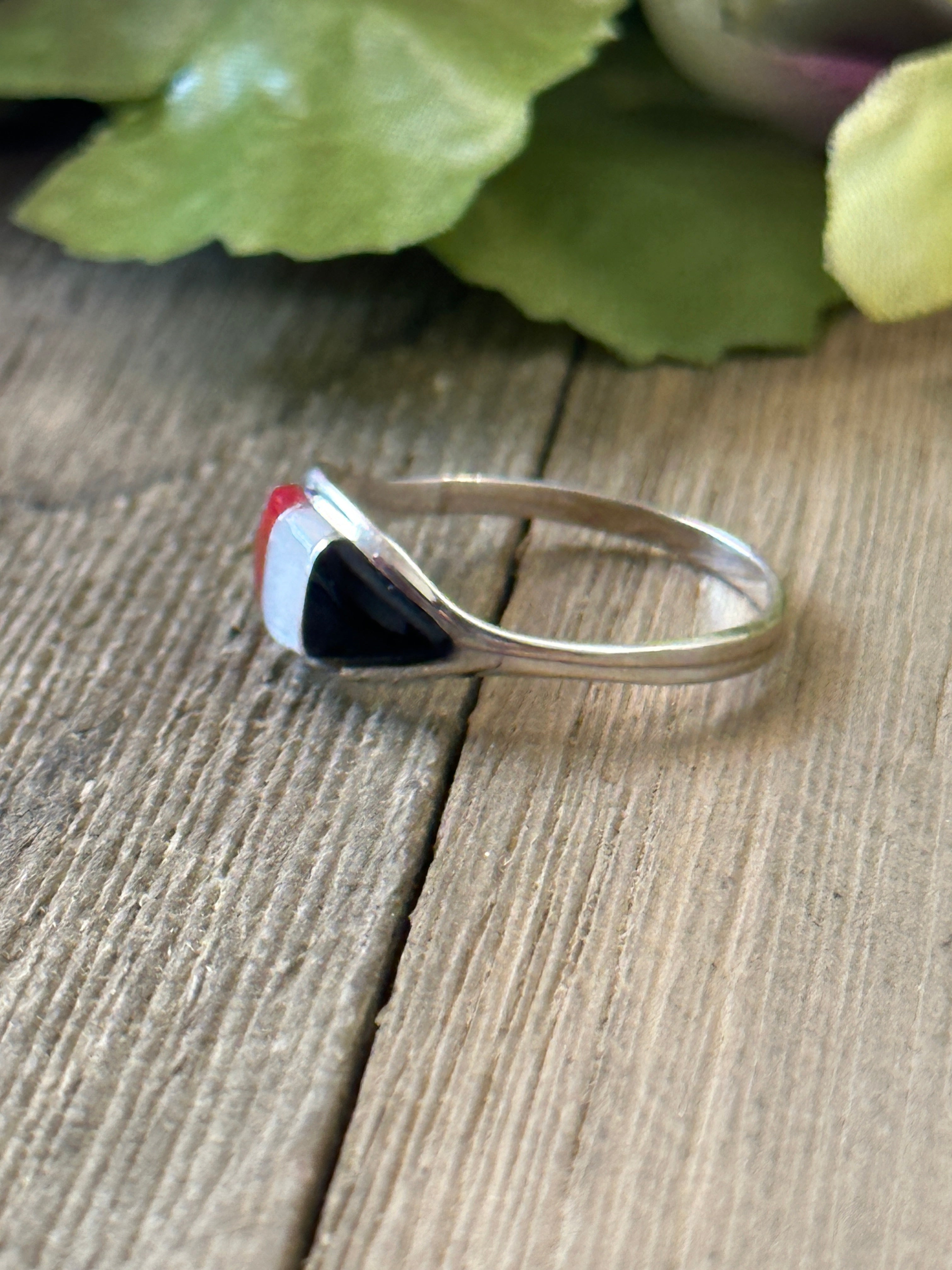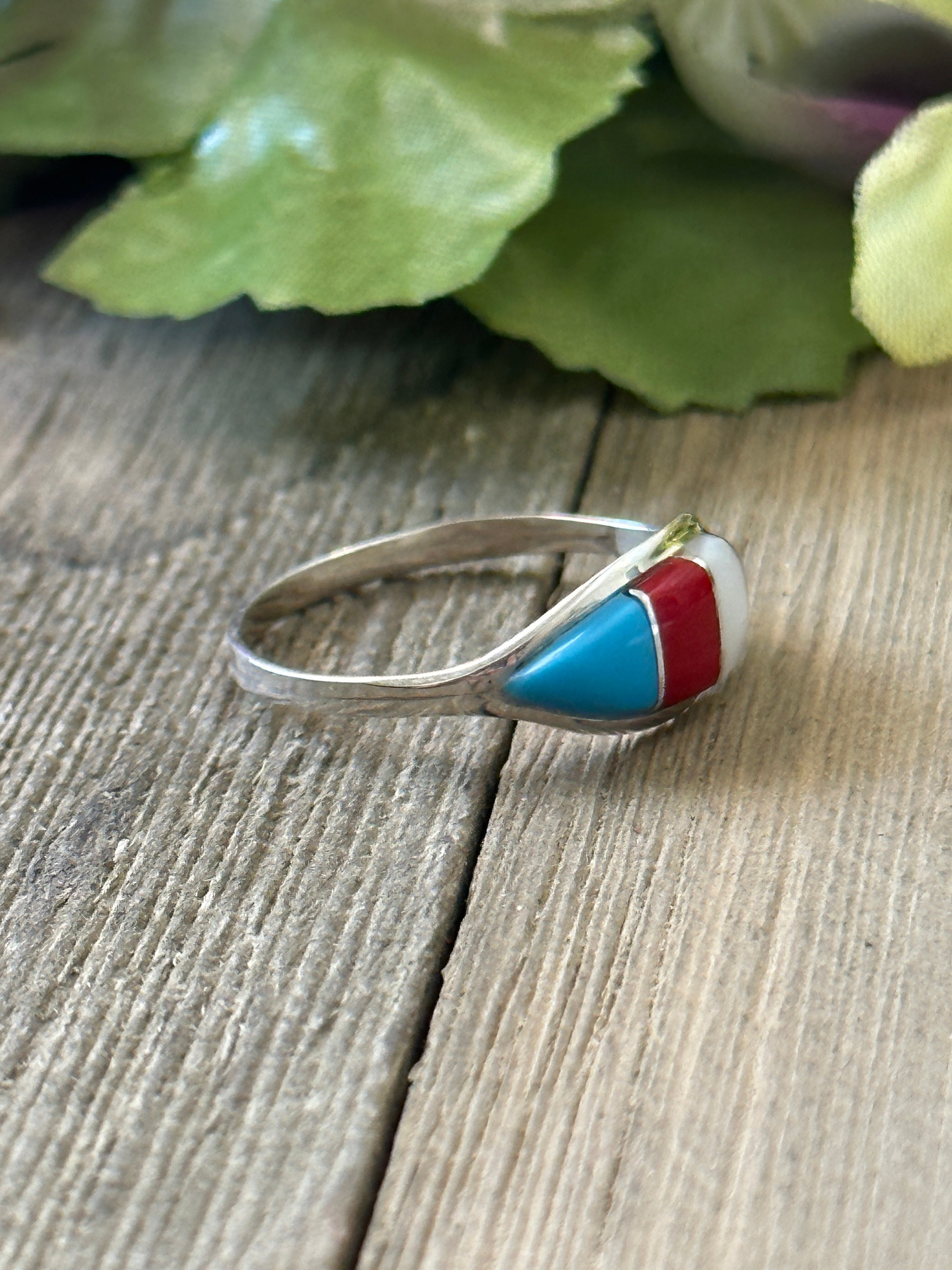 Navajo Made Multi Stone & Sterling Silver Inlay Ring
