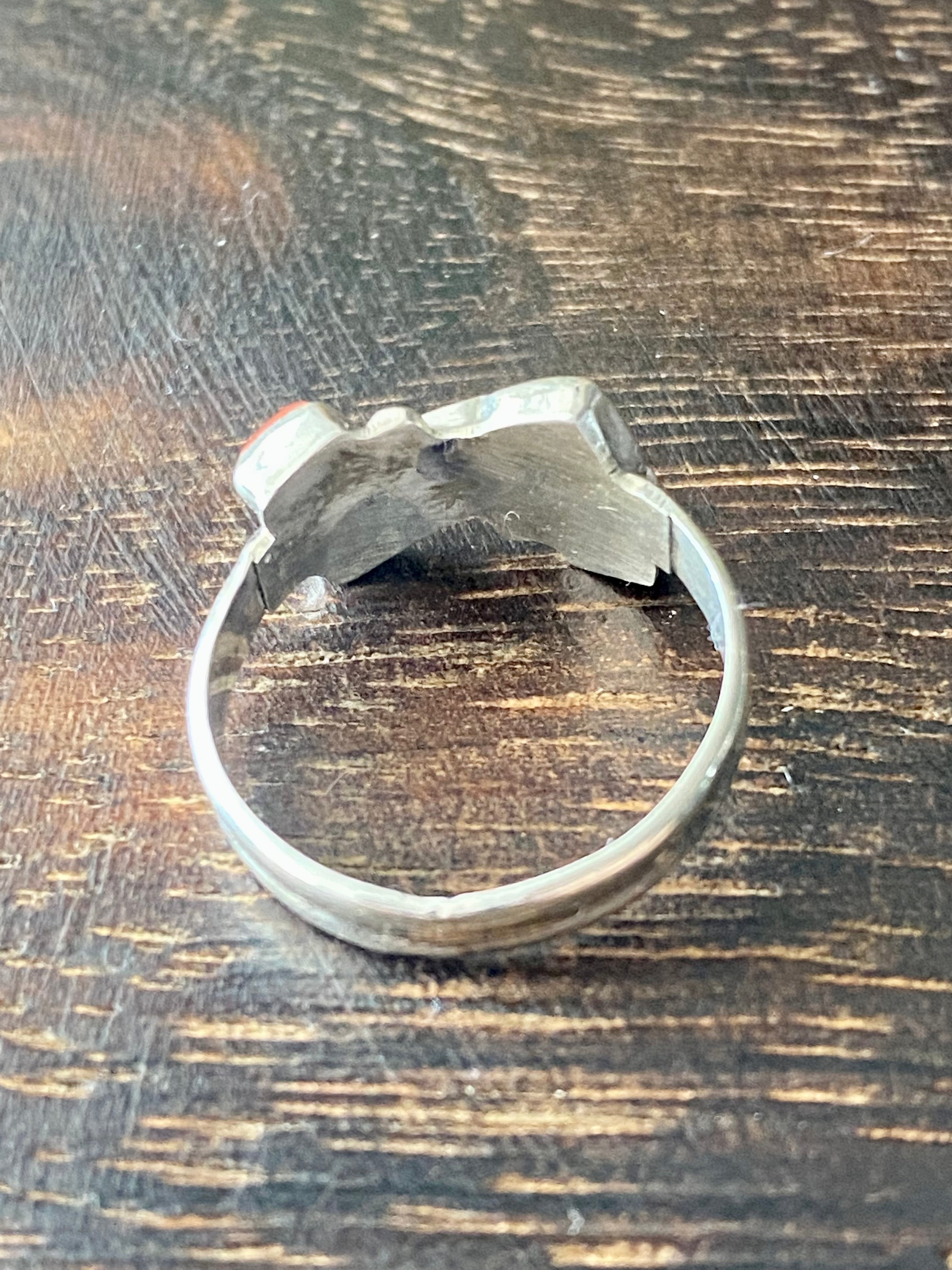 Navajo Made Multi Stone & Sterling Silver Inlay Ring Size 5. It measures just over 1/4 of an inch long and 5/8 of an inch wide.