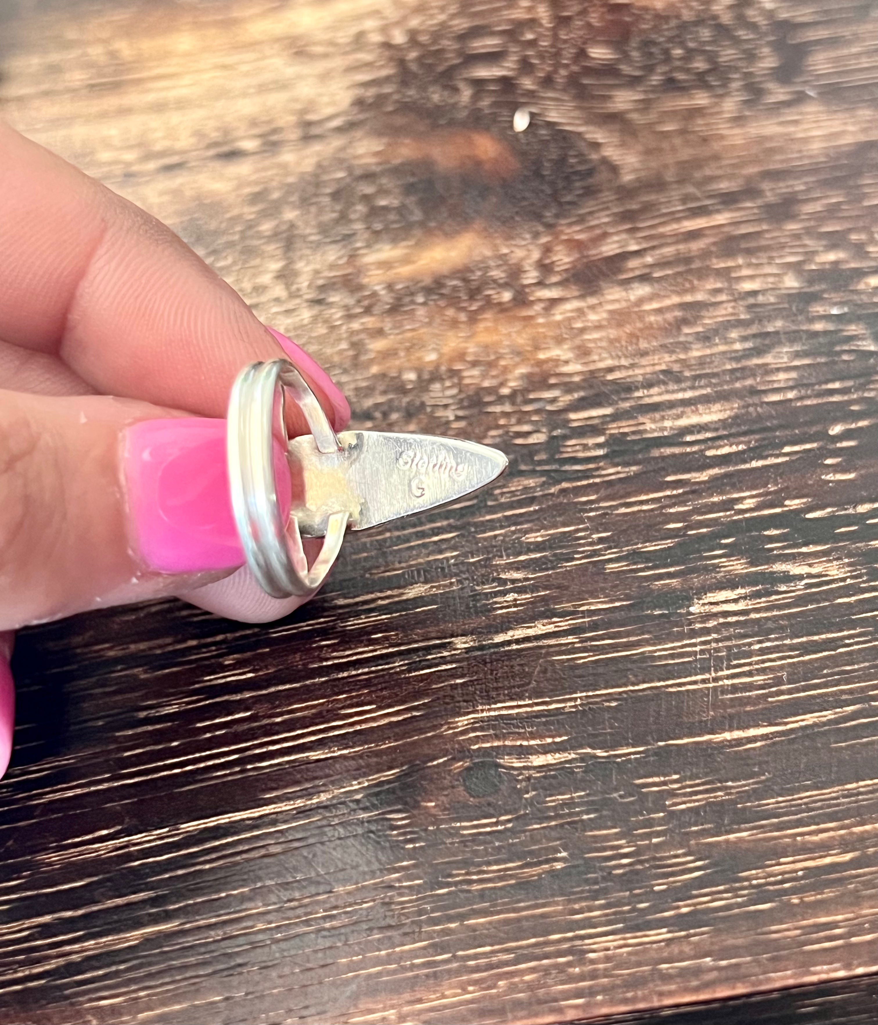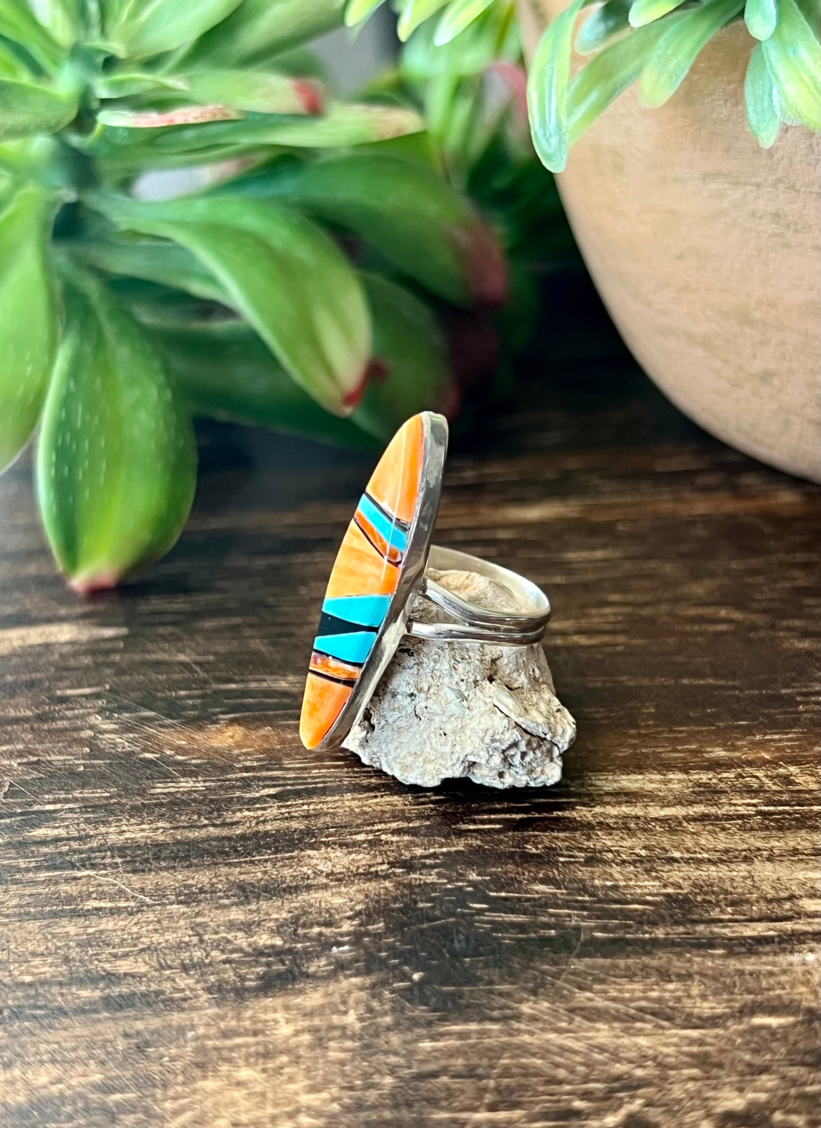 Navajo Made Multi Stone & Sterling Silver Inlay Ring Size 5.5