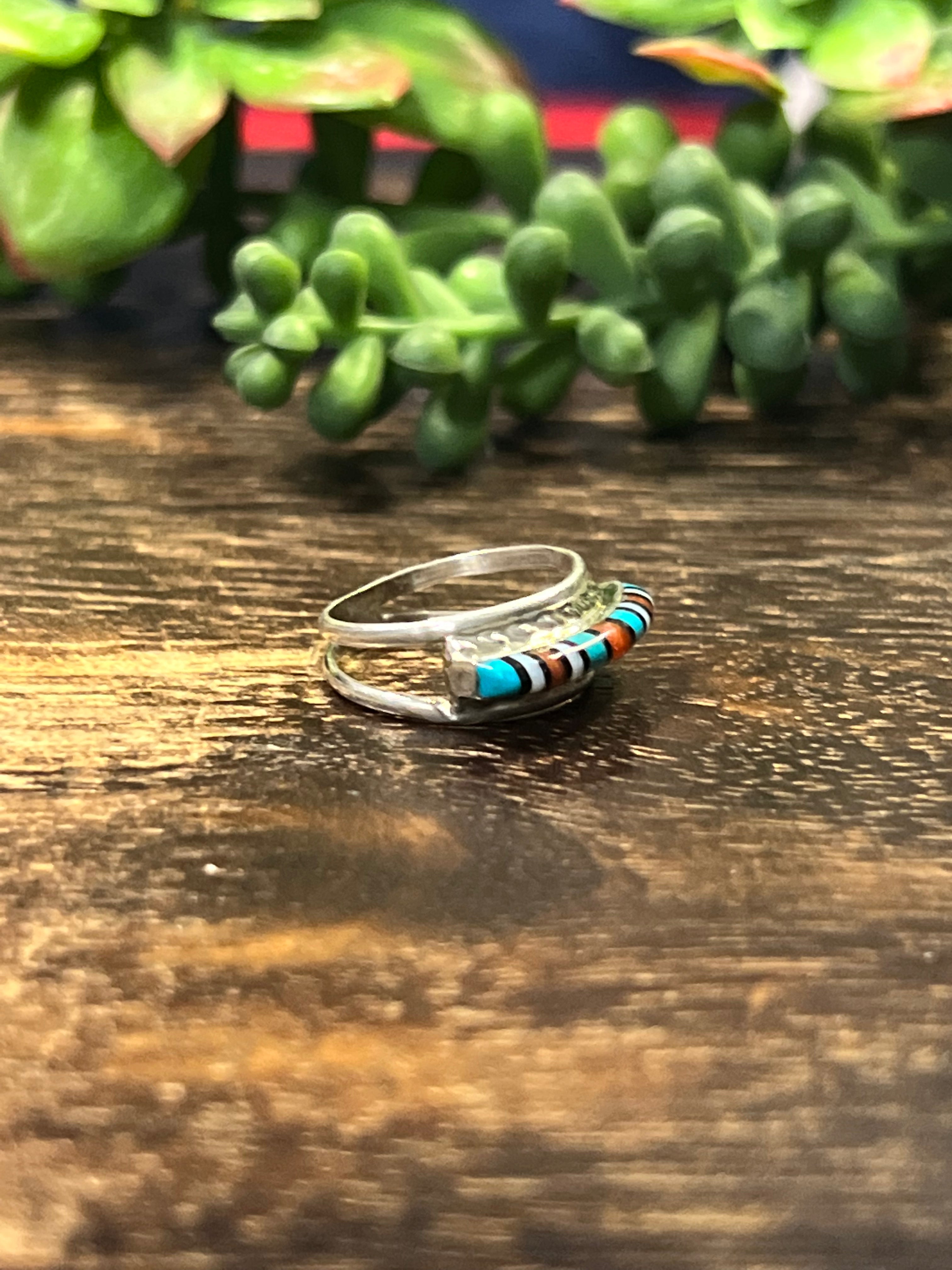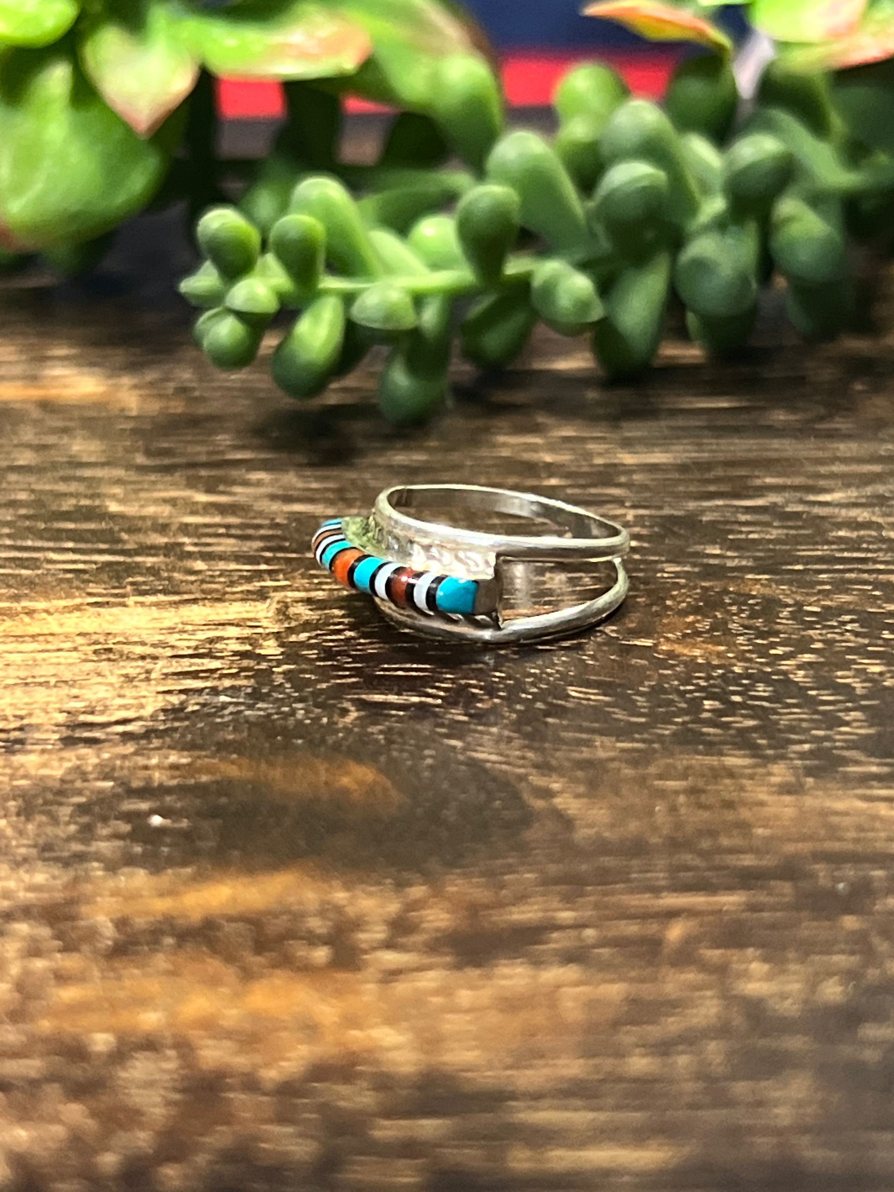 Navajo Made Multi Stone & Sterling Silver Inlay Ring Size 5.75