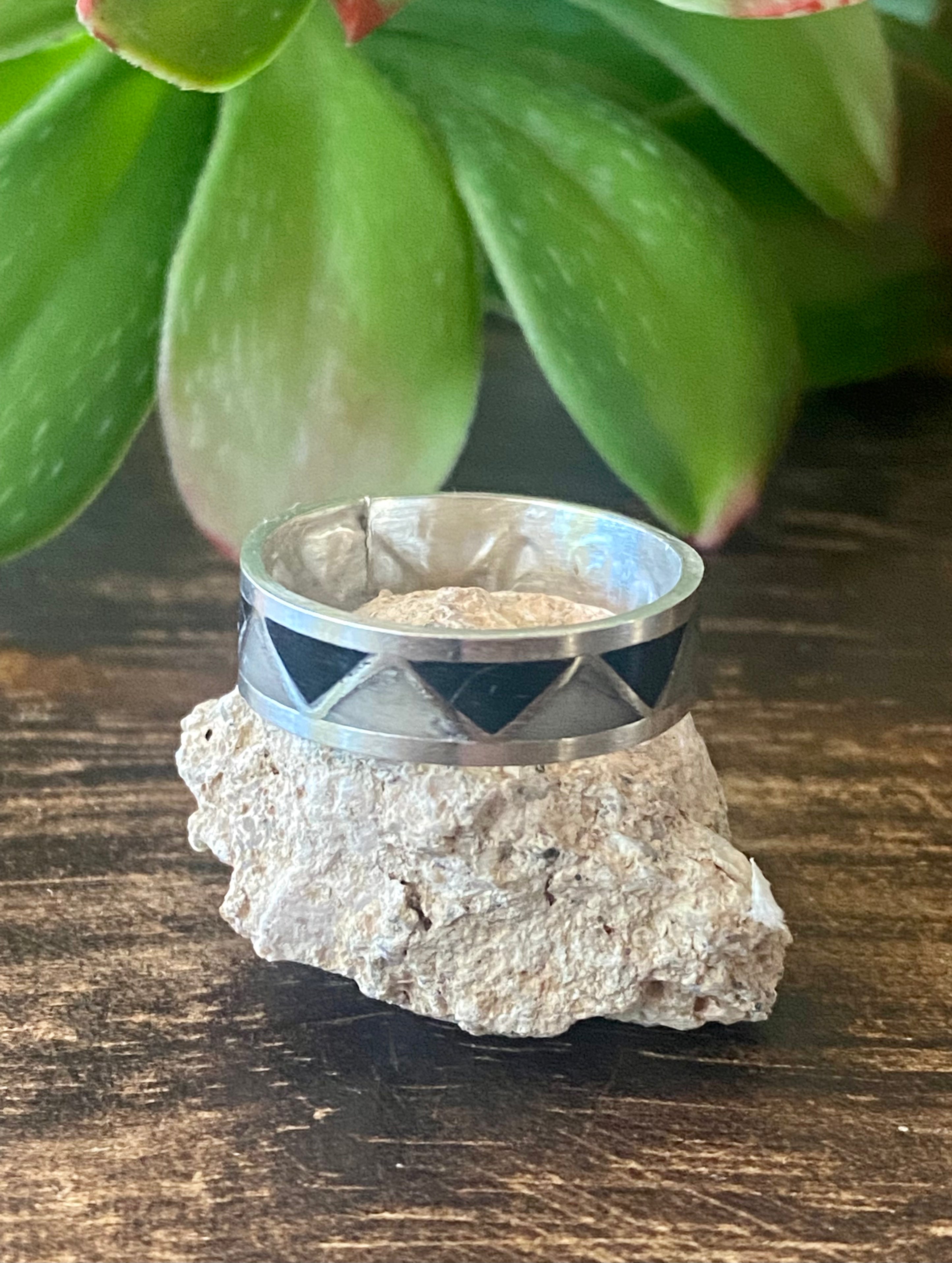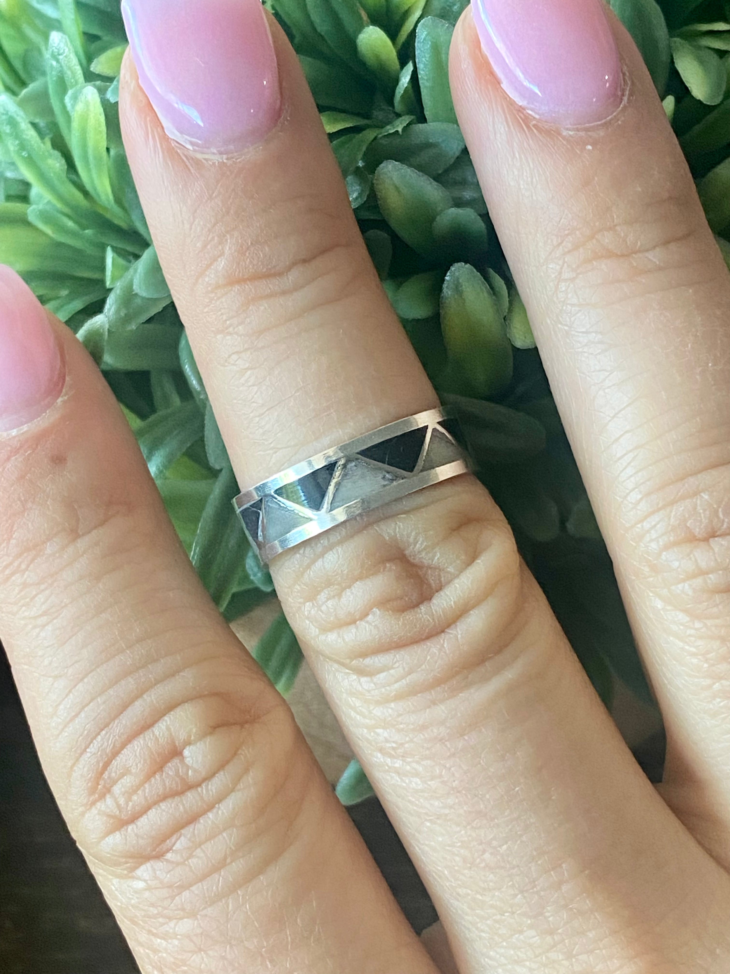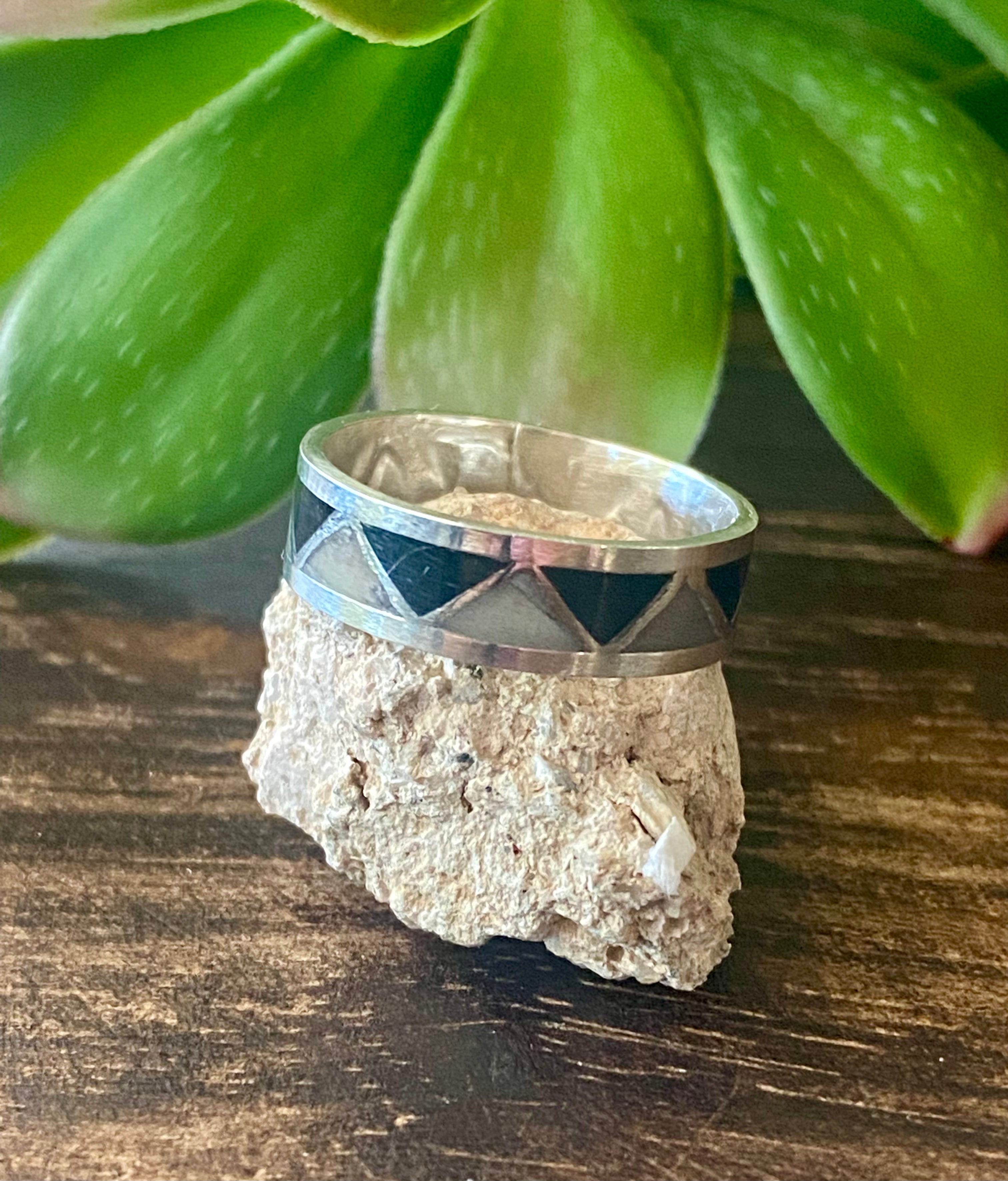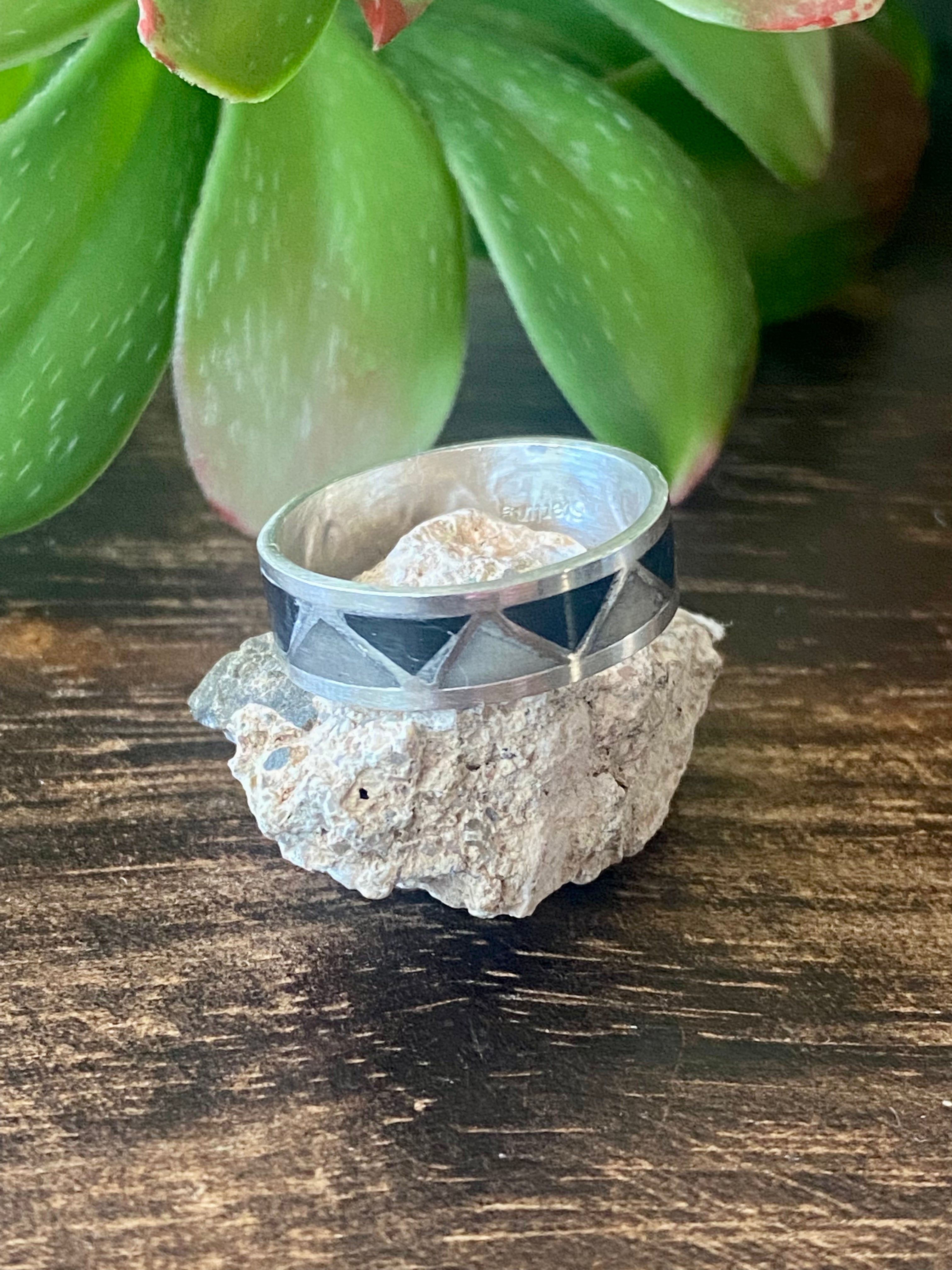 Navajo Made Multi Stone & Sterling Silver Inlay Ring Size 6.5