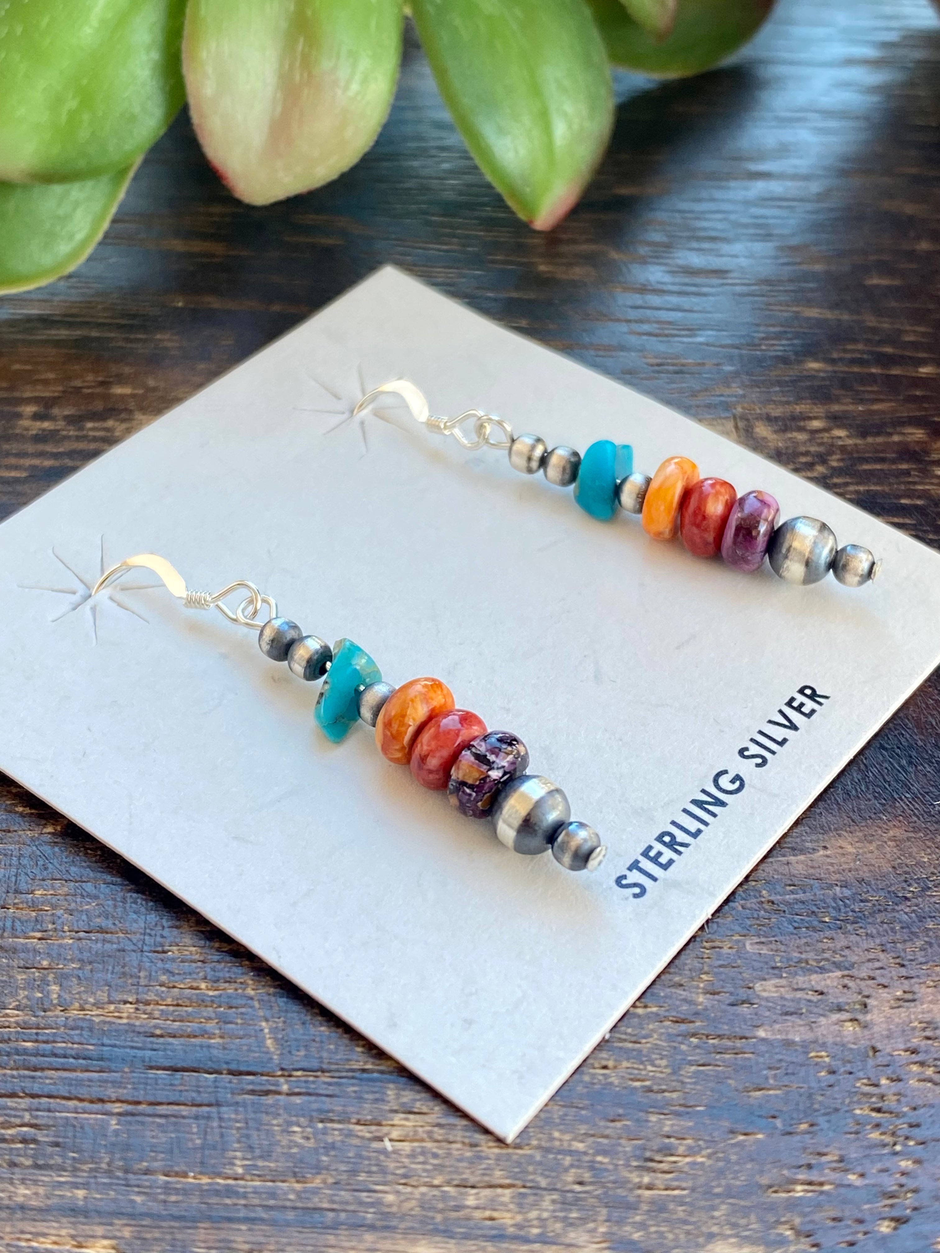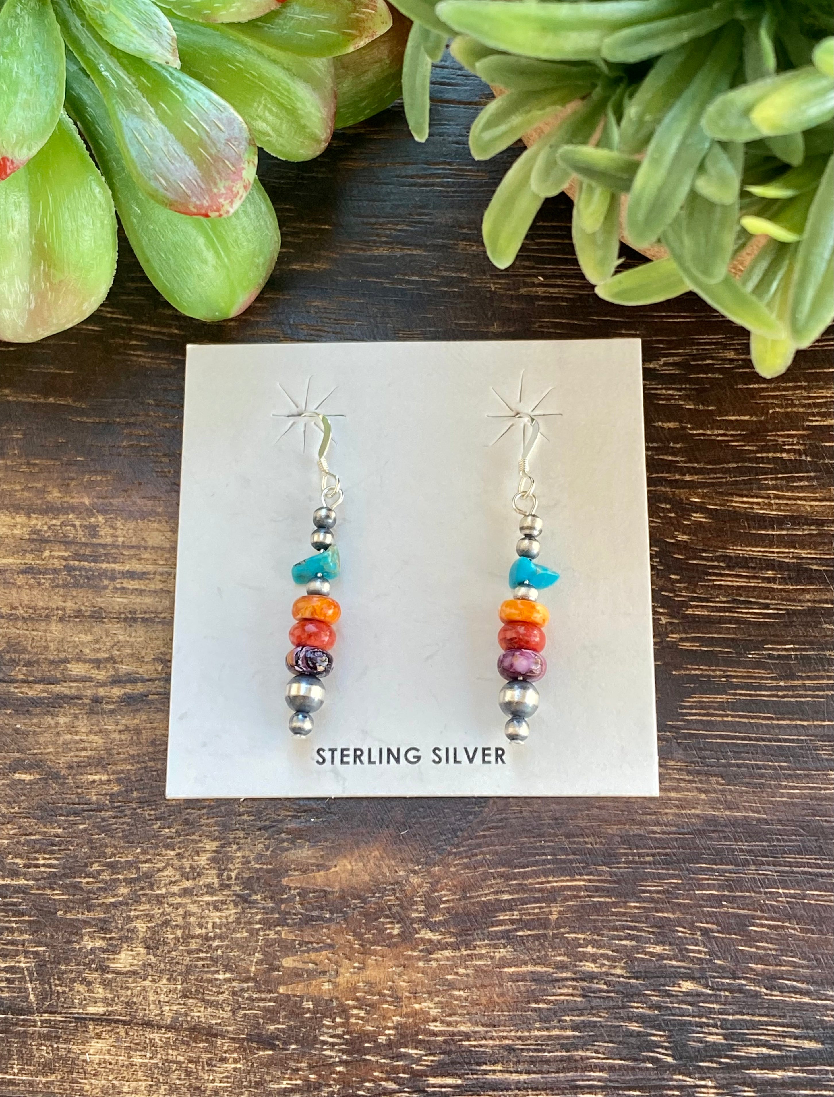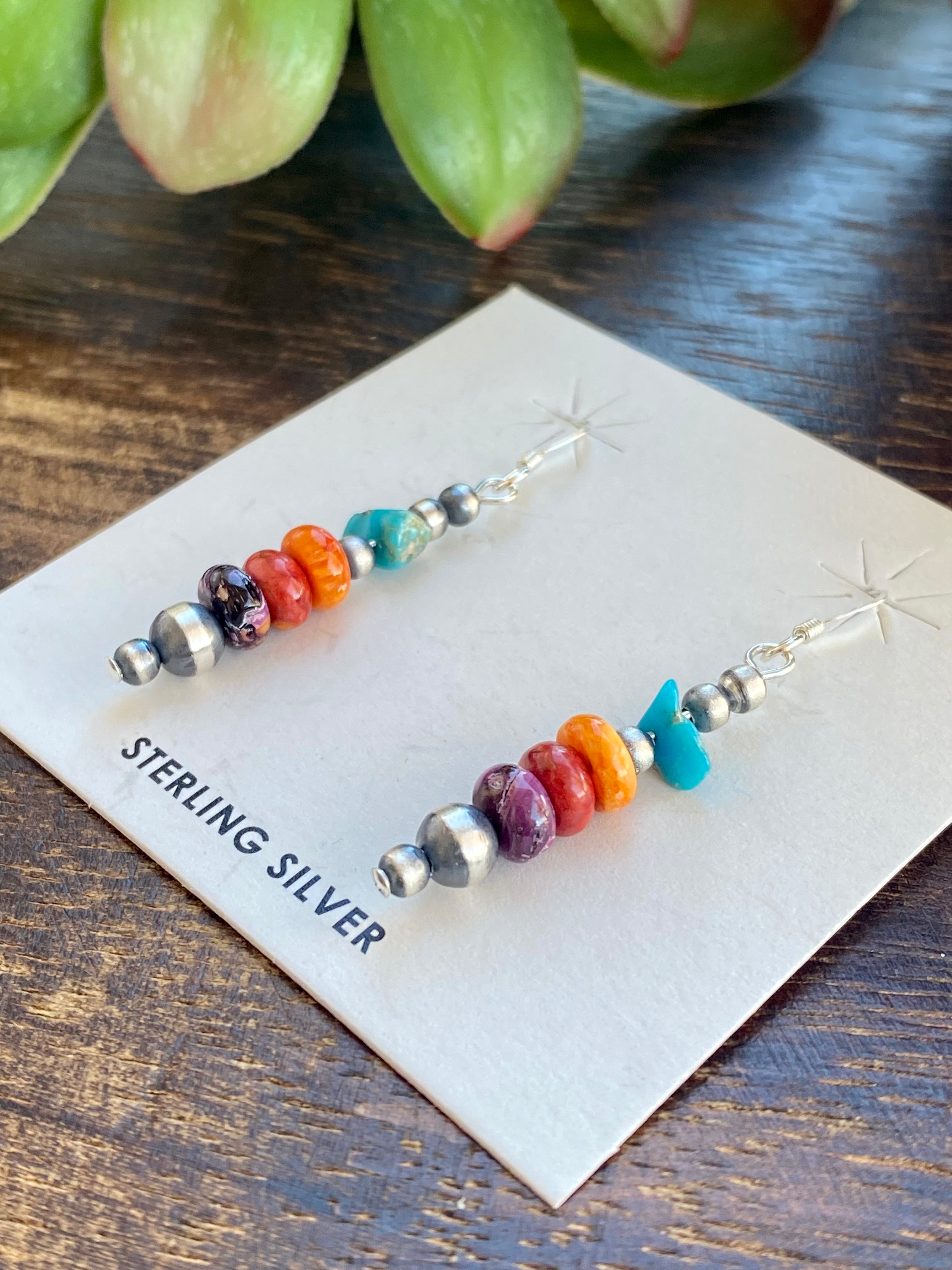 Navajo Made Multi Stone & Sterling Silver Pearl Dangle Earrings