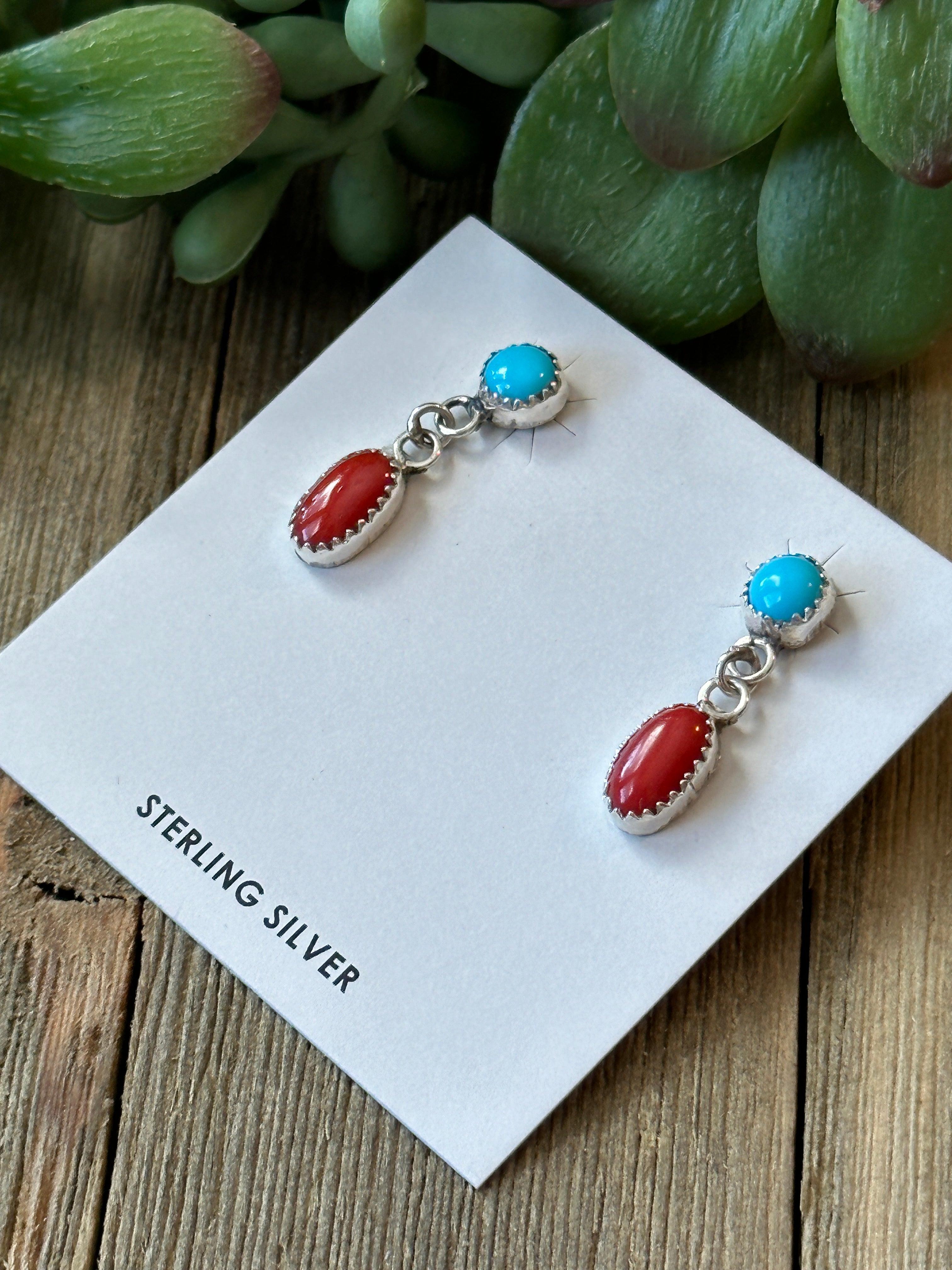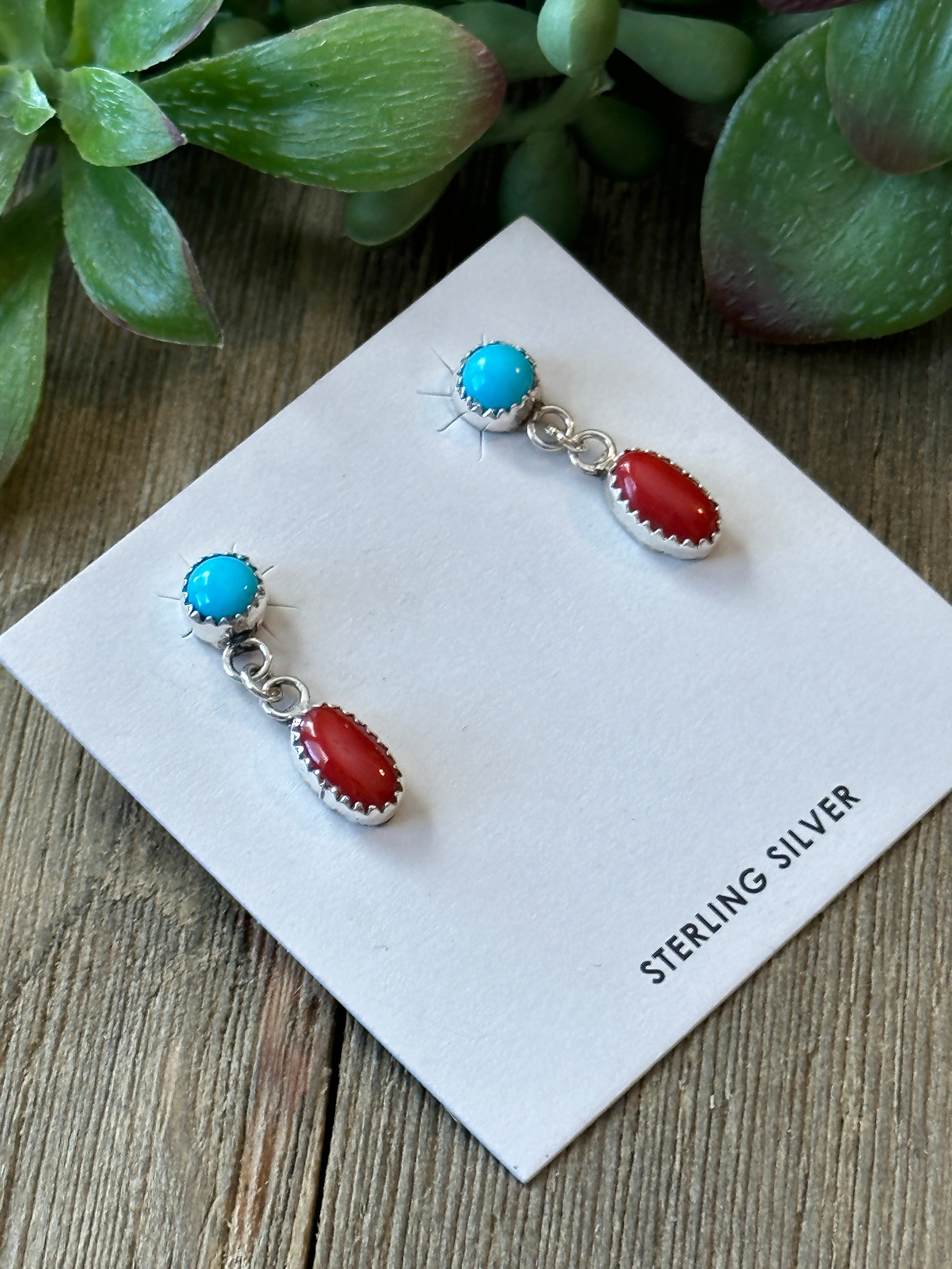 Navajo Made Multi Stone & Sterling Silver Post Dangle Earrings