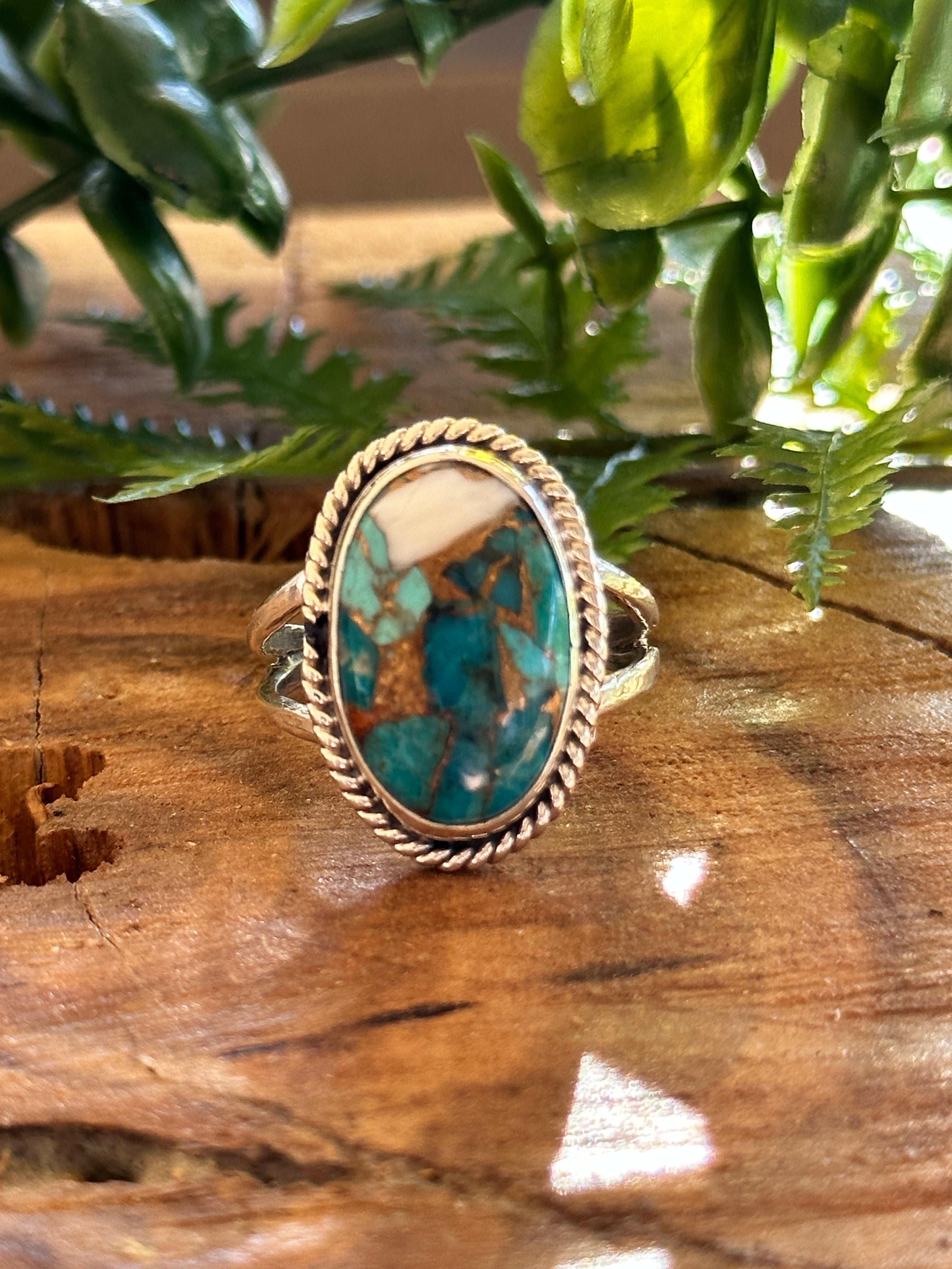 Beautiful rings Navajo Made Multi Stone & Sterling Silver Ring. It measures 7/8 of an inch long and 5/8 of an inch wide. Signed by the artist and stamped sterling silver.