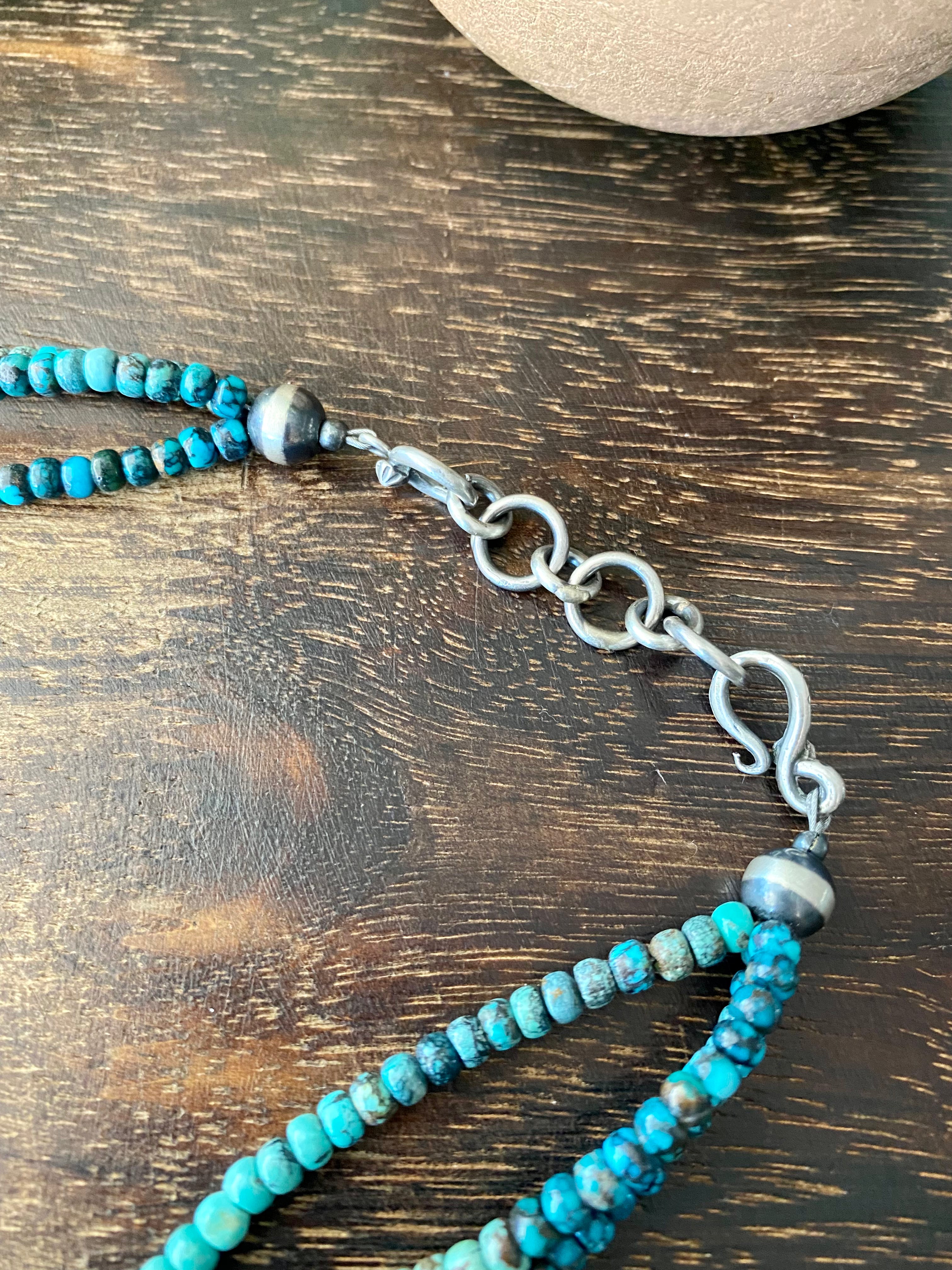 Navajo Made Multi Turquoise & Sterling Silver Multi Strand Pearl Necklacm