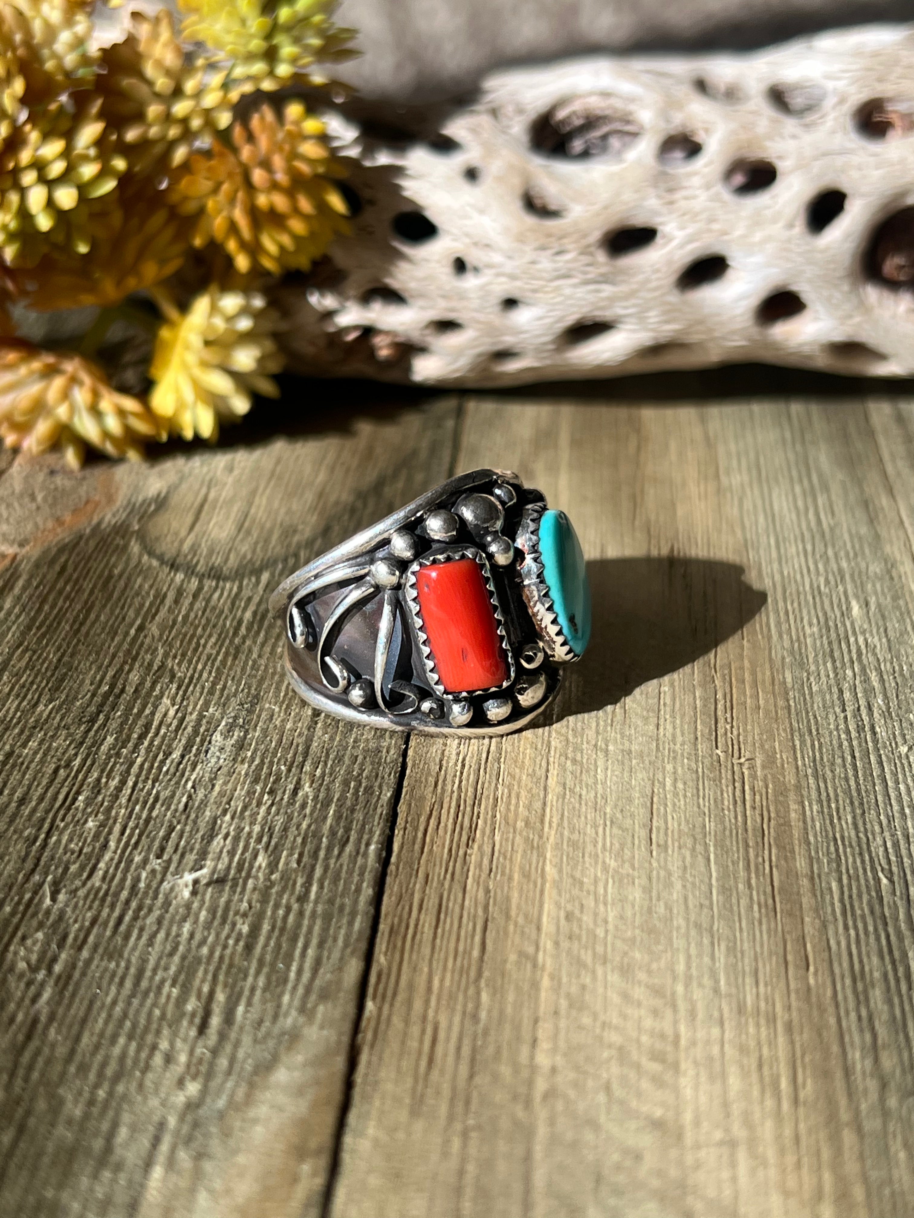 Navajo Made Mutli Stone & Sterling Silver Ring Size 13.25