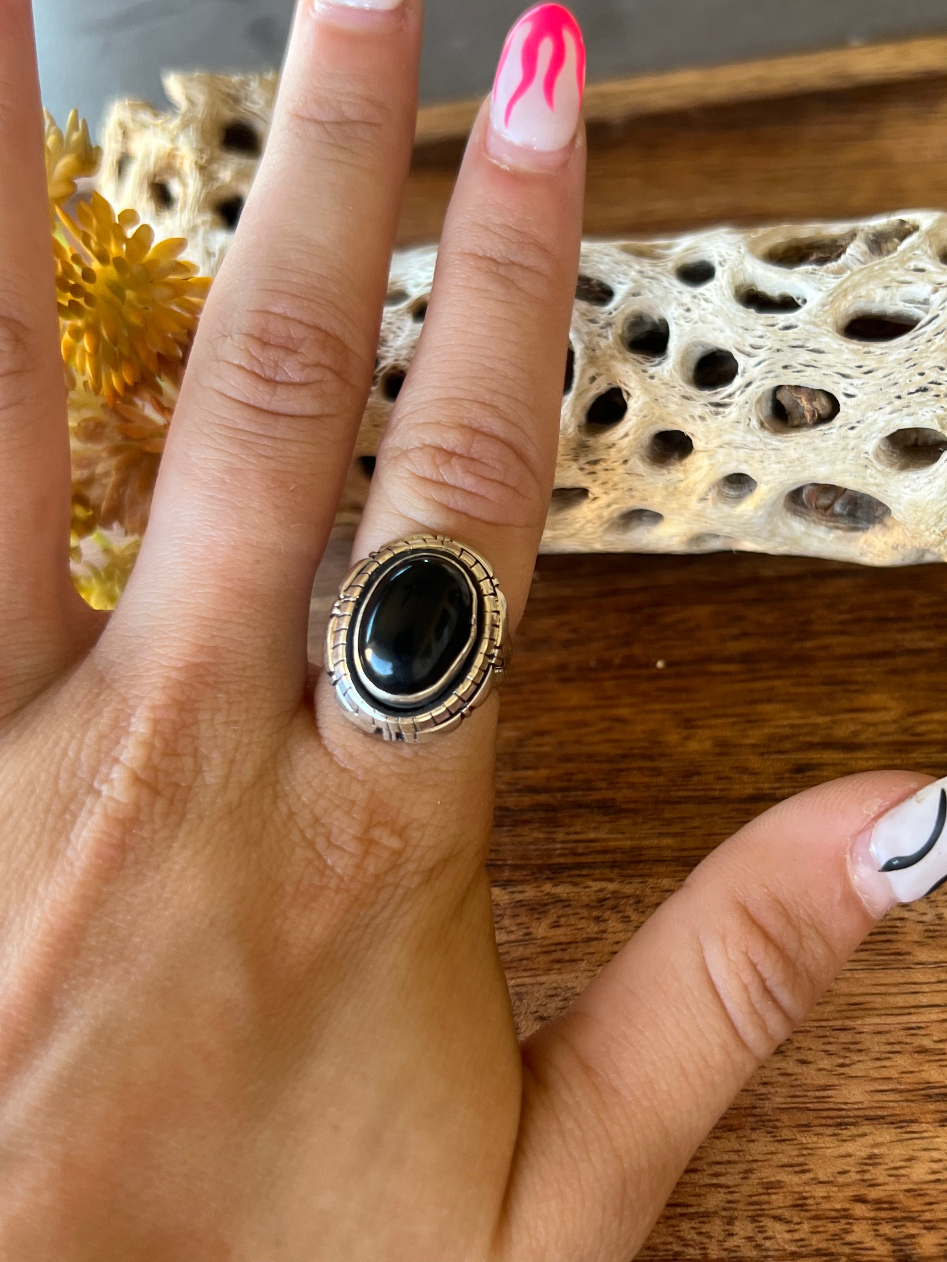 Navajo Made Onyx Ring Size 6