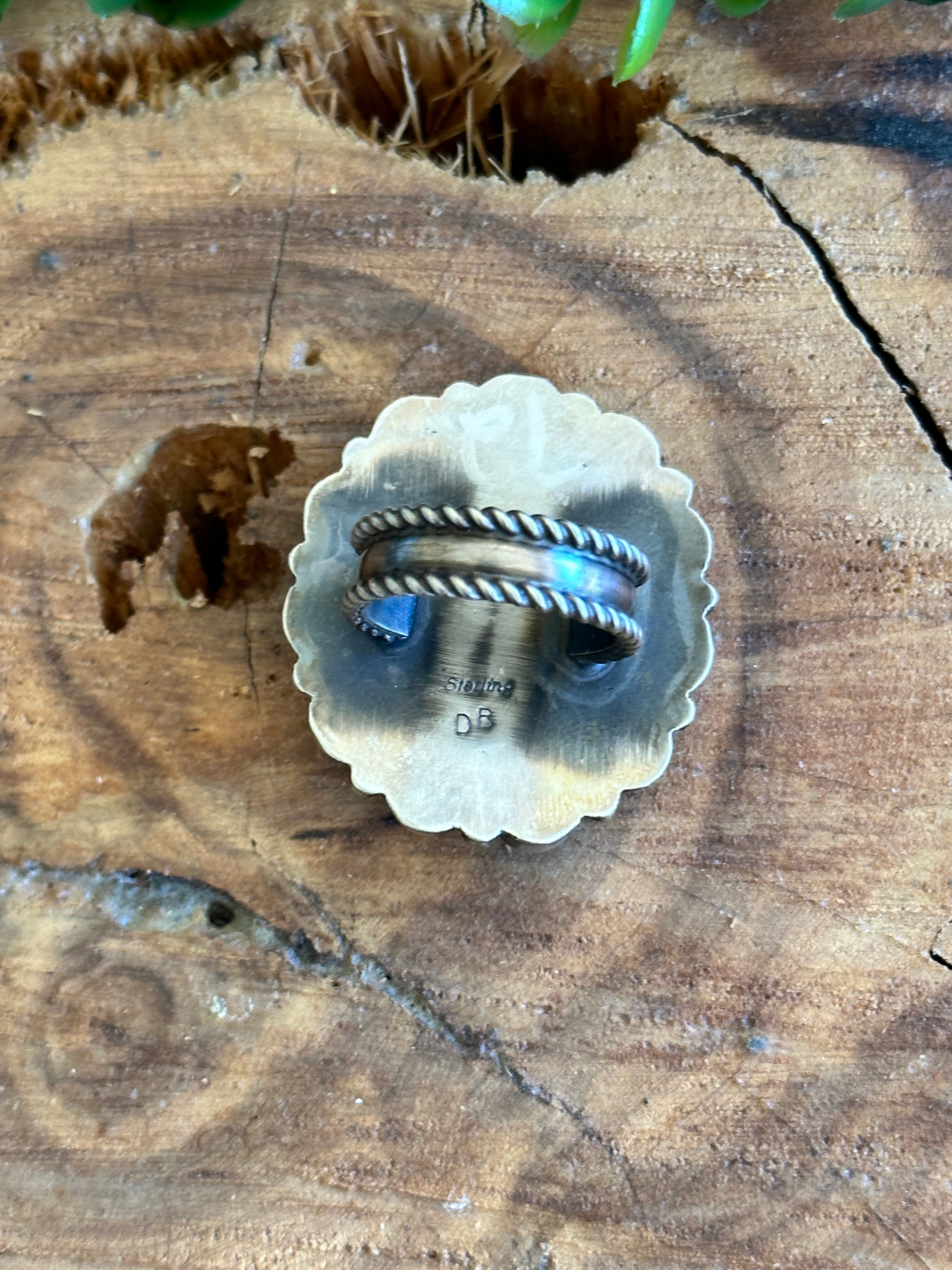Navajo Made Onyx & Sterling Silver Adjustable Cluster Ring