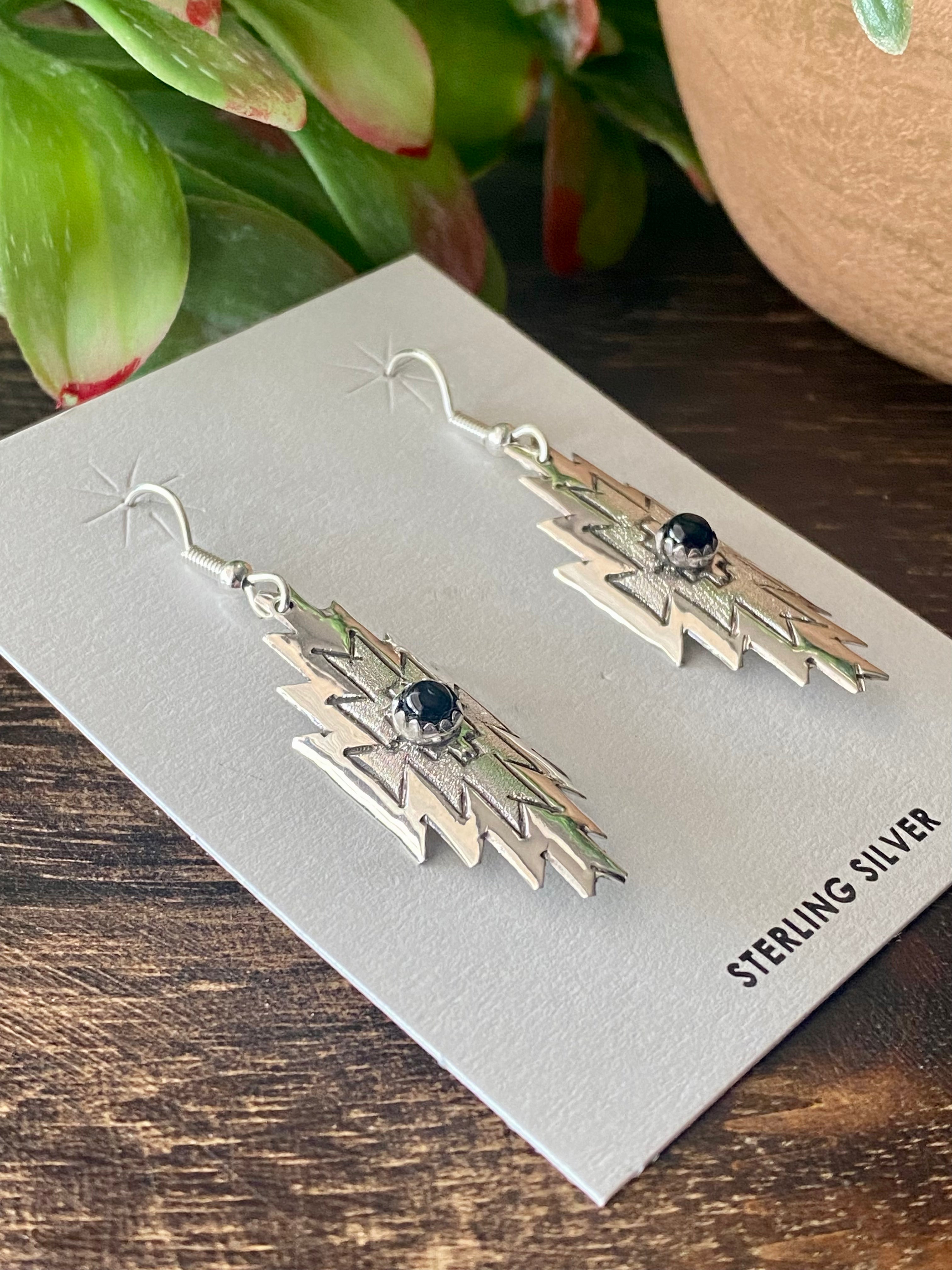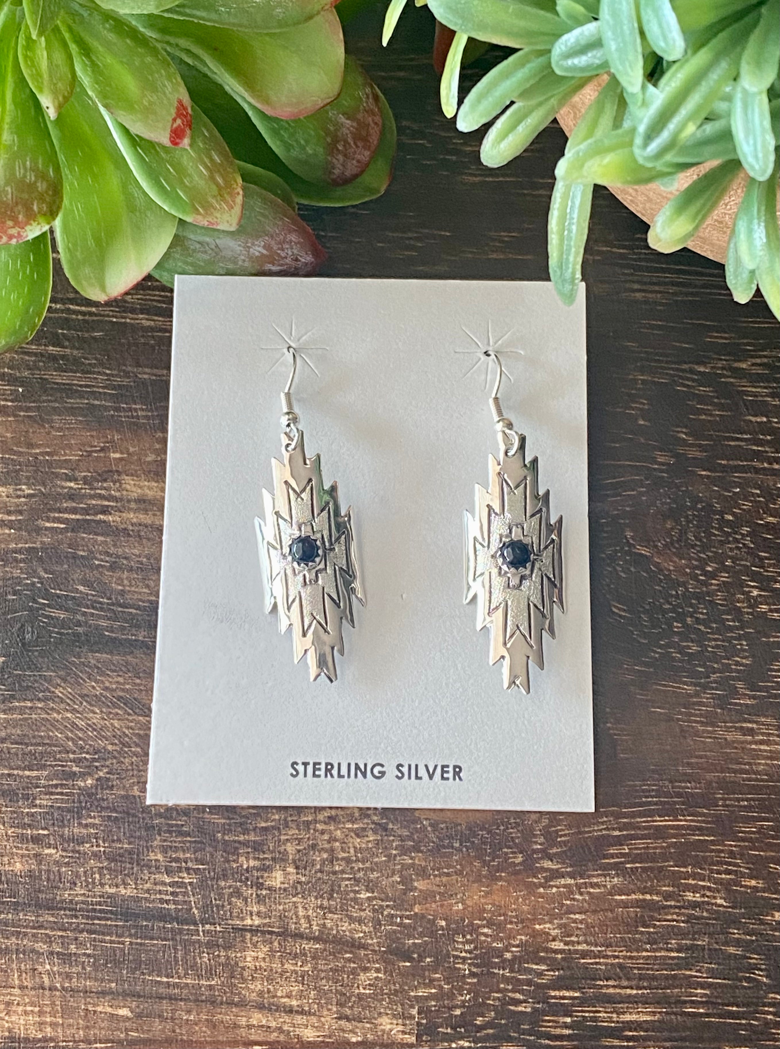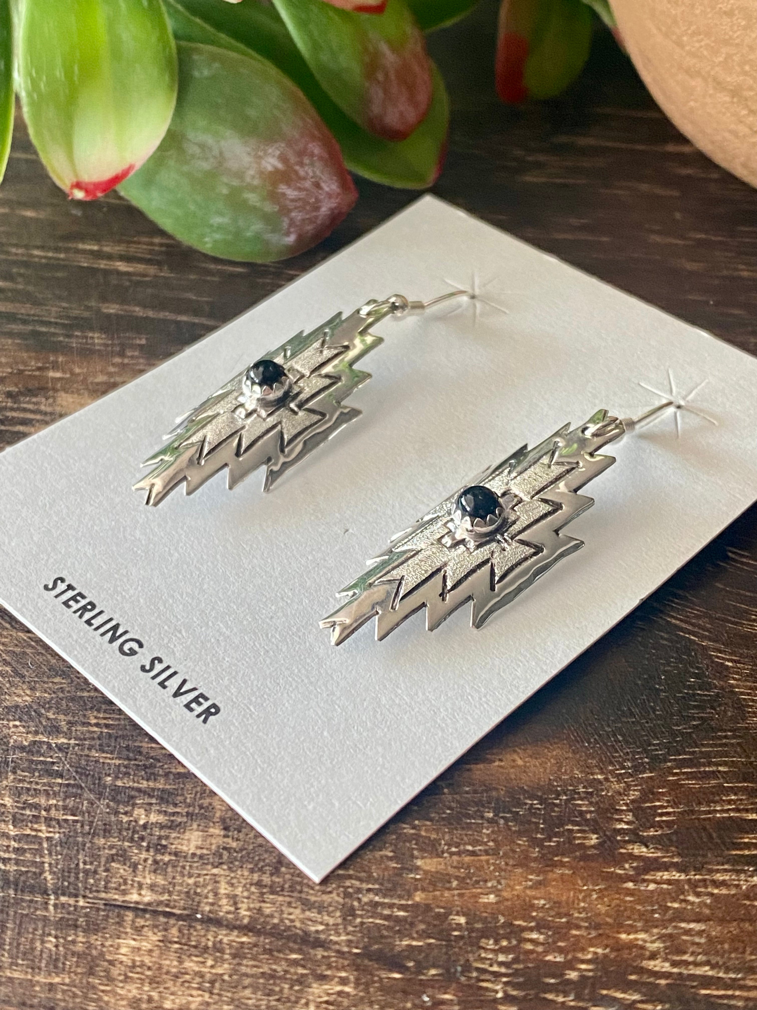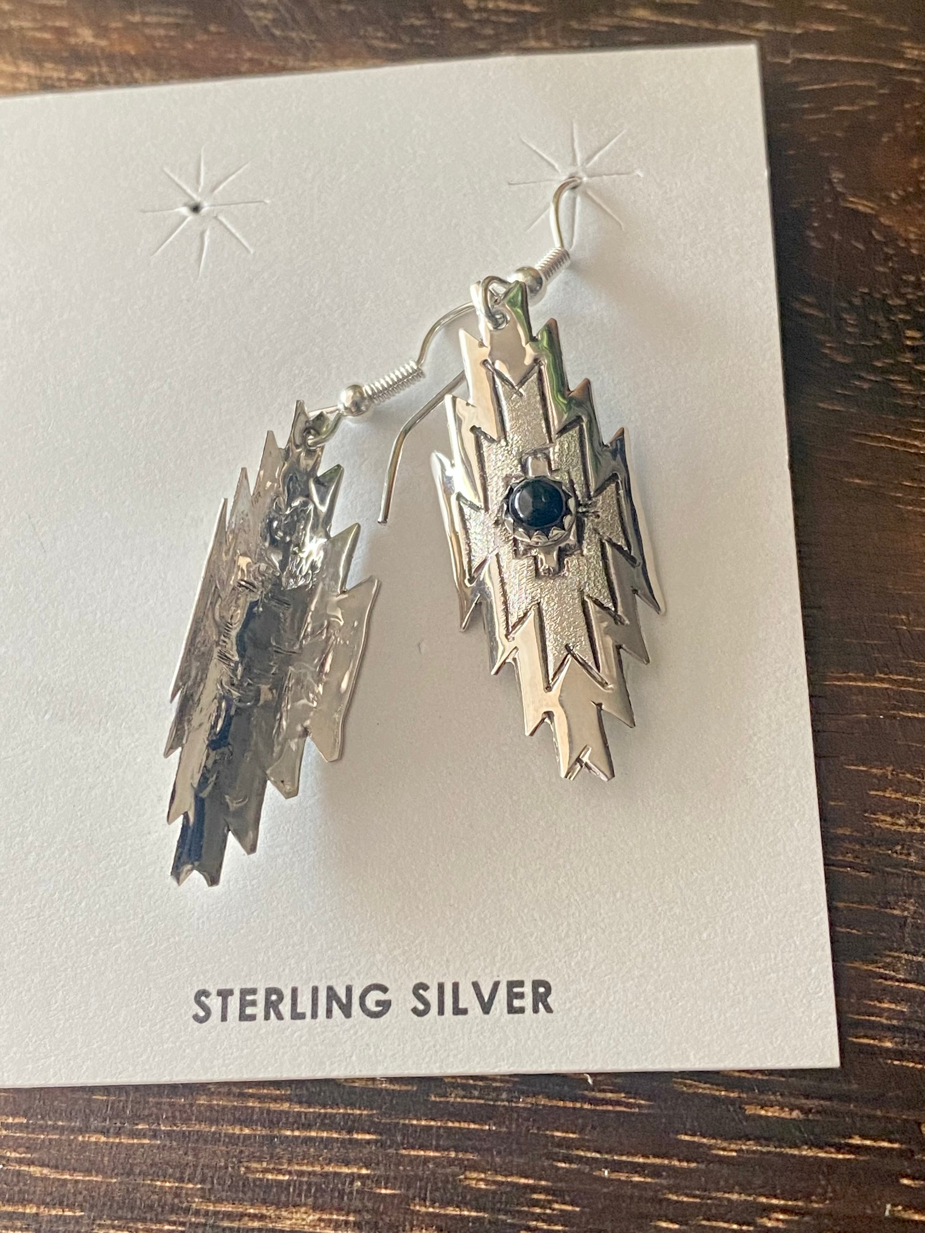 Navajo Made Onyx & Sterling Silver Dangle Earrings