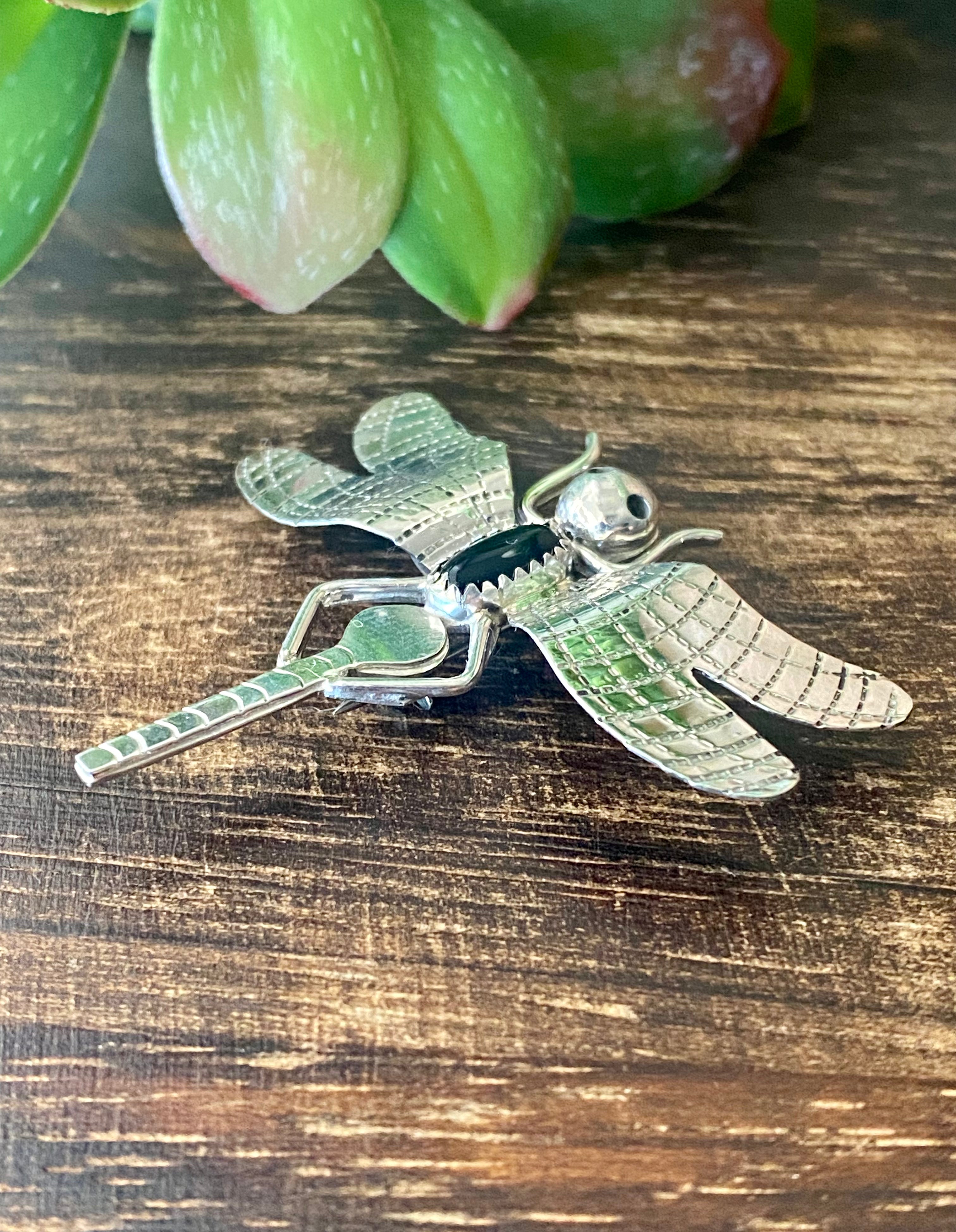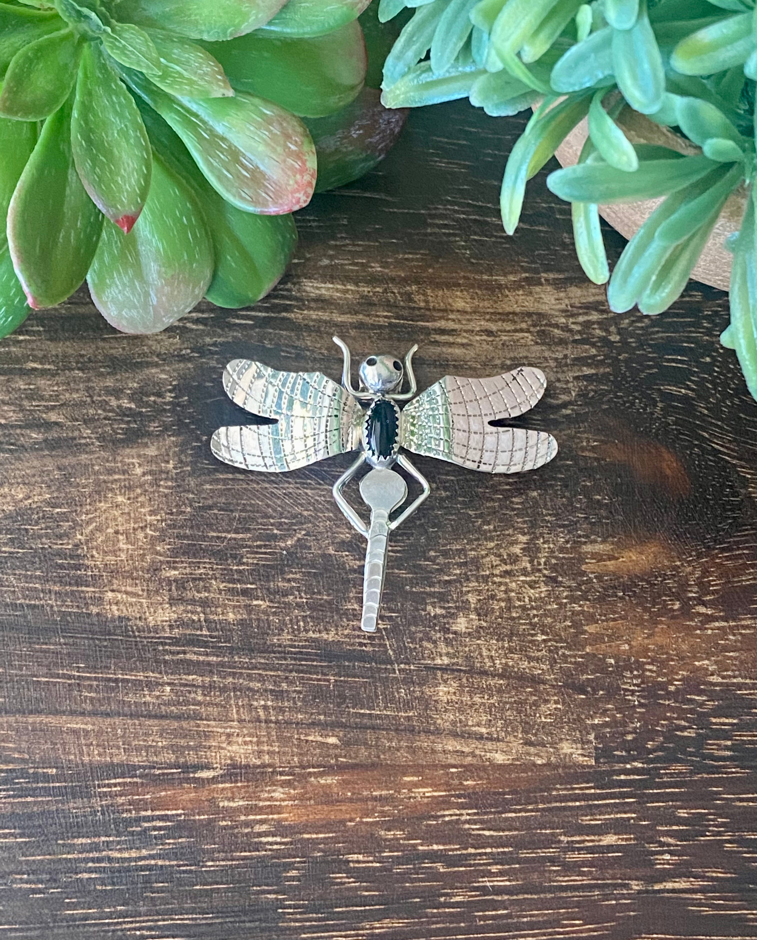 Navajo Made Onyx & Sterling Silver Dragonfly Pin