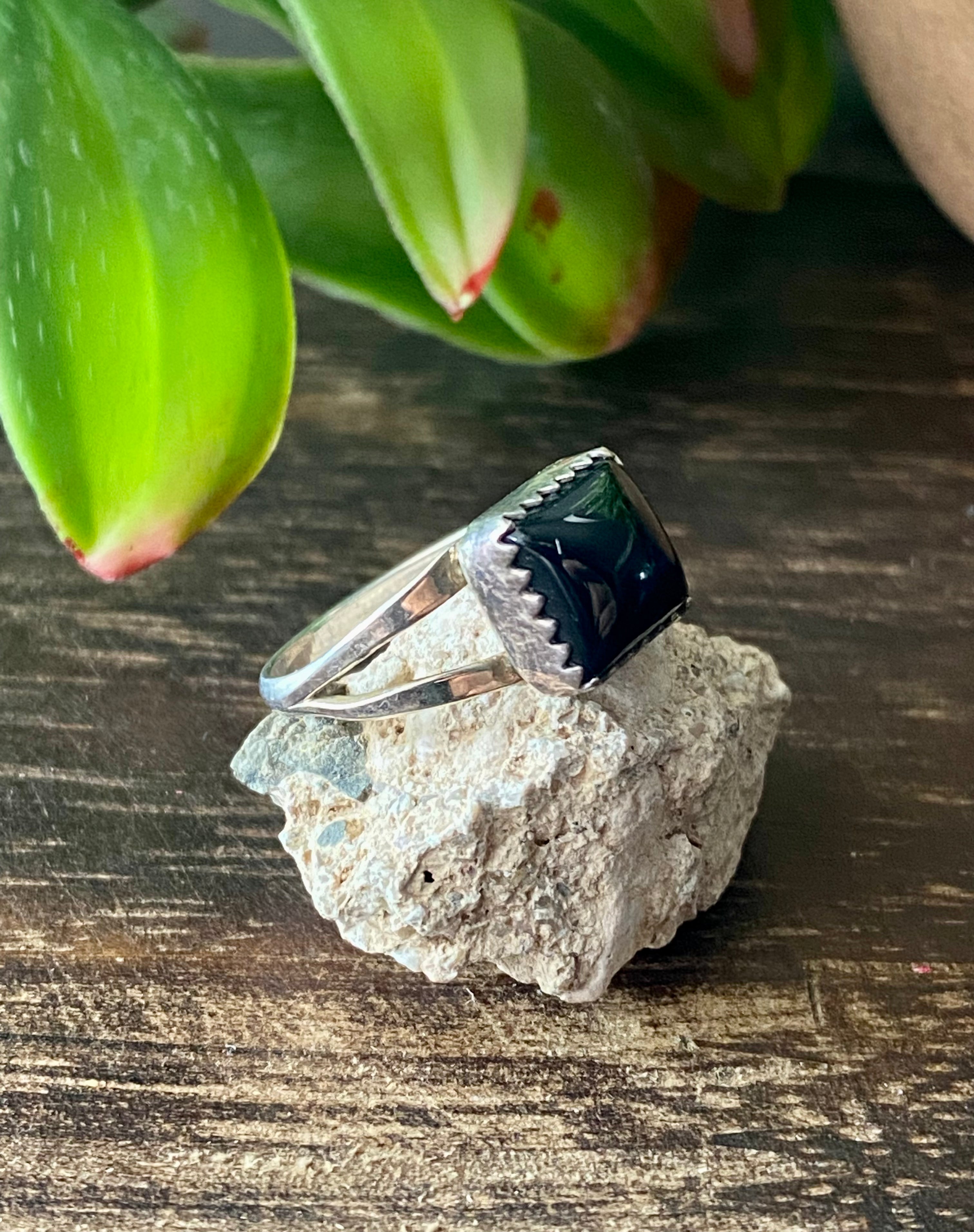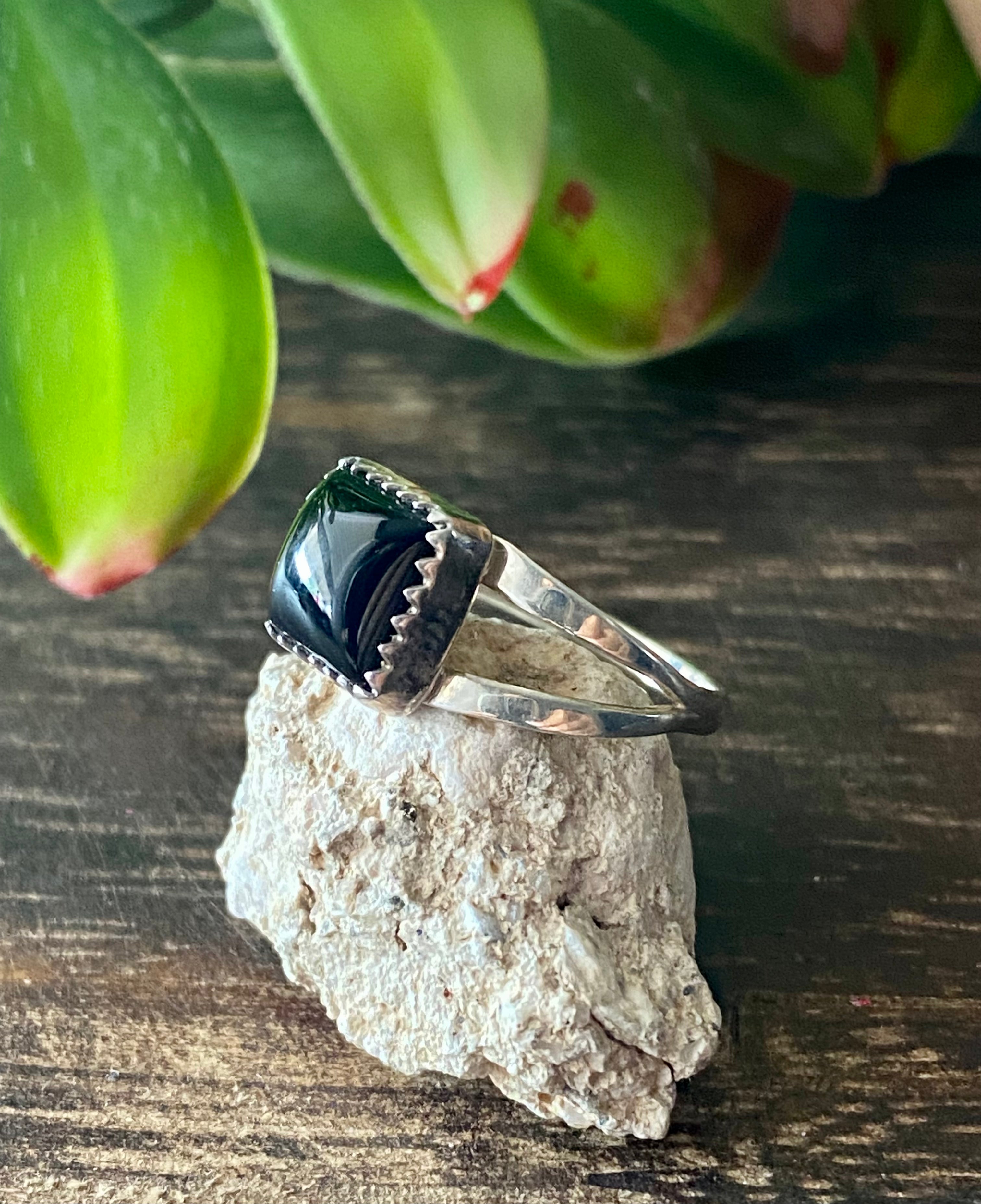 Navajo Made Onyx & Sterling Silver Ring Size 5.75
