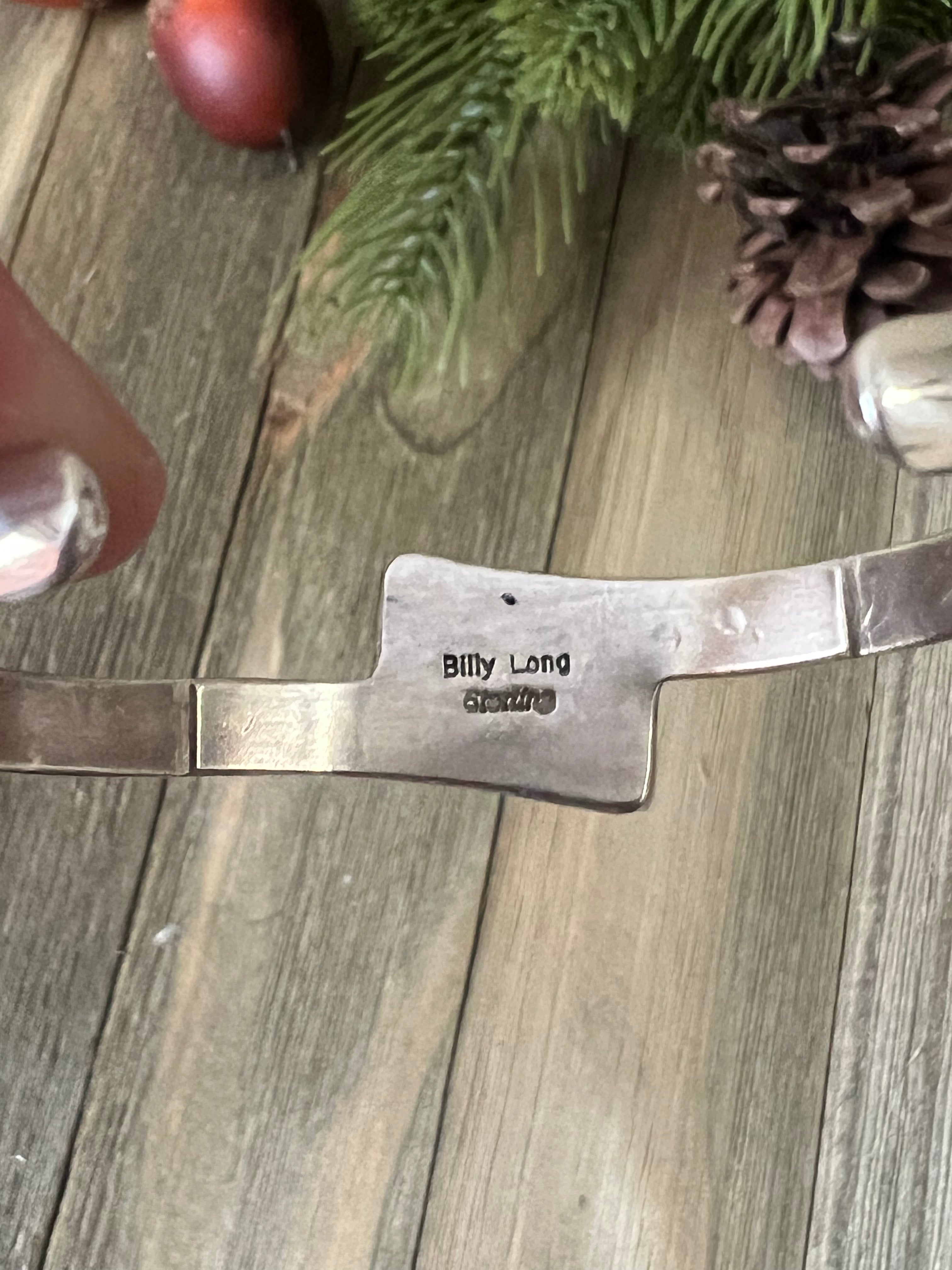 Navajo Made Opal (Man Made) & Sterling Silver Cuff Bracelet. It measures 5/8 of an inch wide with an inside circumference of 5 1/4 inches and a gap of 1 inch. Signed by the artist and stamped sterling silver.
