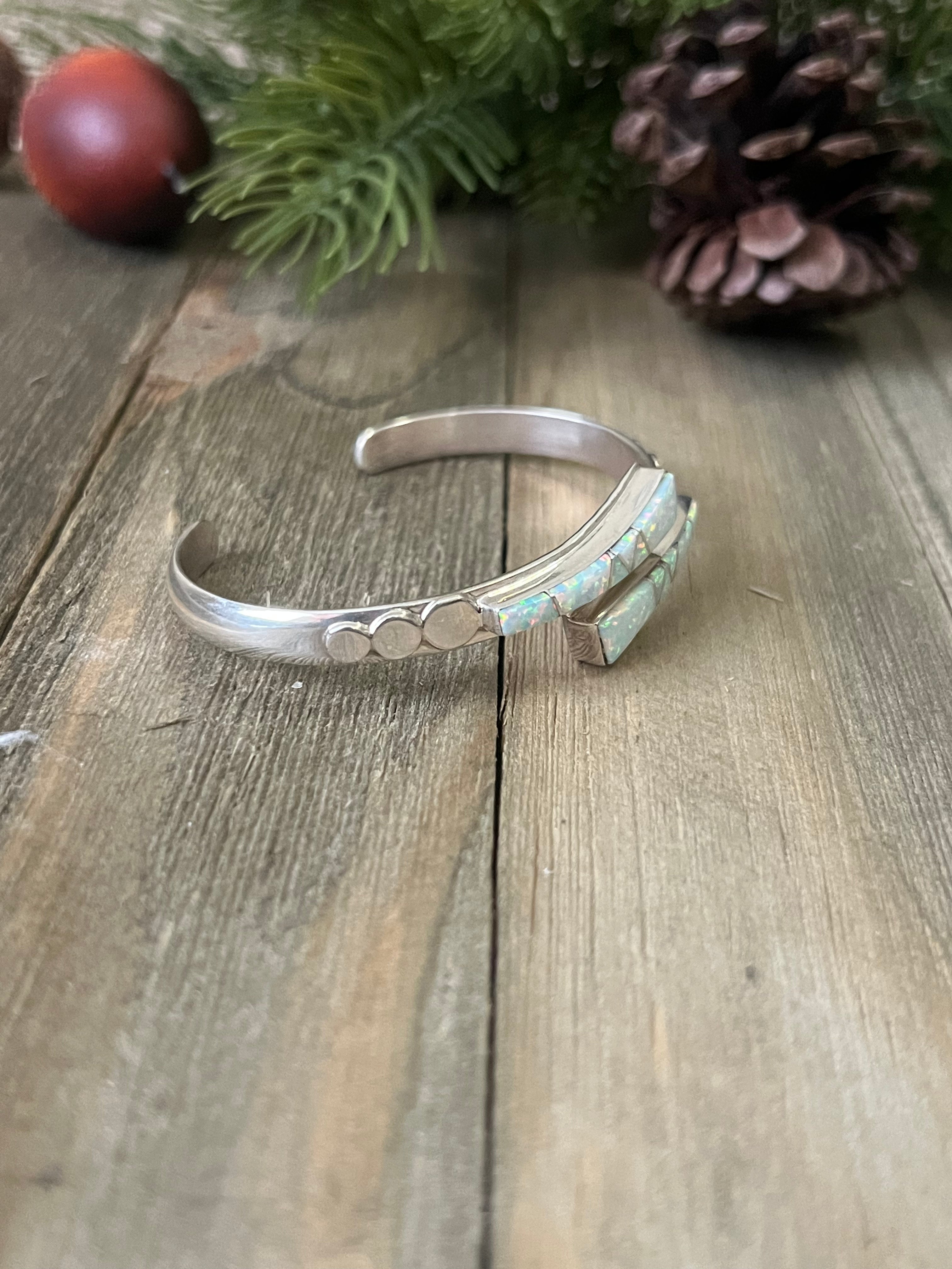 Navajo Made Opal (Man Made) & Sterling Silver Cuff Bracelet