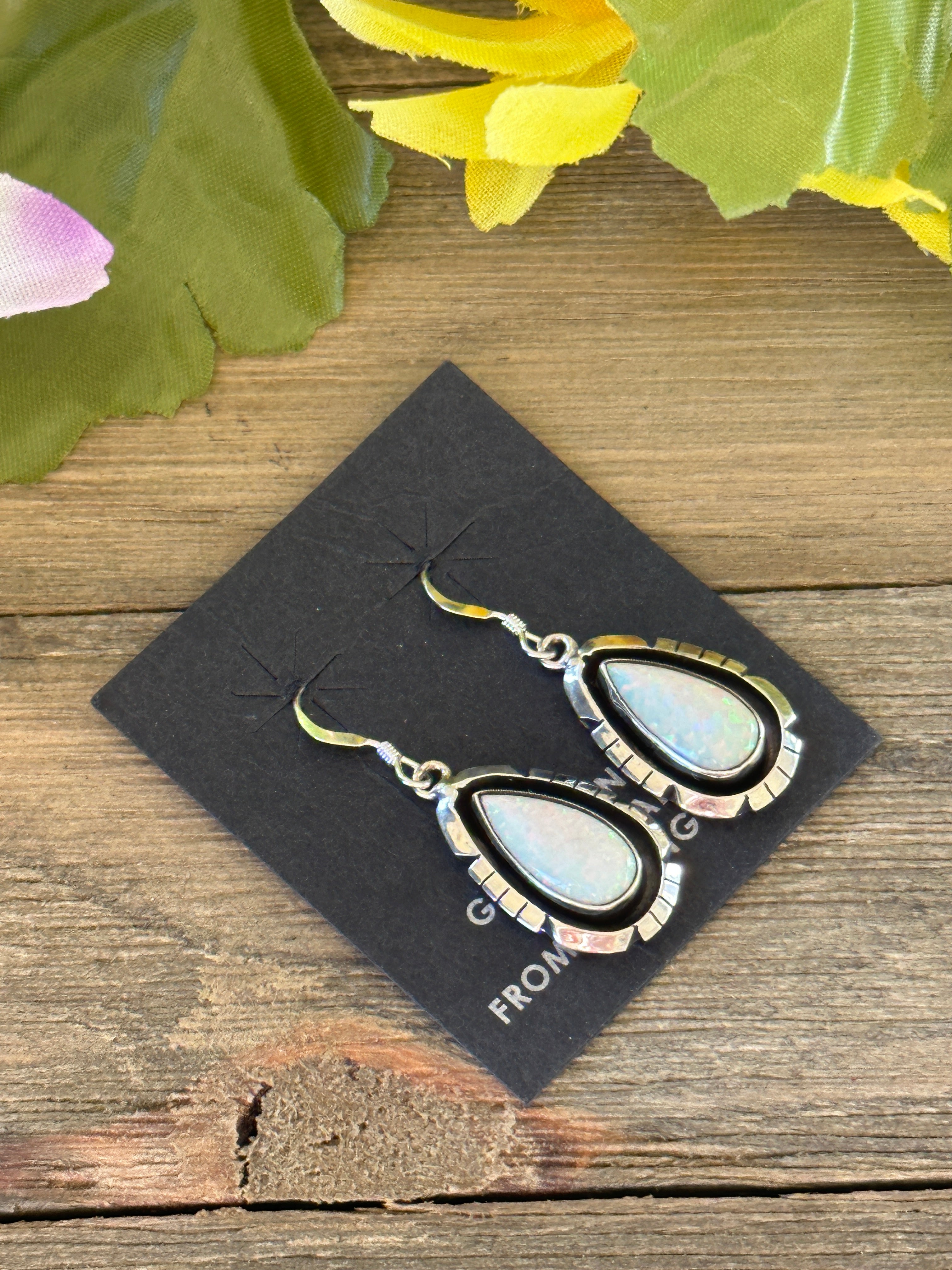 Navajo Made Opal (Man Made) & Sterling Silver Dangle Earrings