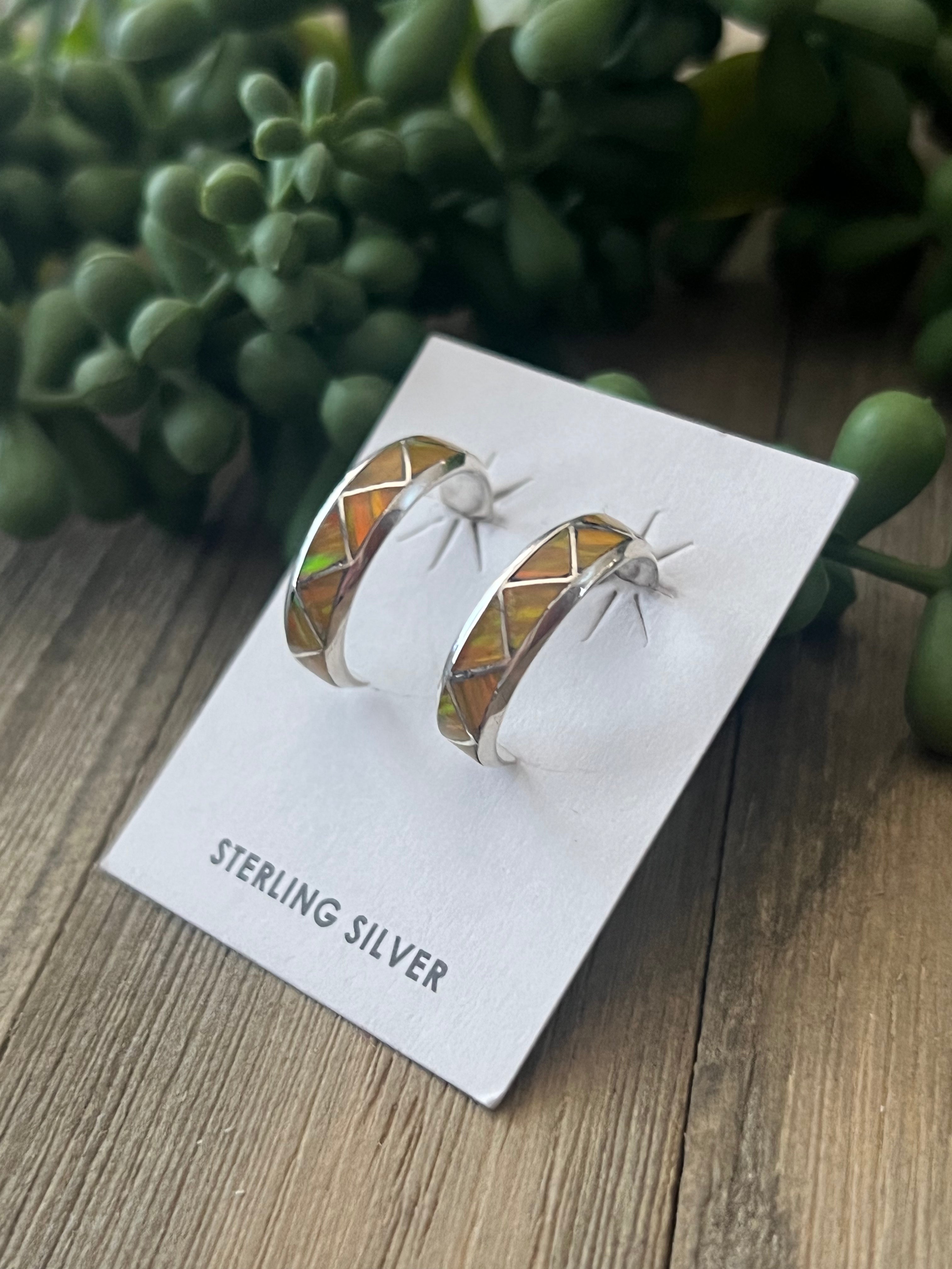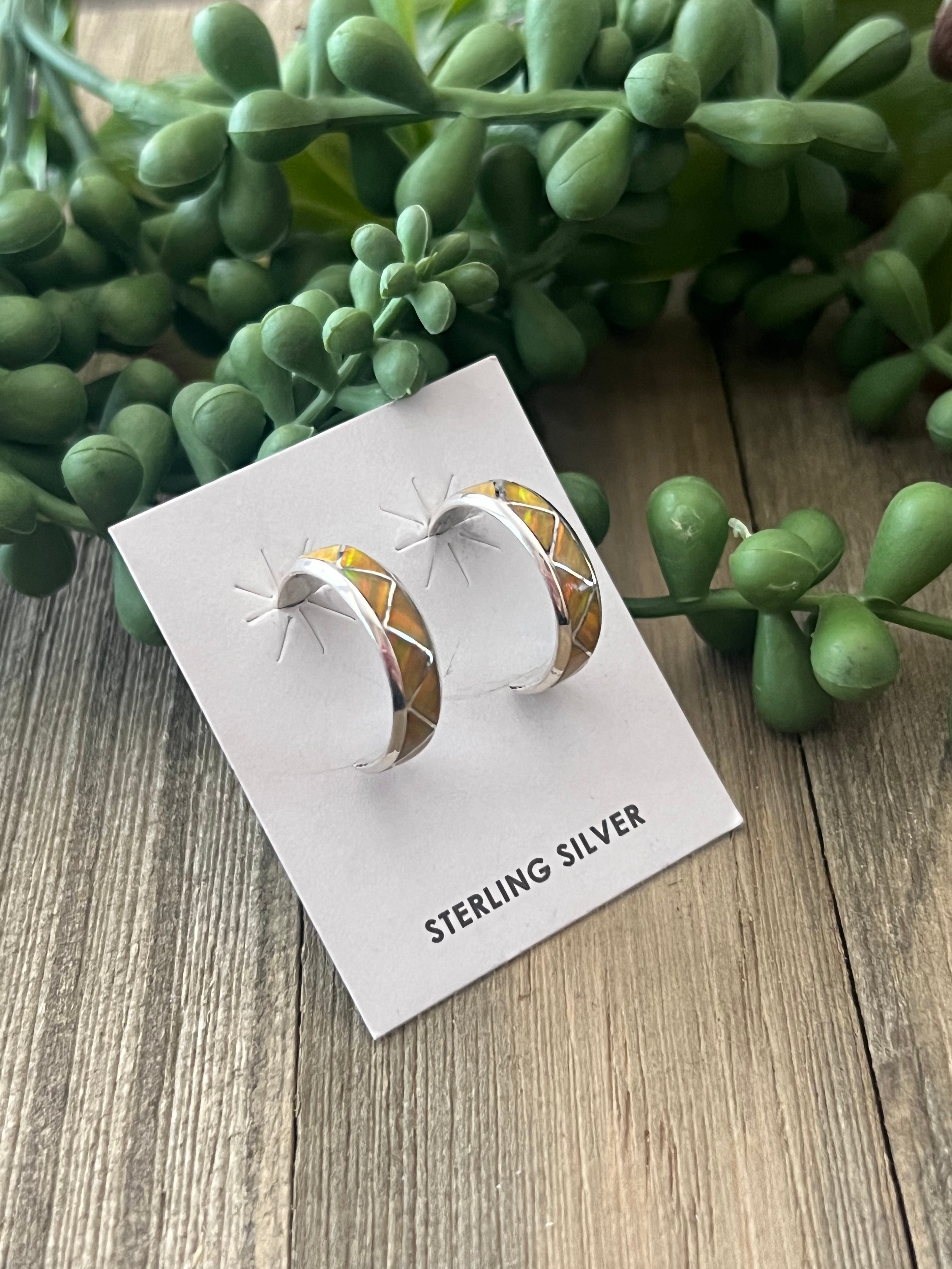 Navajo Made Opal (Man Made) & Sterling Silver Hoop Post Earrings
