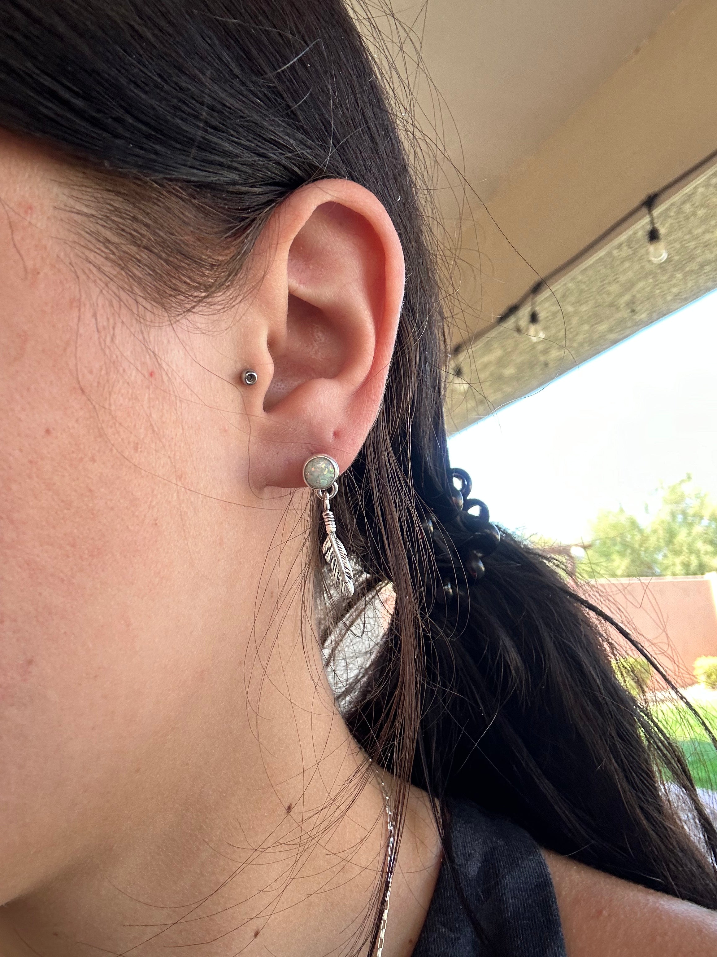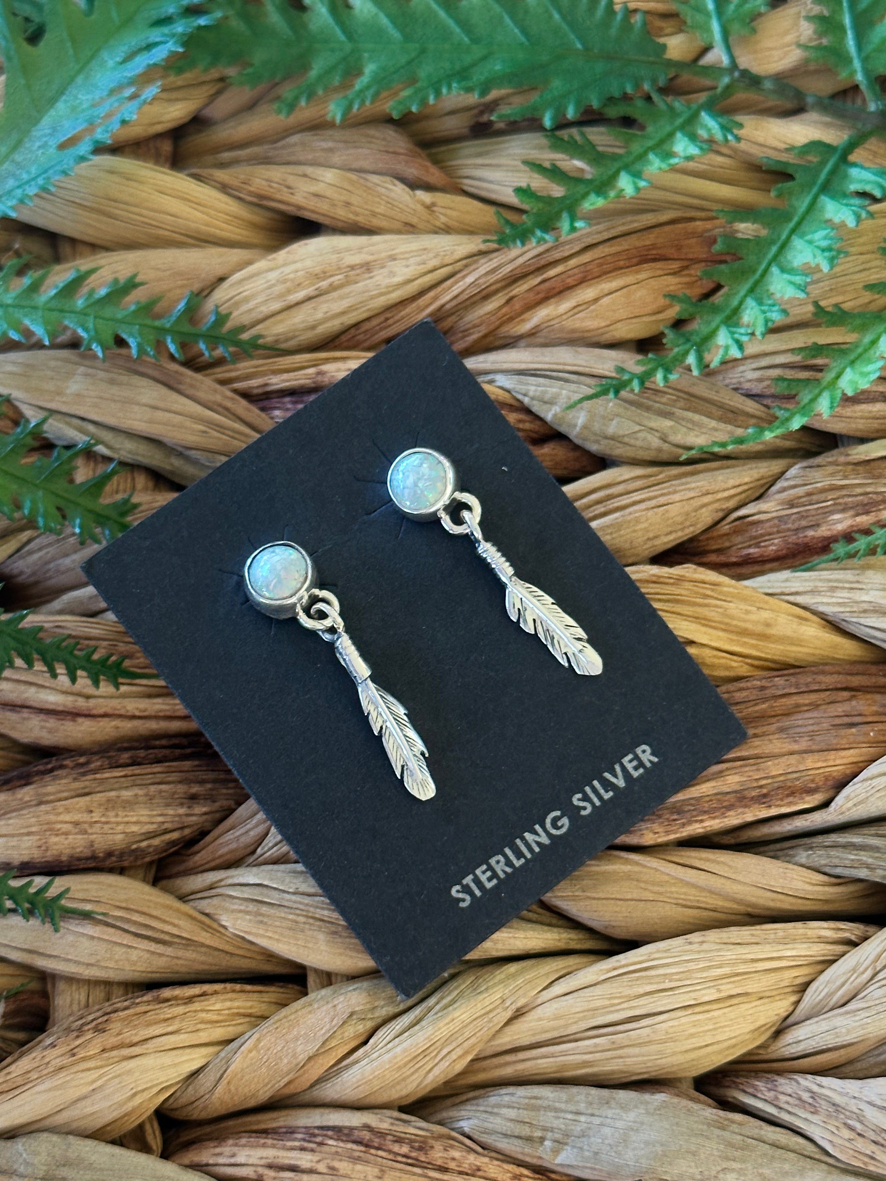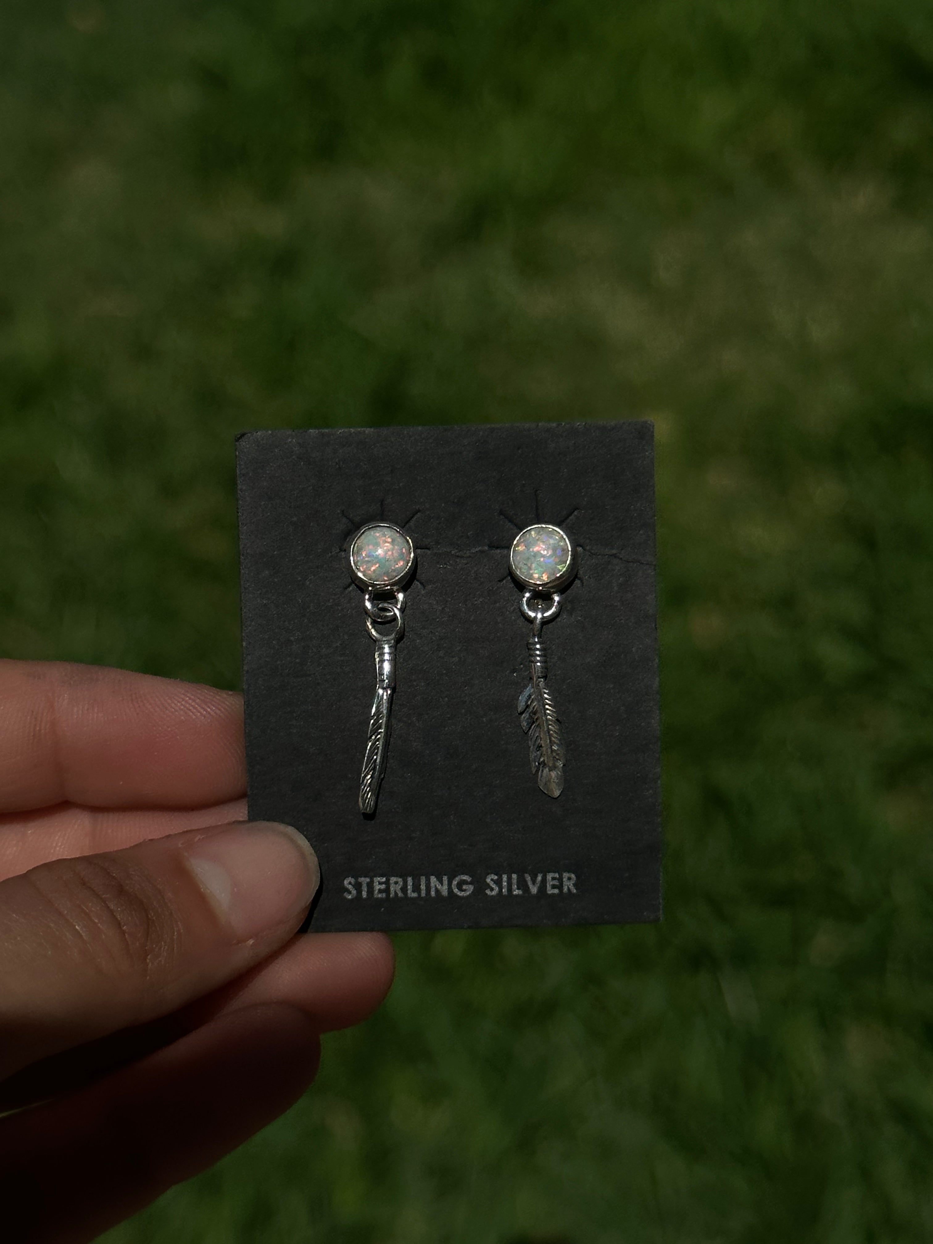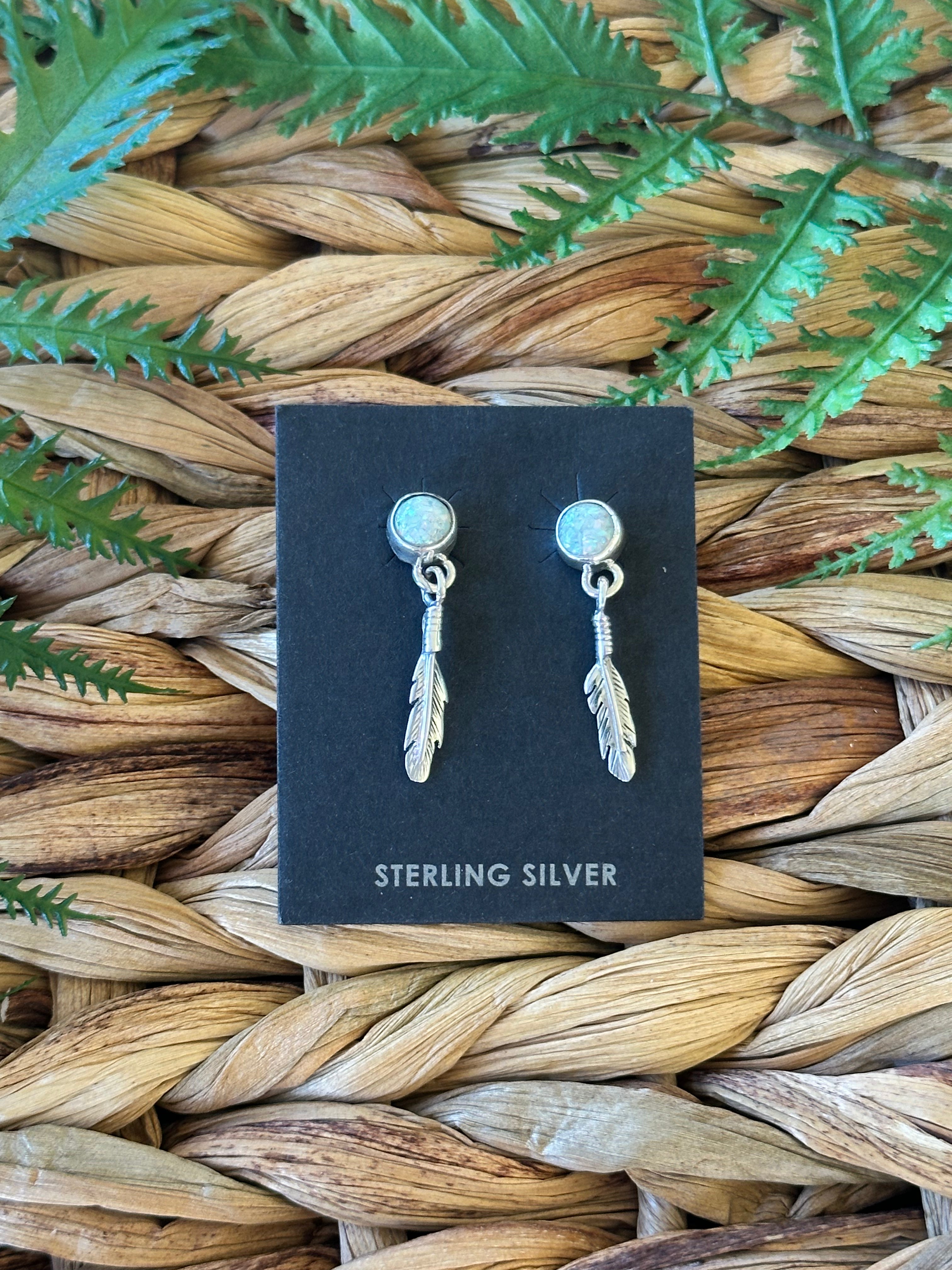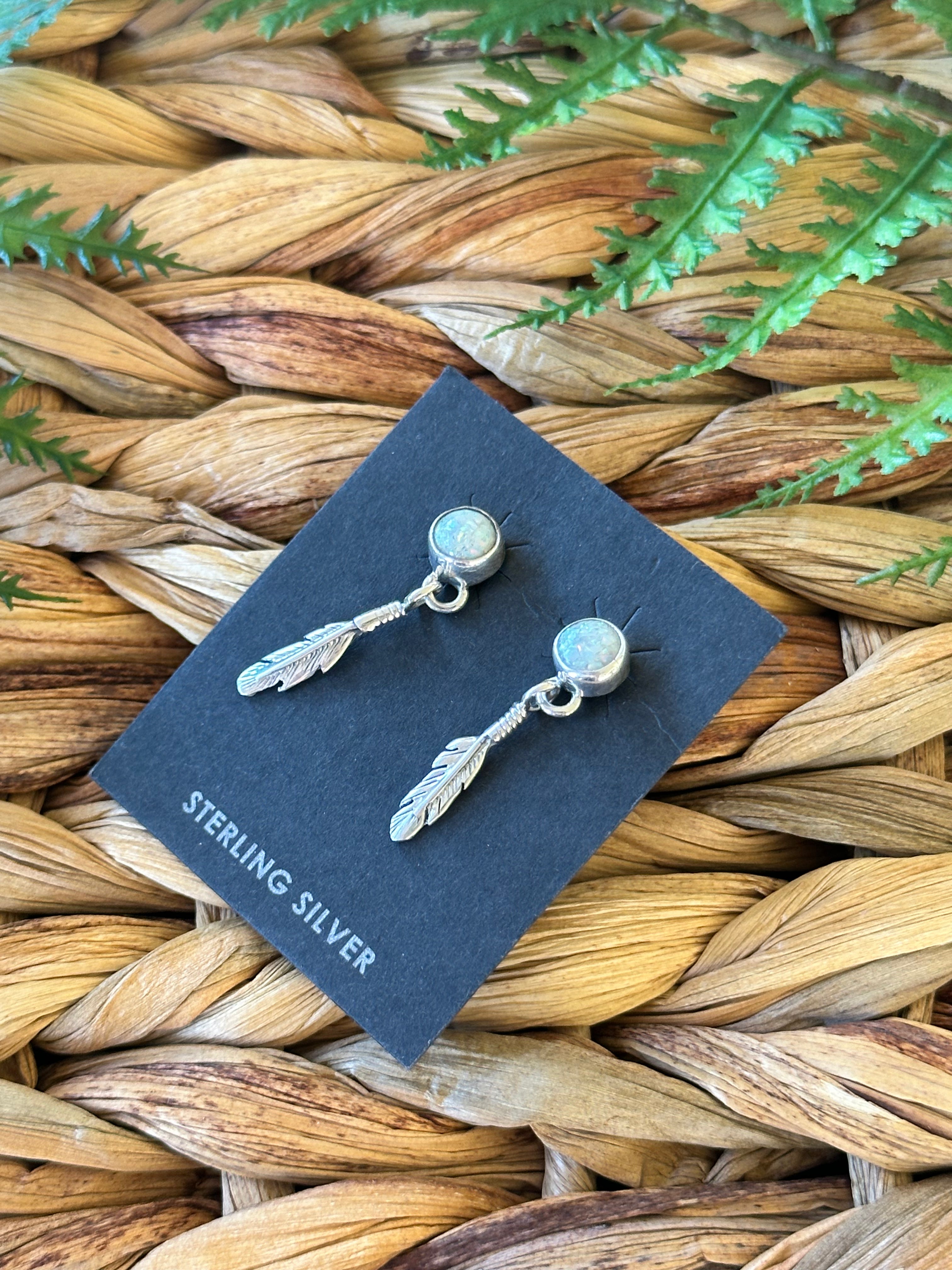 Navajo Made Opal & Sterling Silver Post Dangle Feather Earrings