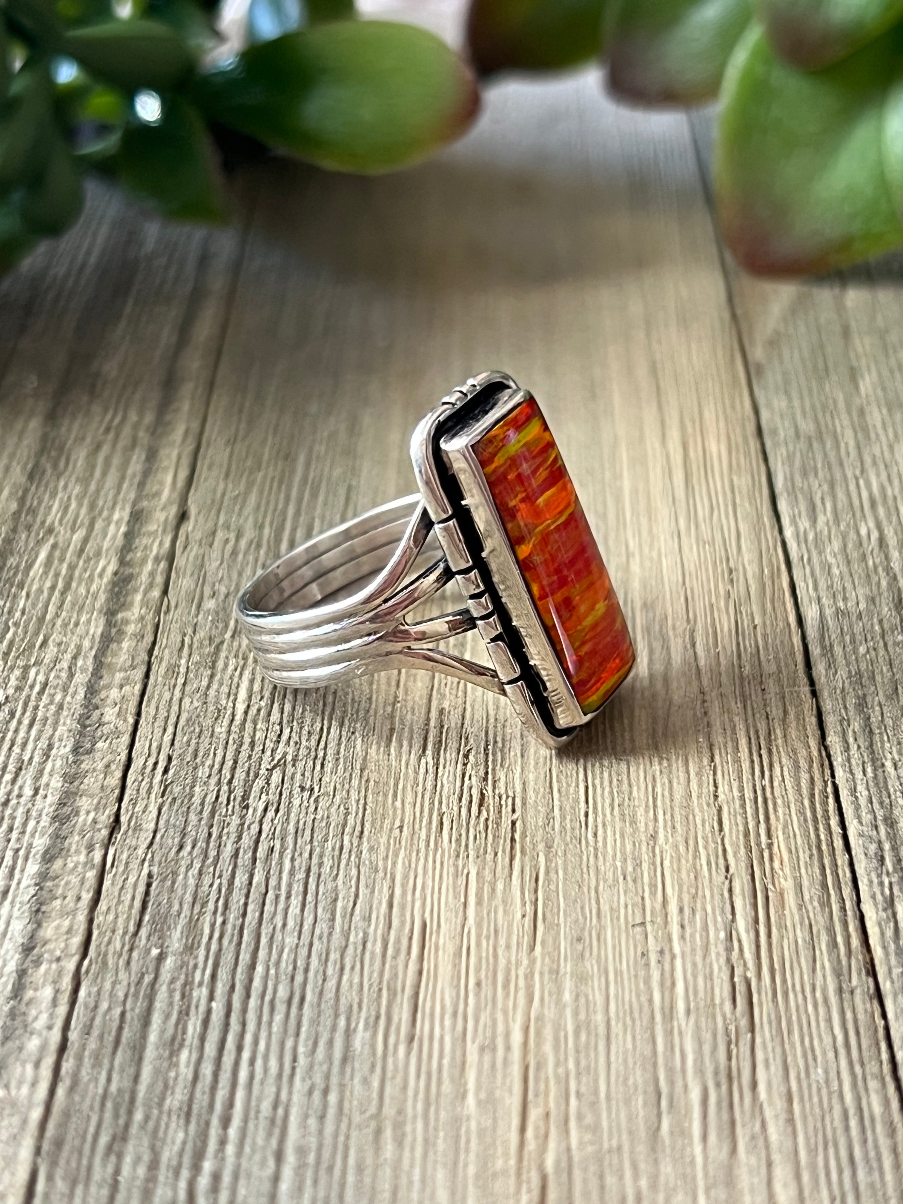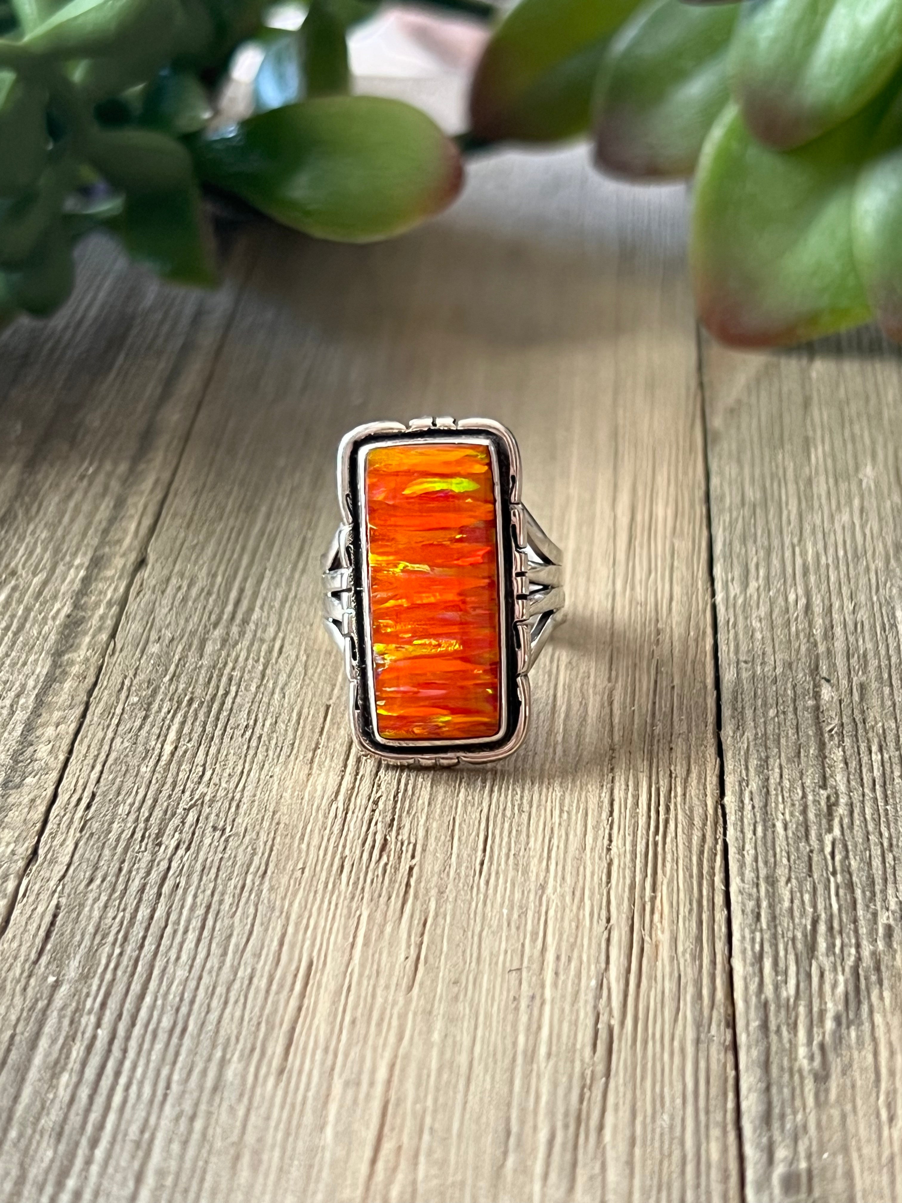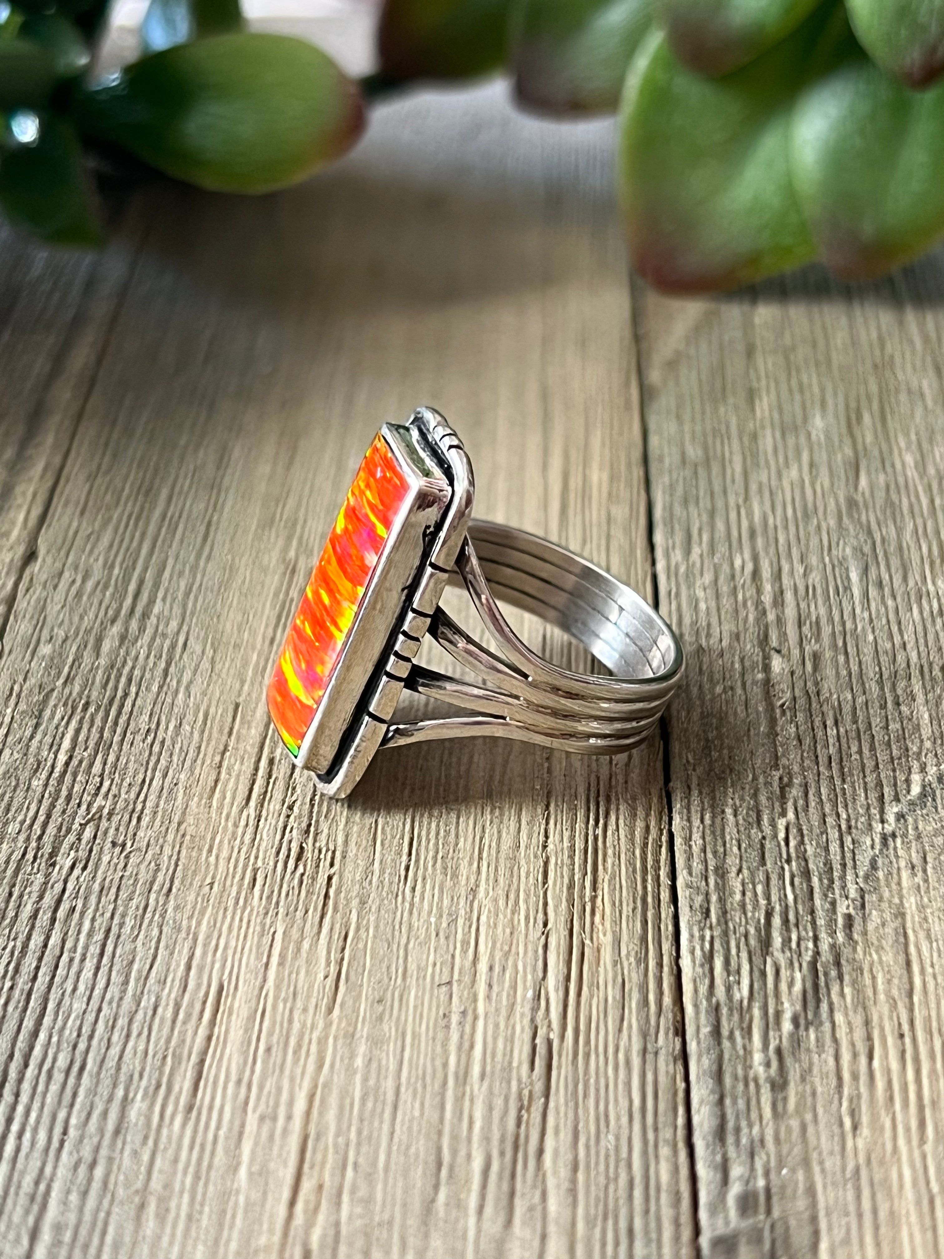 Navajo Made Orange Opal (Man Made) & Sterling Silver Ring