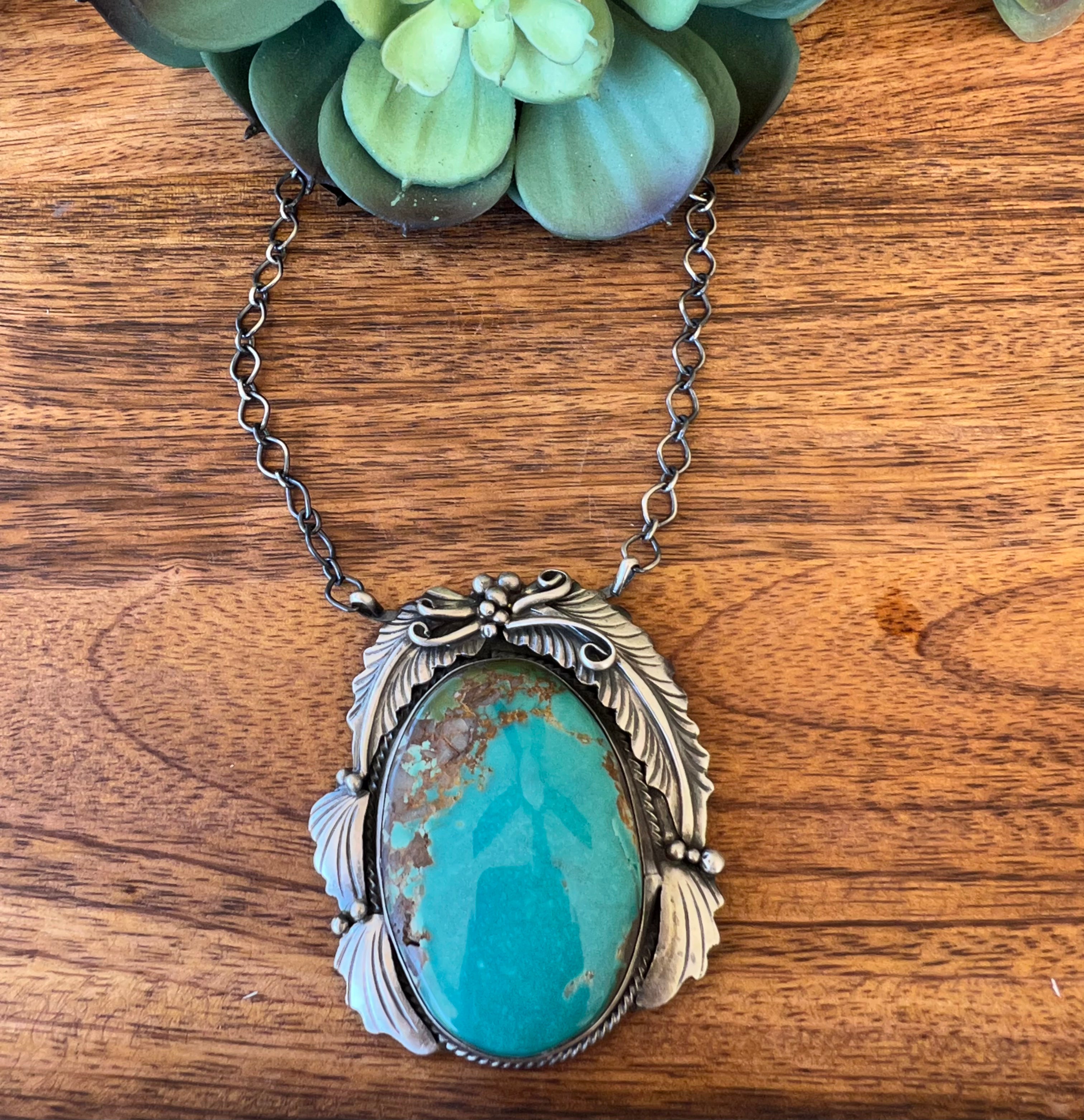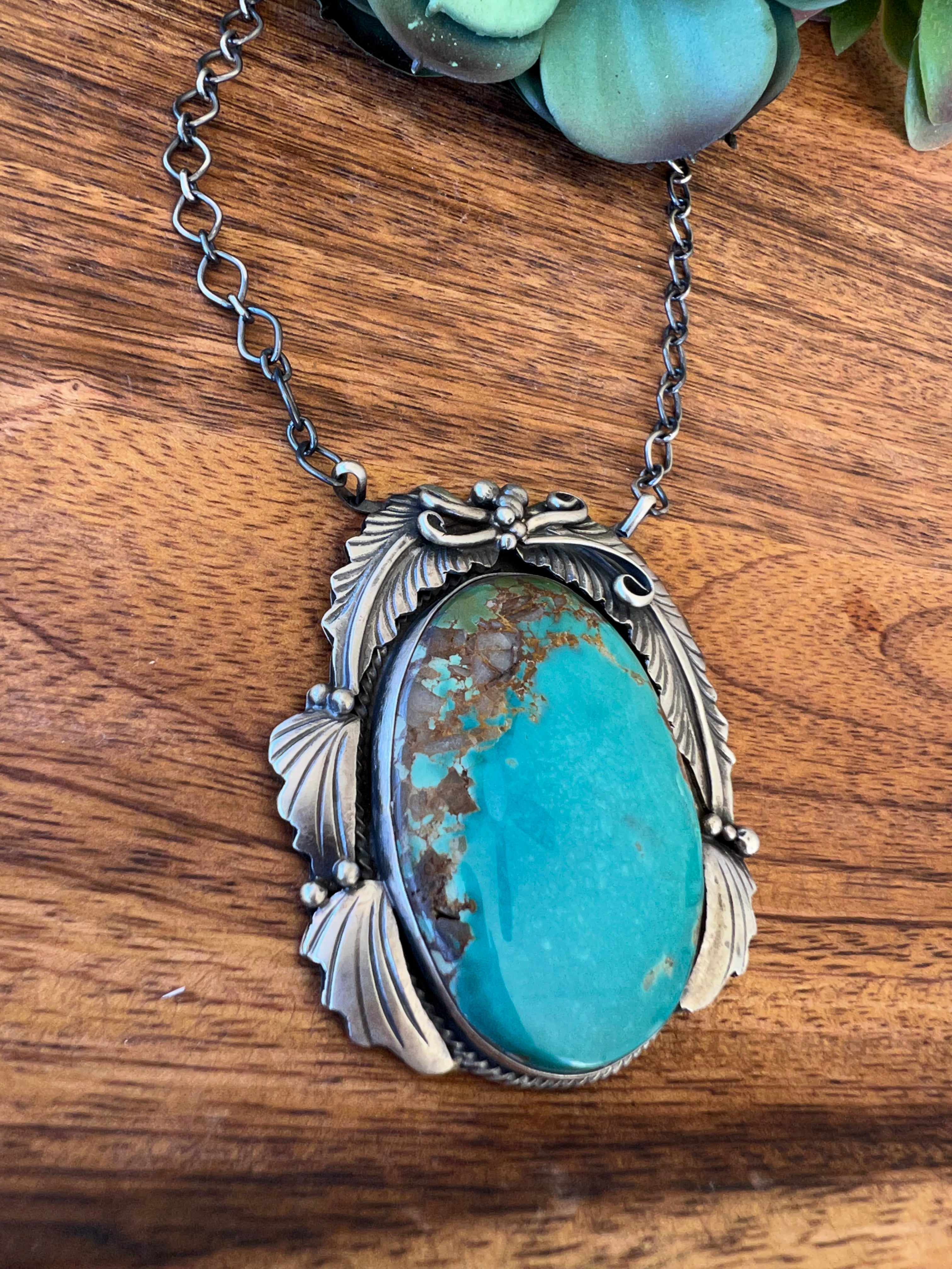Navajo Made #8 Turquoise & Sterling Silver Necklace