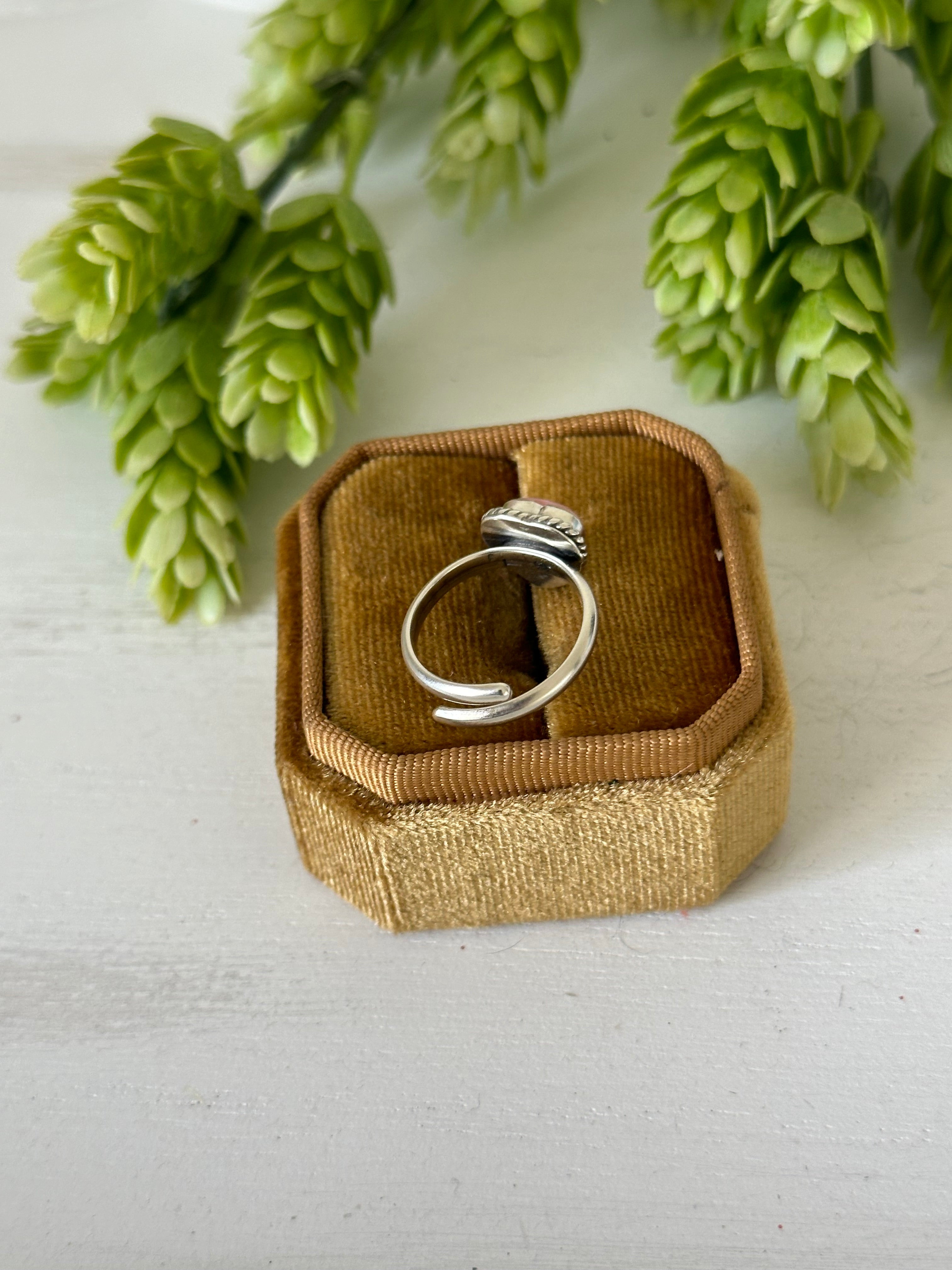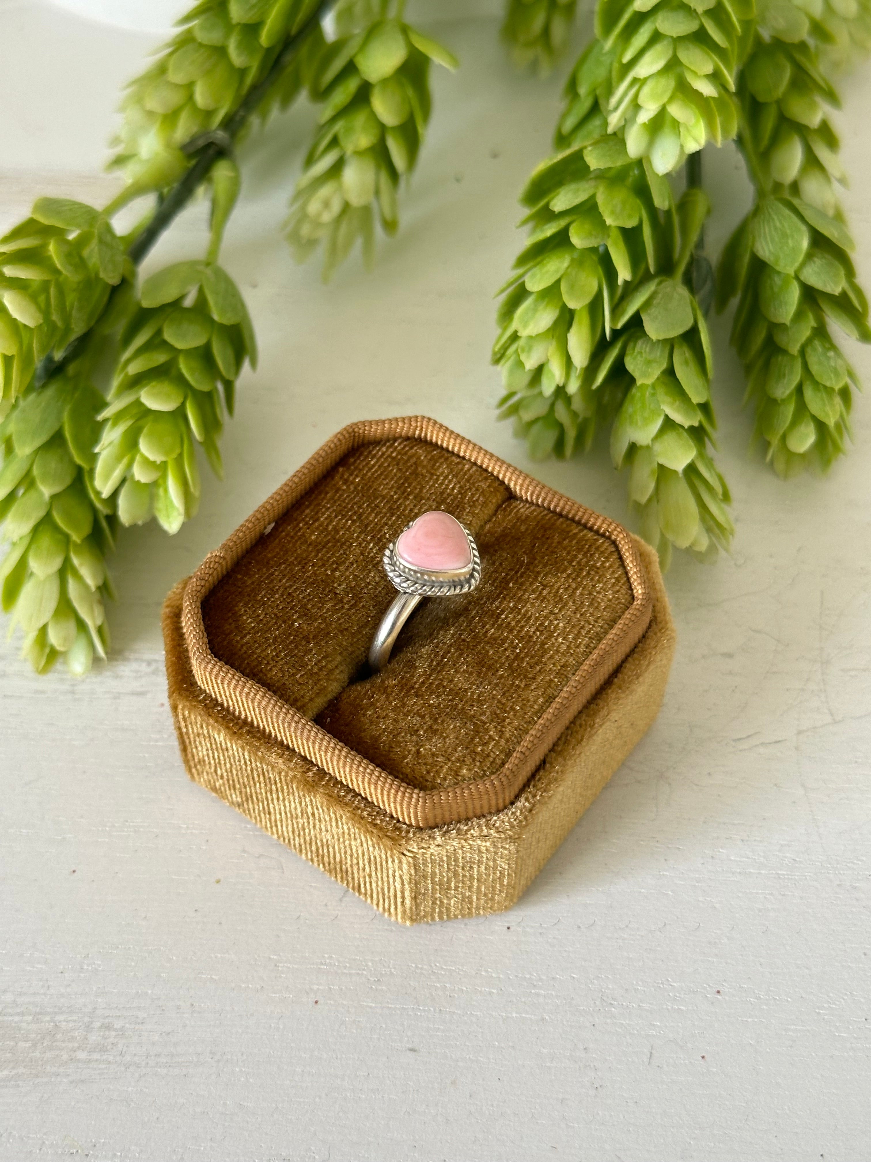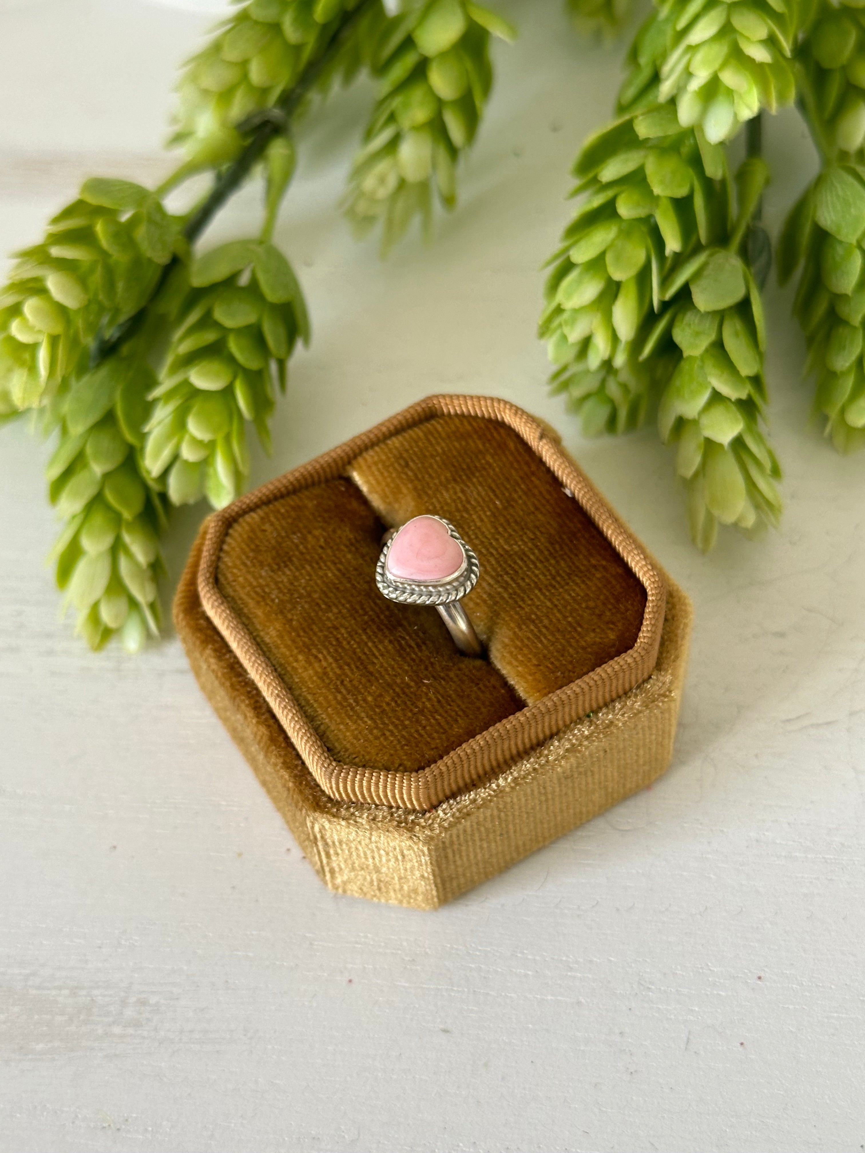 Navajo Made Pink Conch & Sterling Silver Adjustable Heart Ring