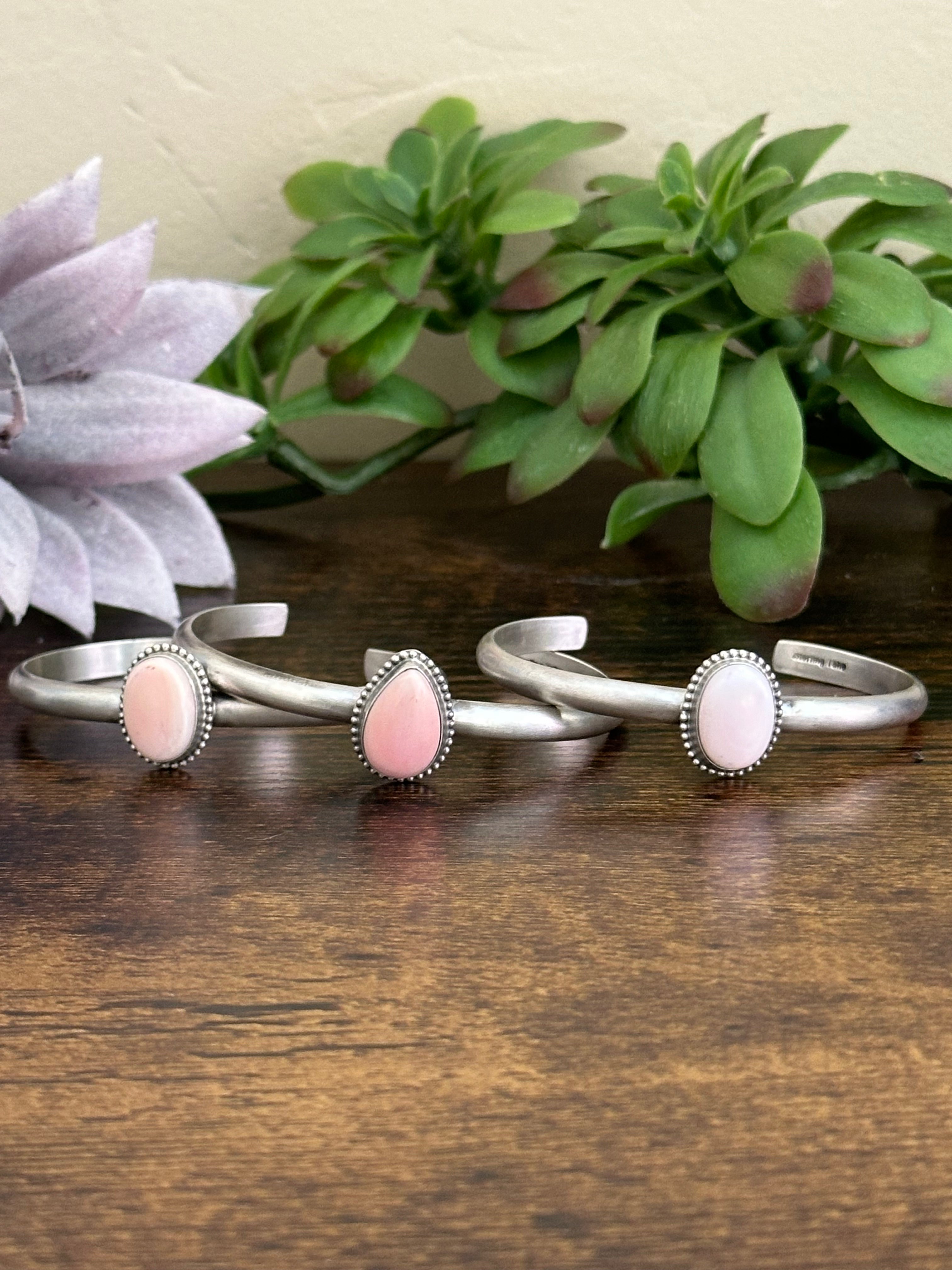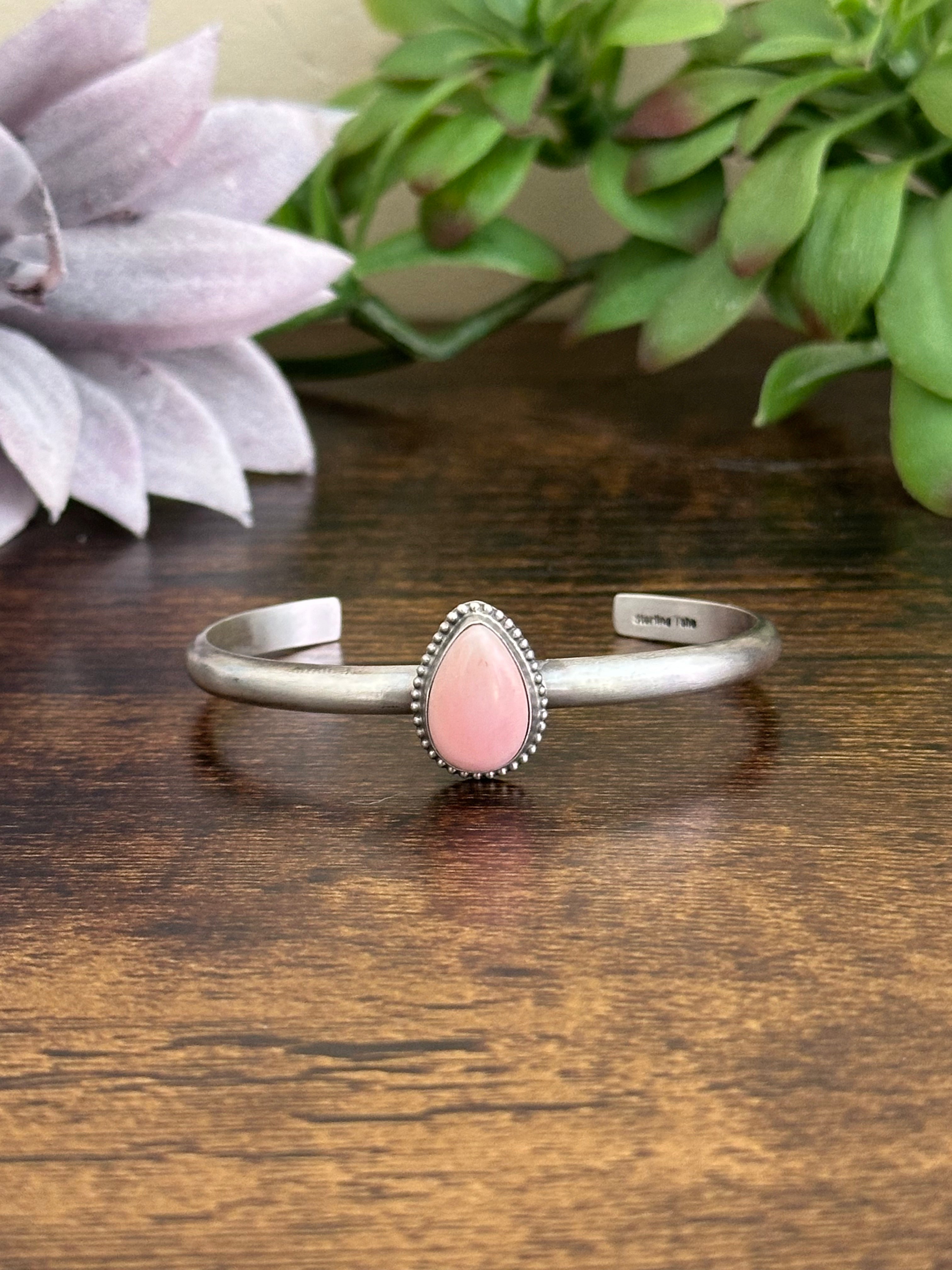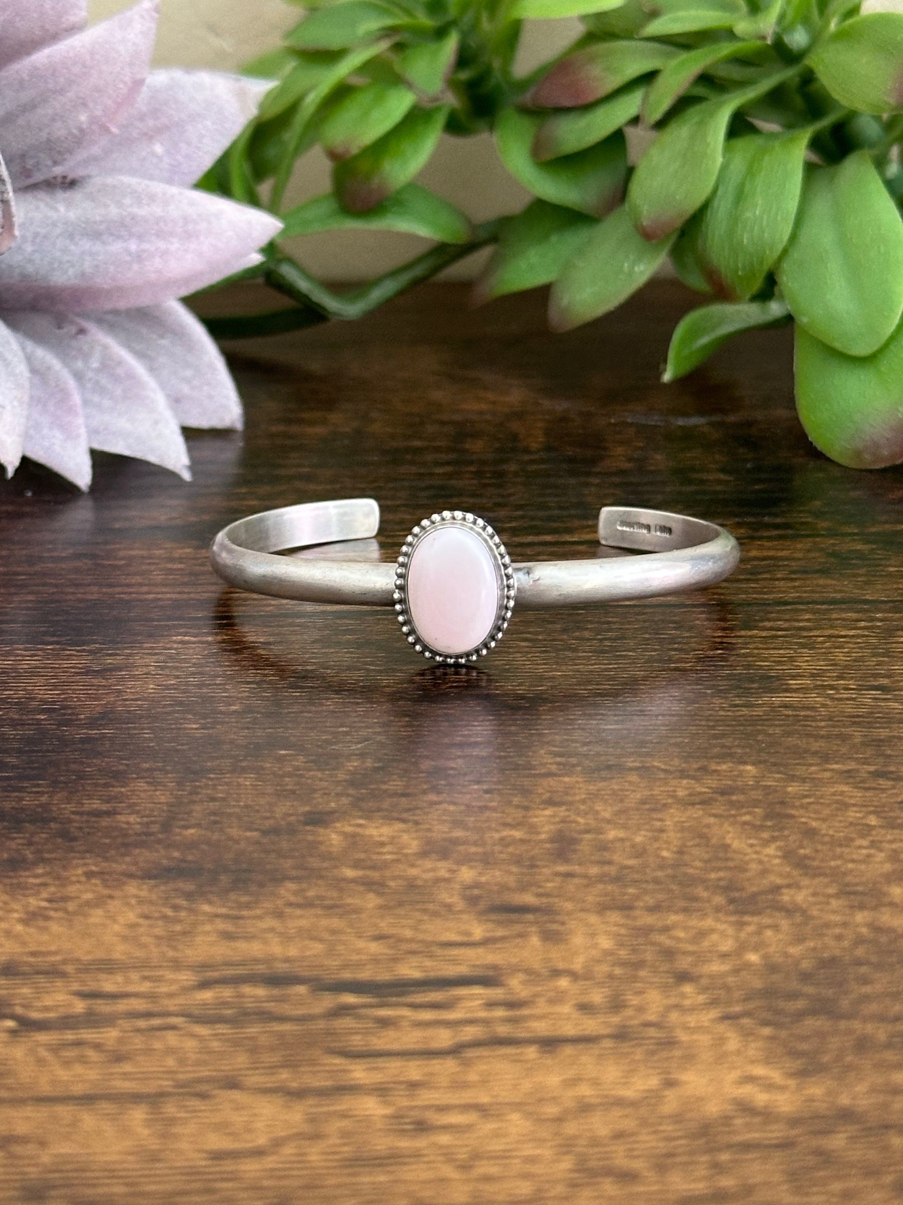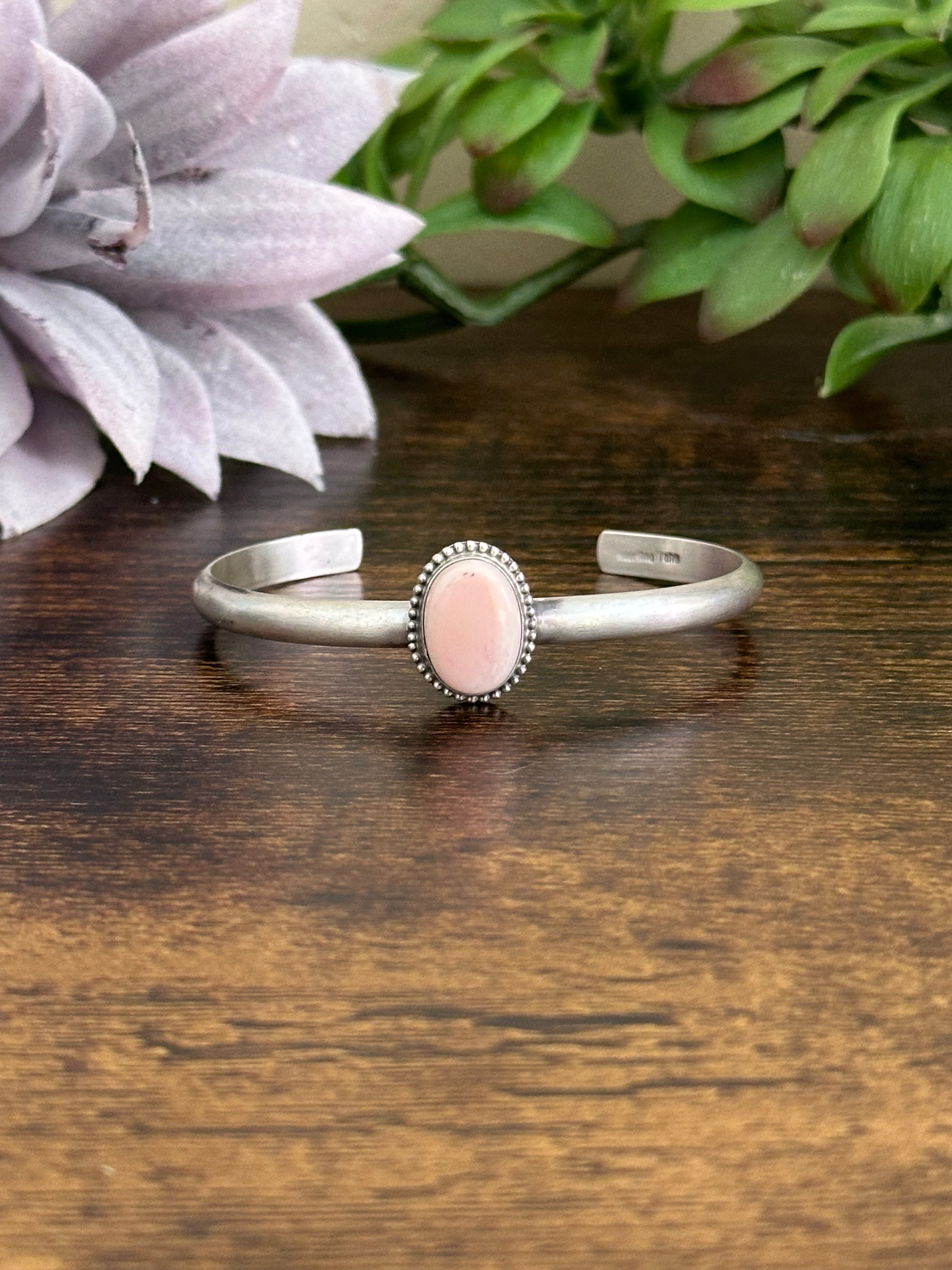 Navajo Made Pink Conch & Sterling Silver Cuff Bracelet