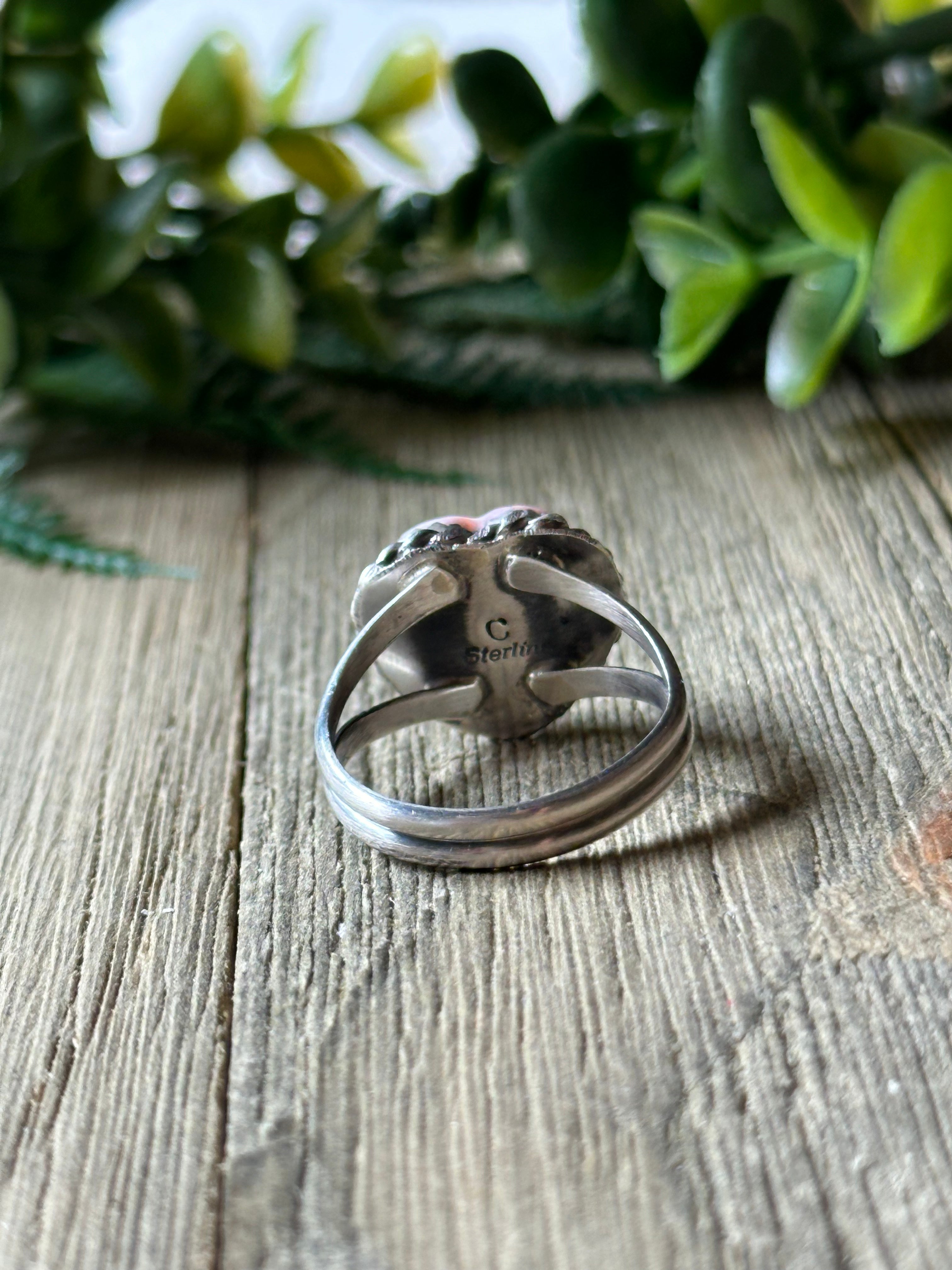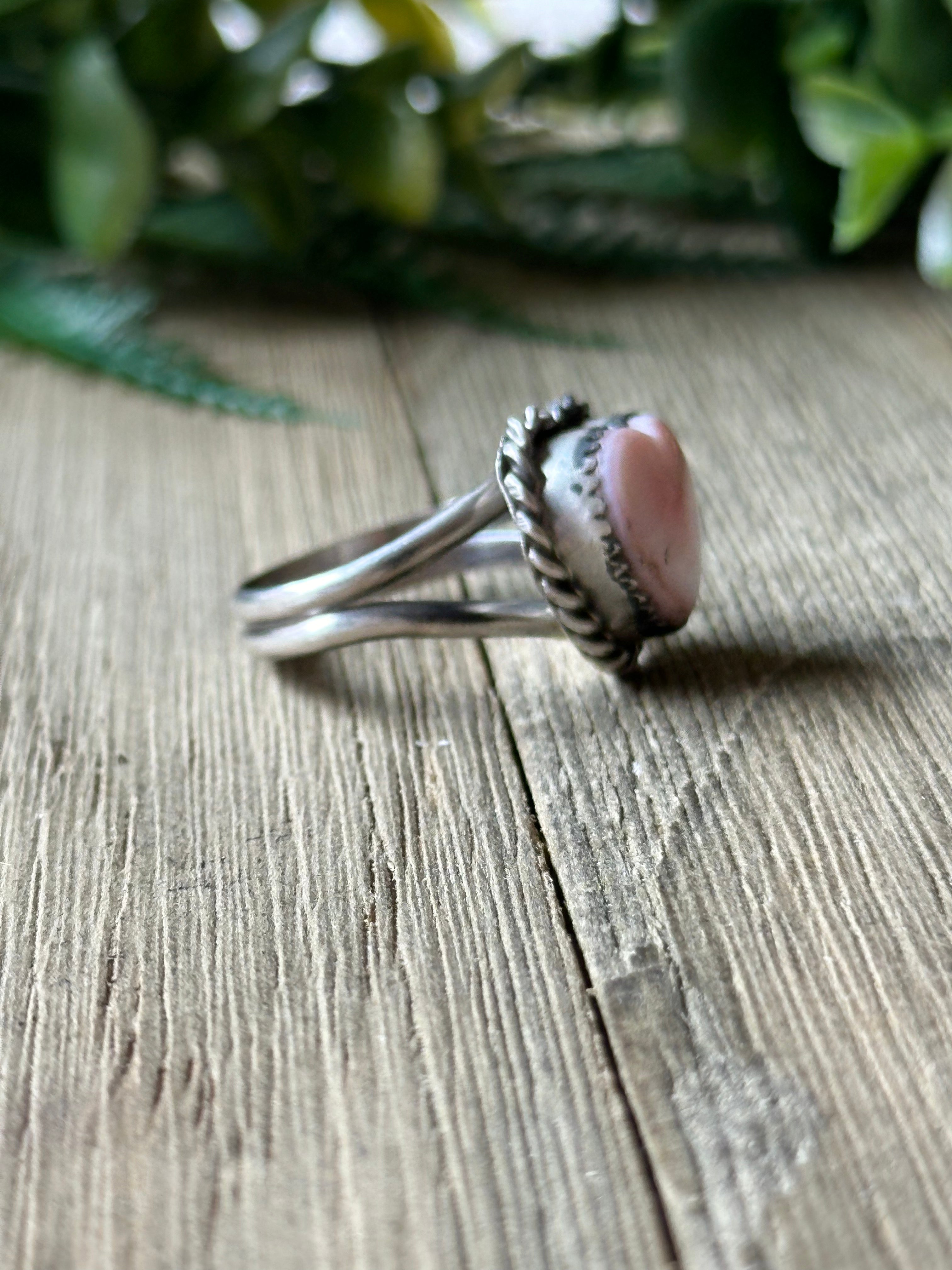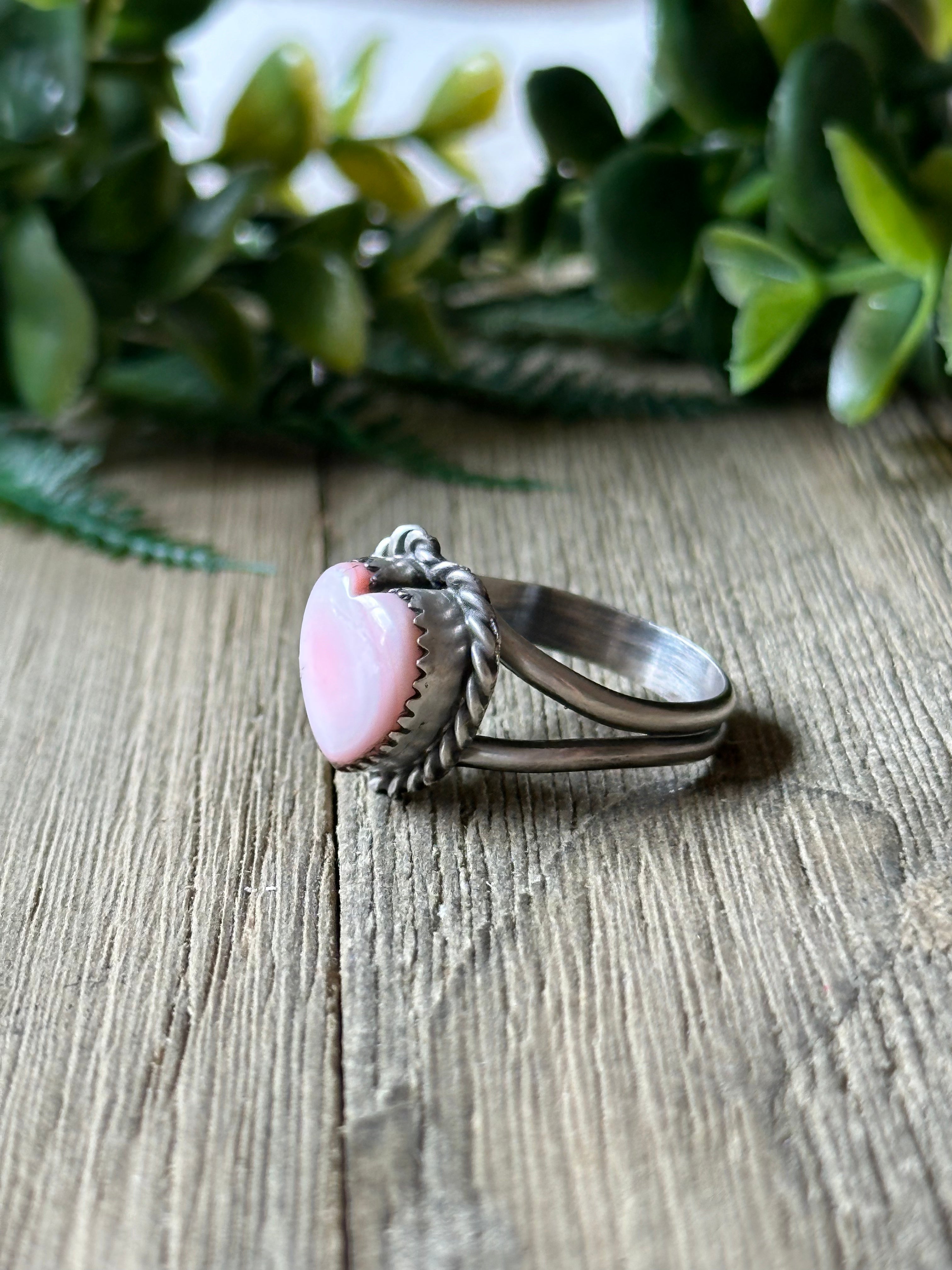 Navajo Made Pink Conch & Sterling Silver Heart Ring