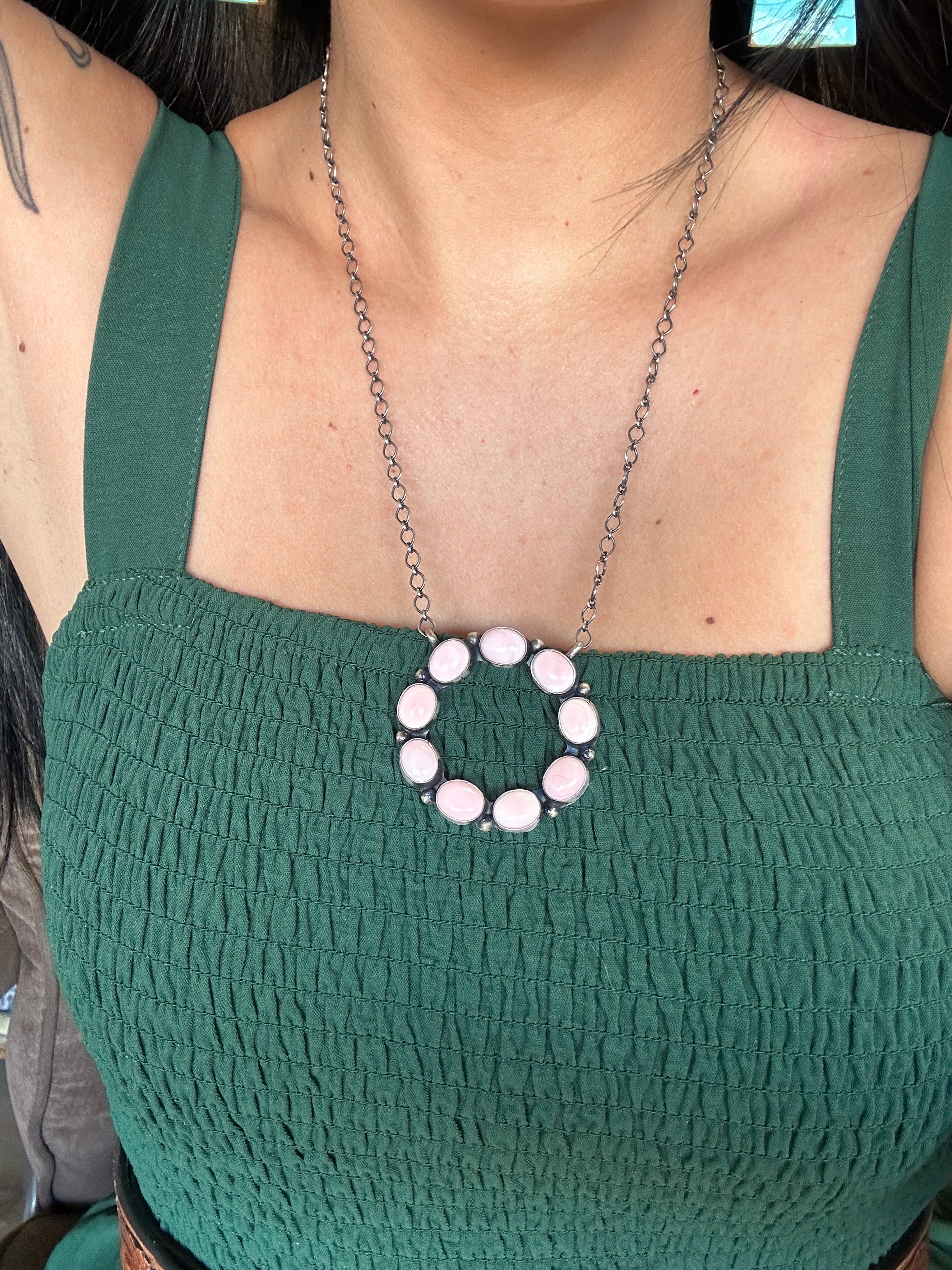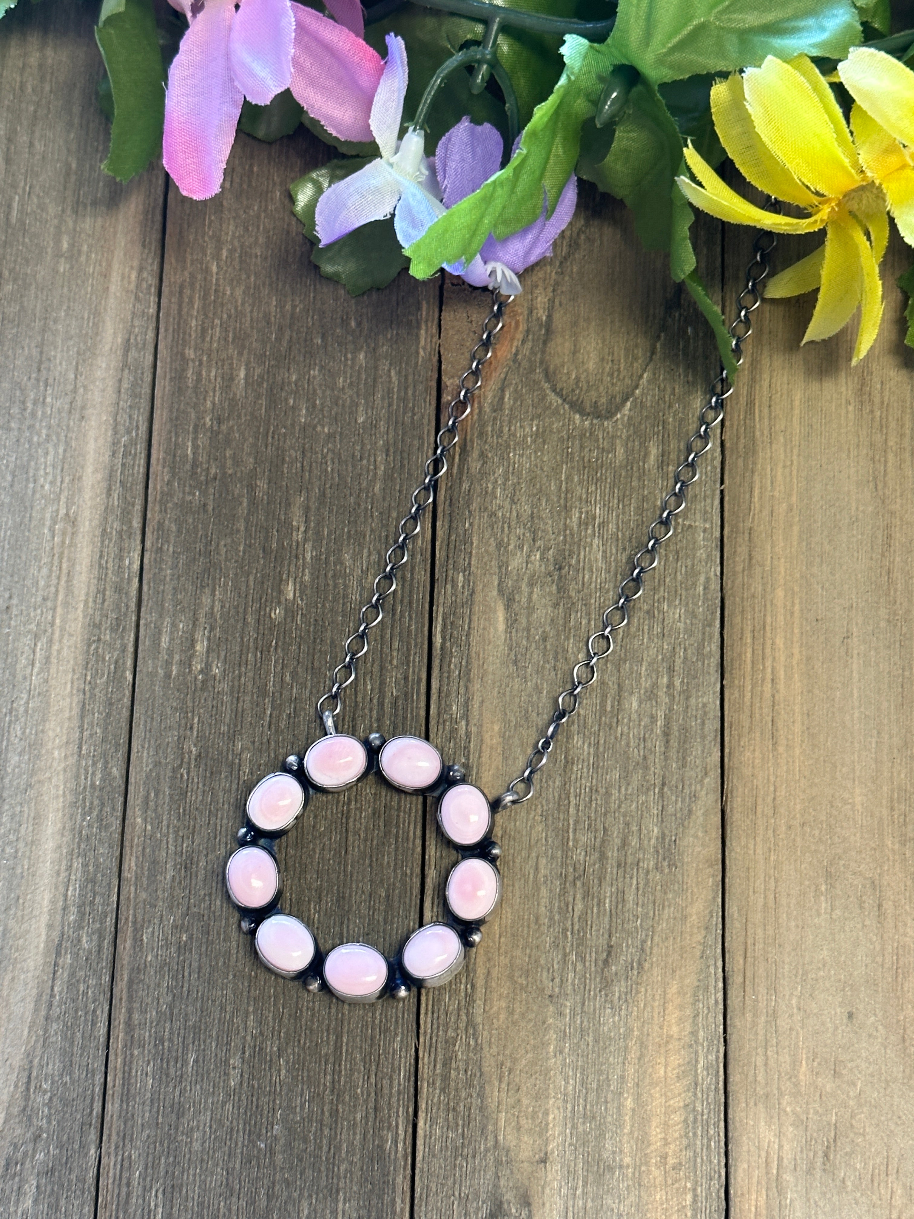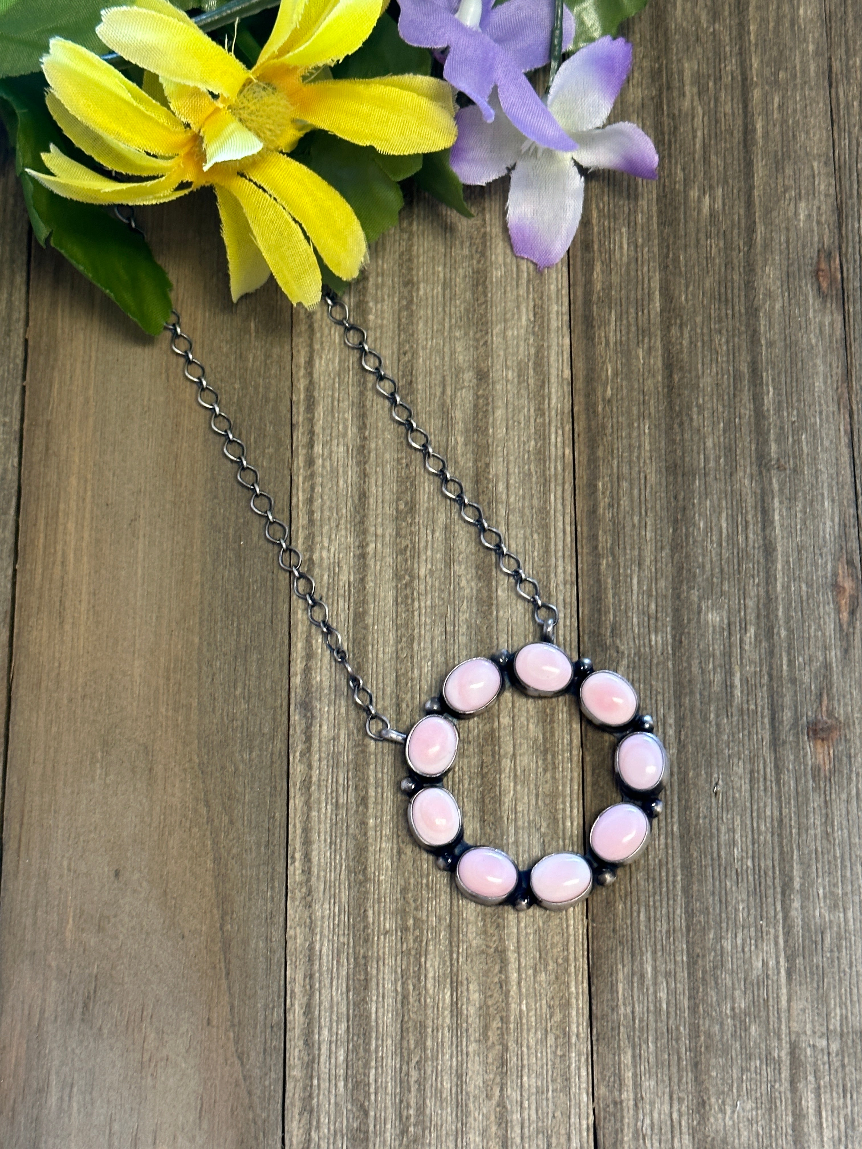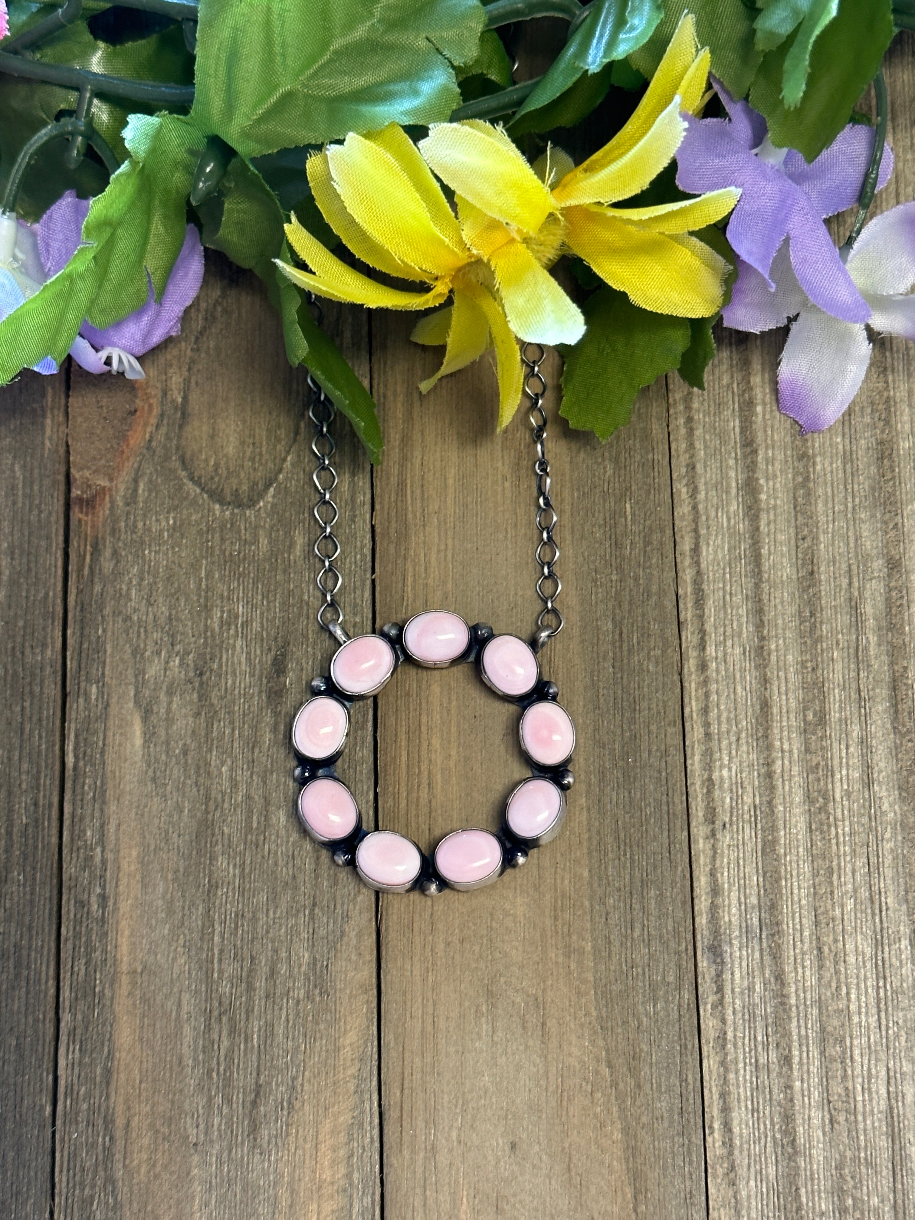 Navajo Made Pink Conch & Sterling Silver Necklace