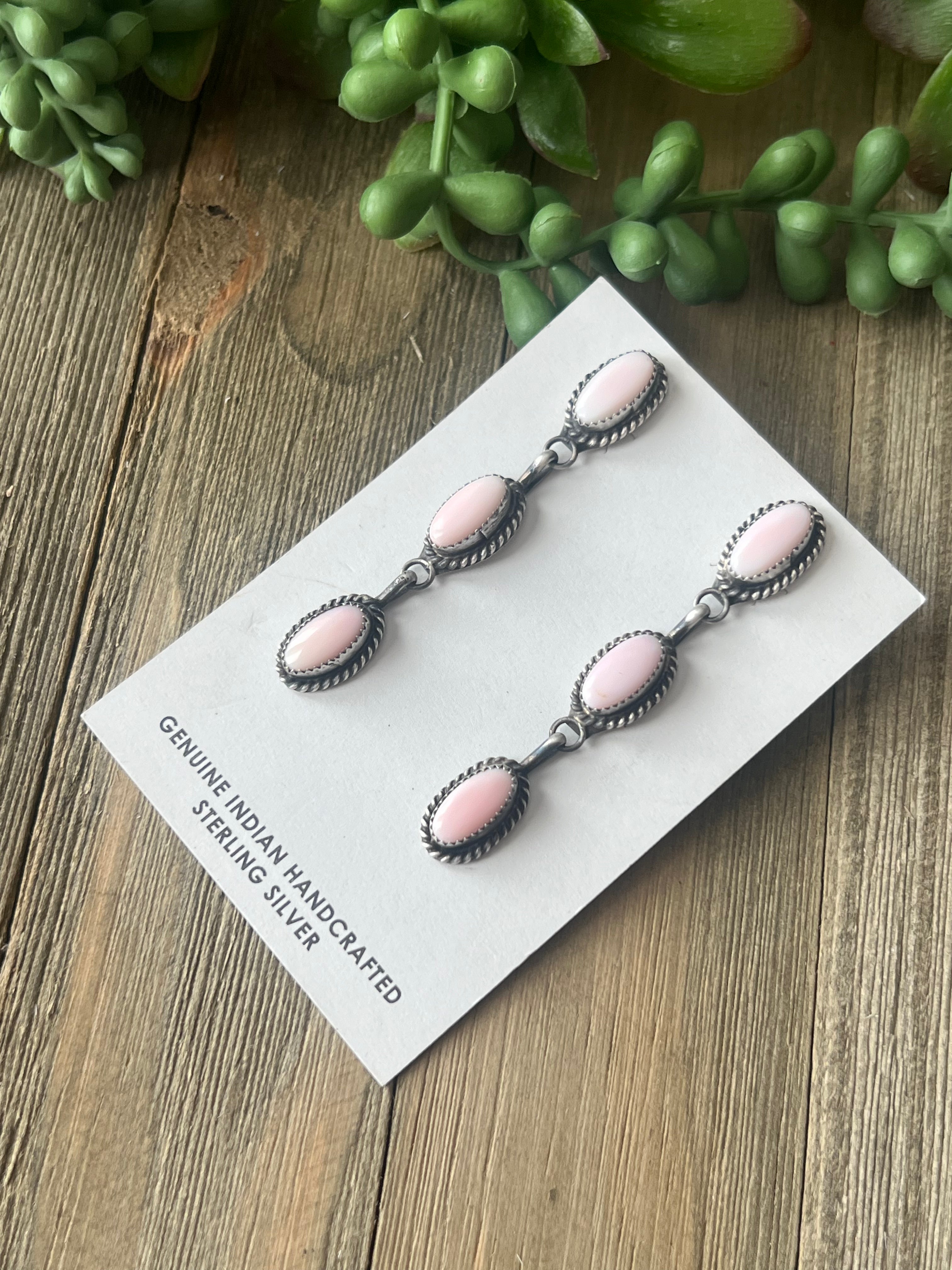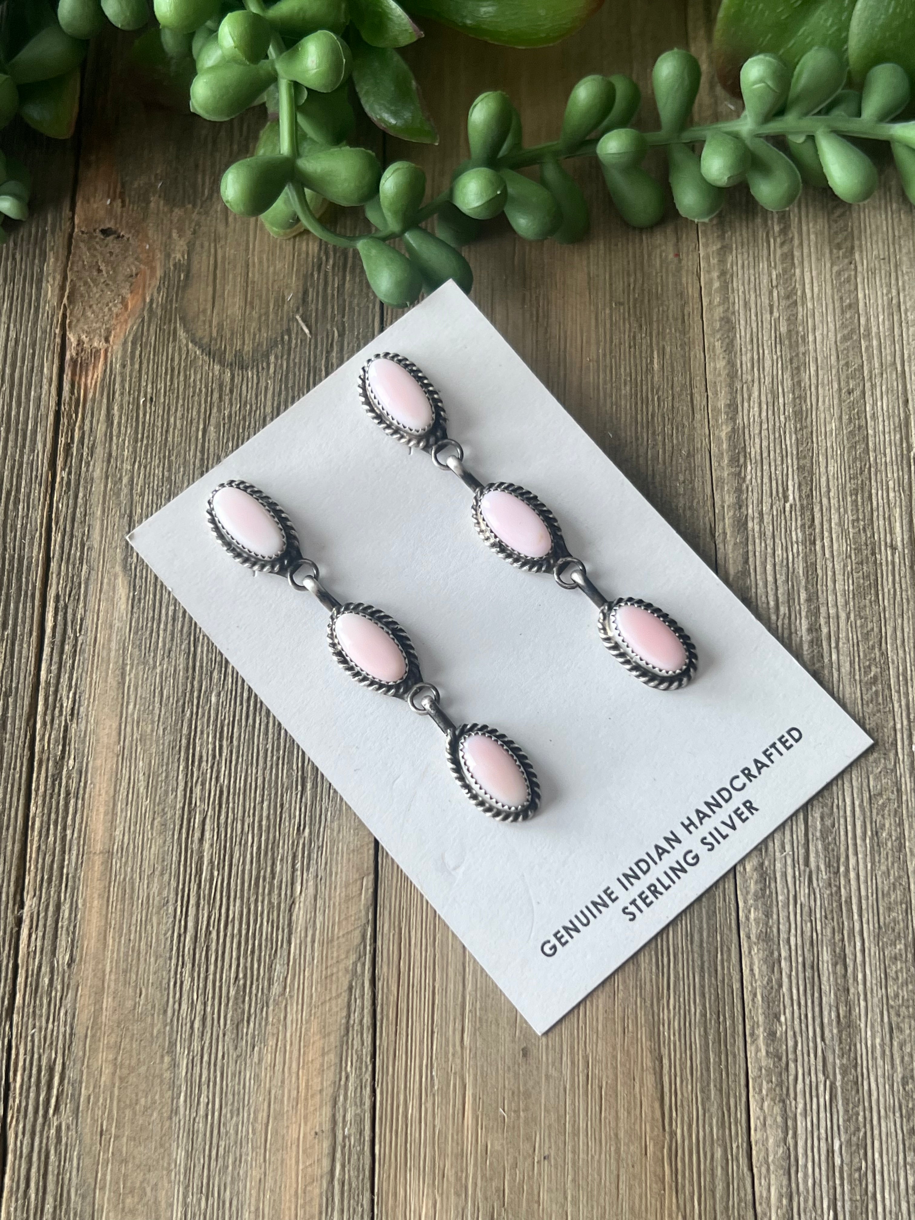 Navajo Made Pink Conch & Sterling Silver Post Dangle Earrings