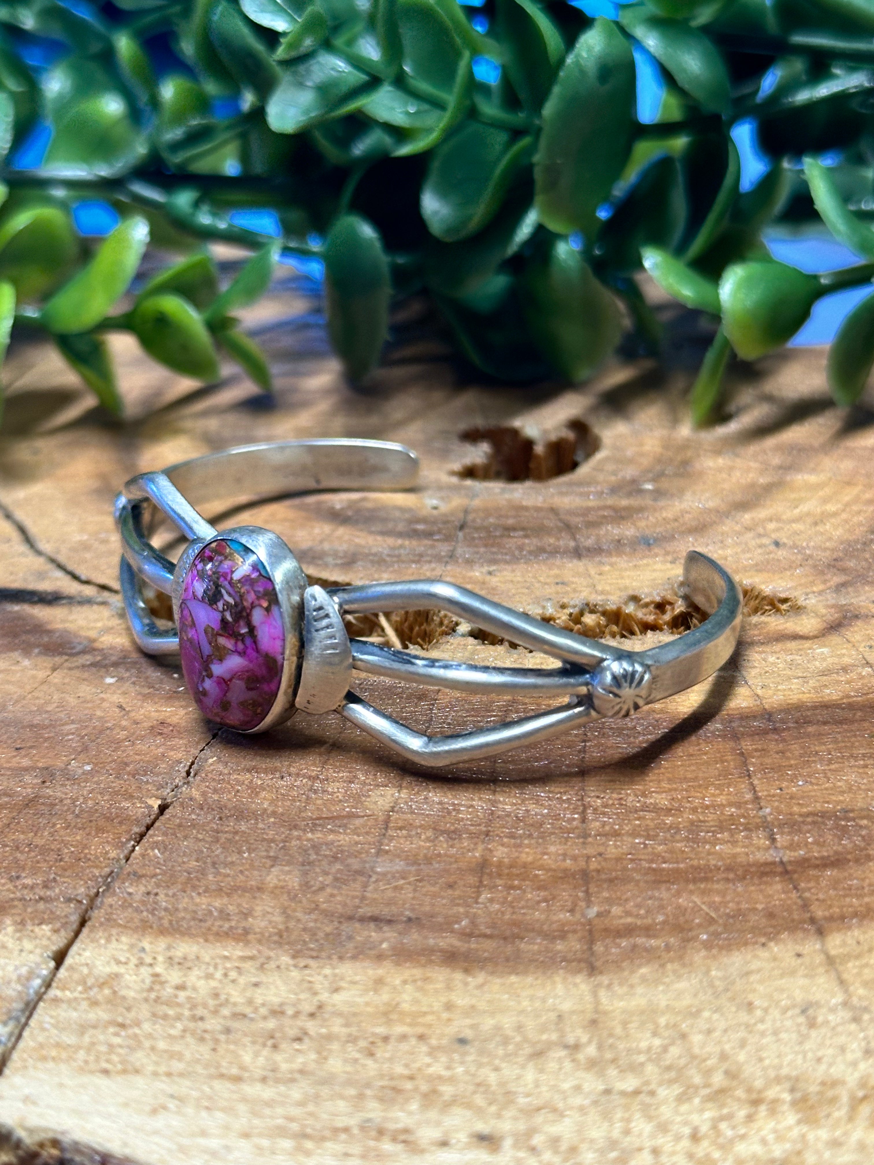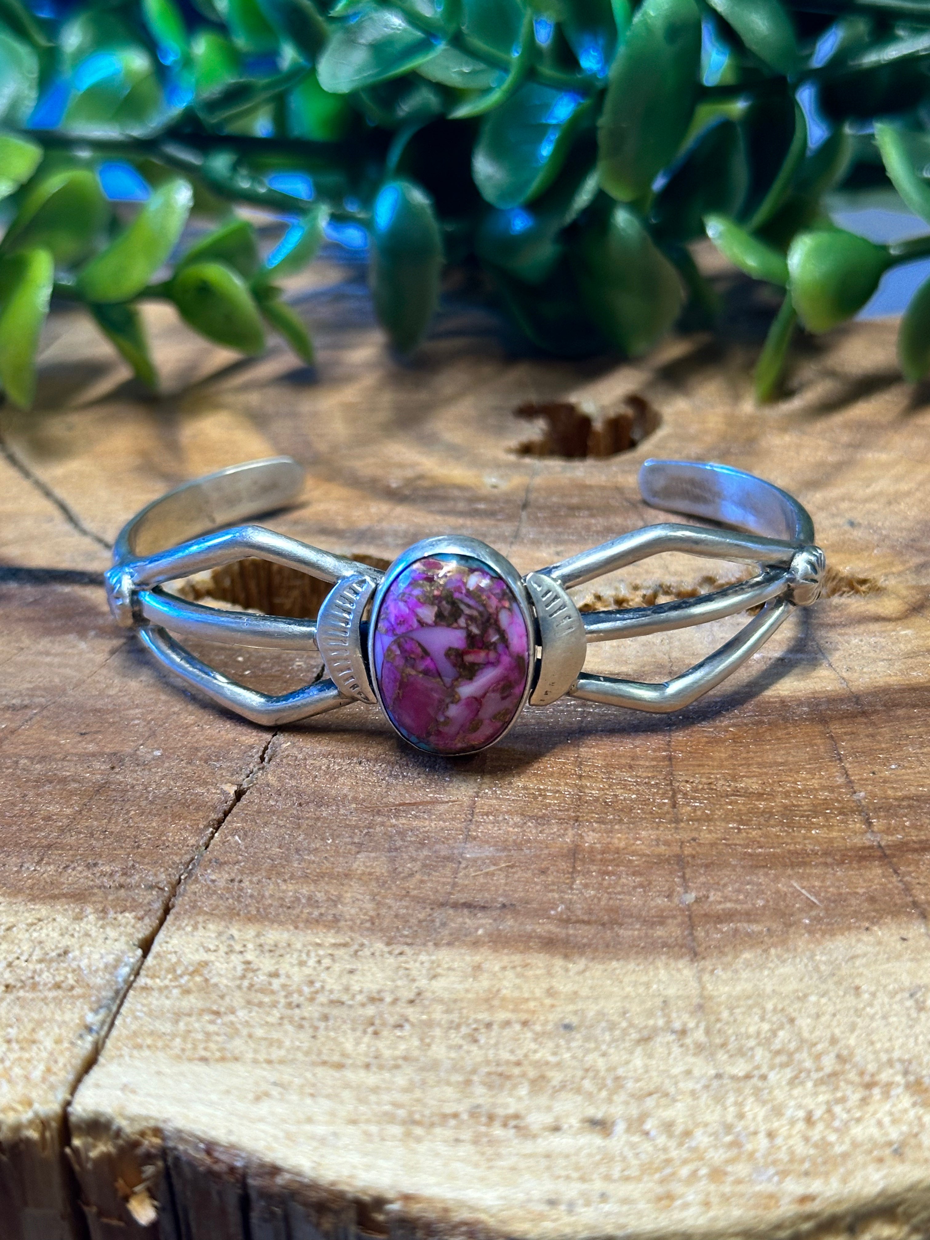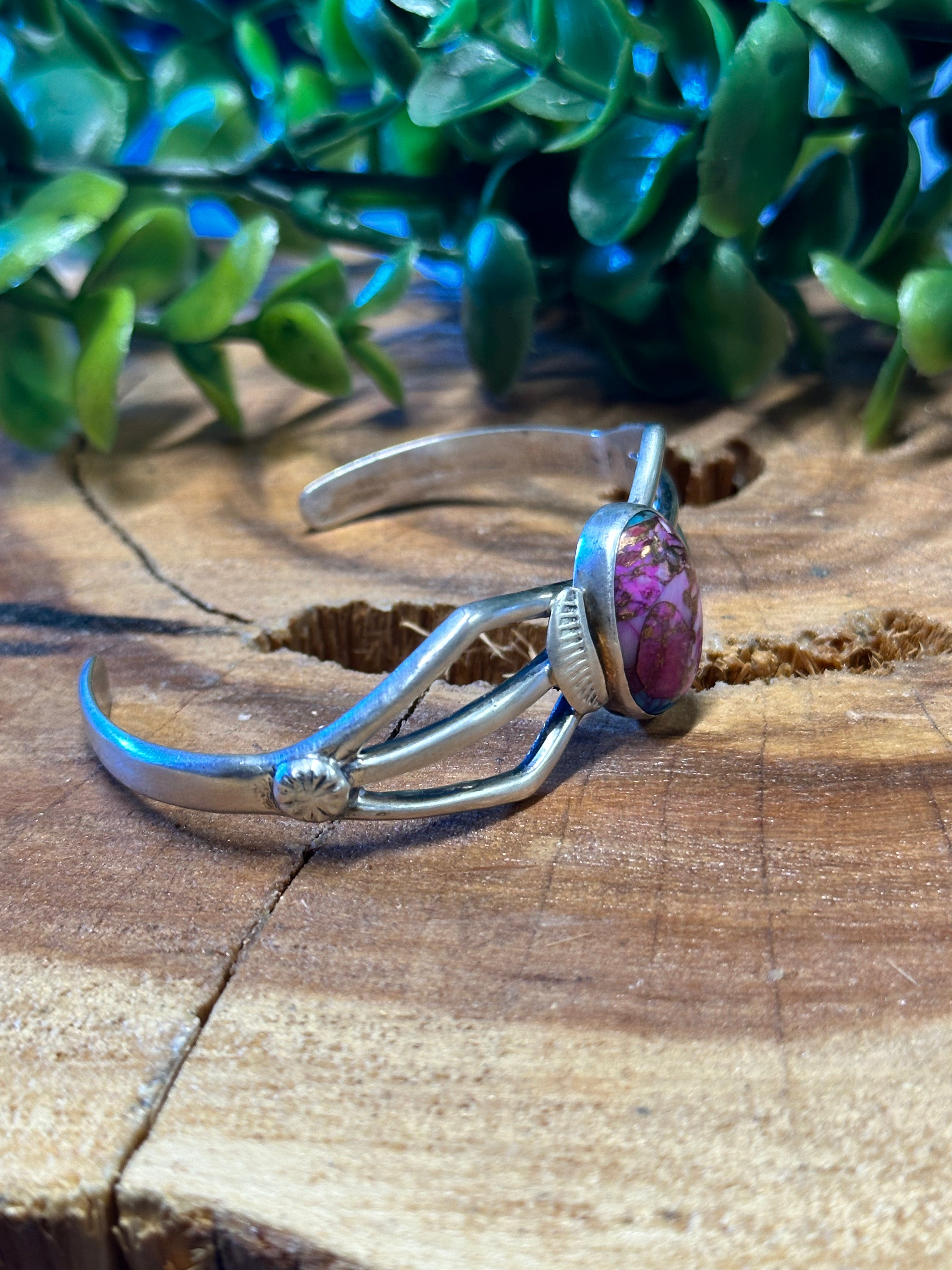 Navajo Made Pink Mohave & Sterling Silver Cuff Bracelet