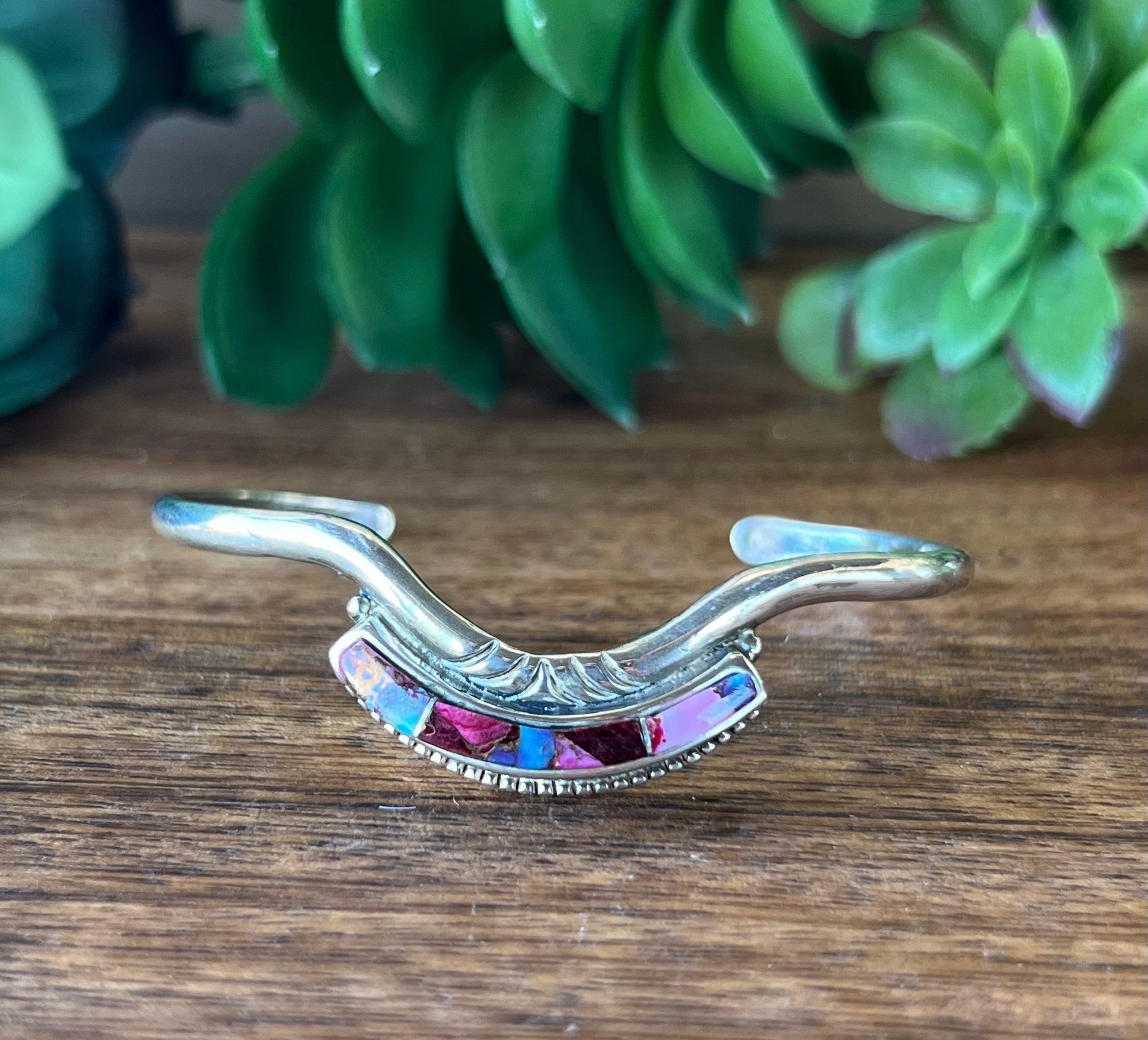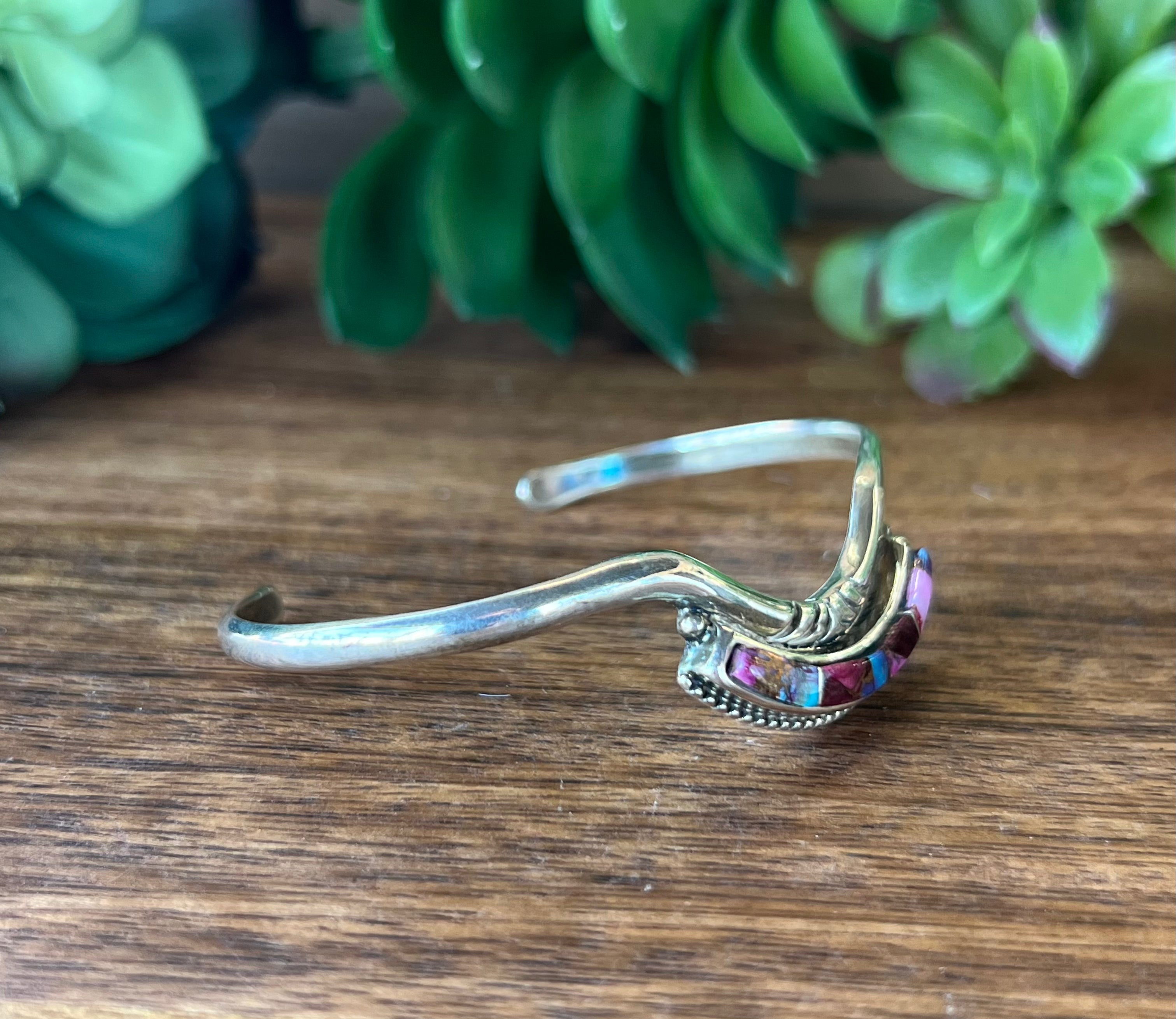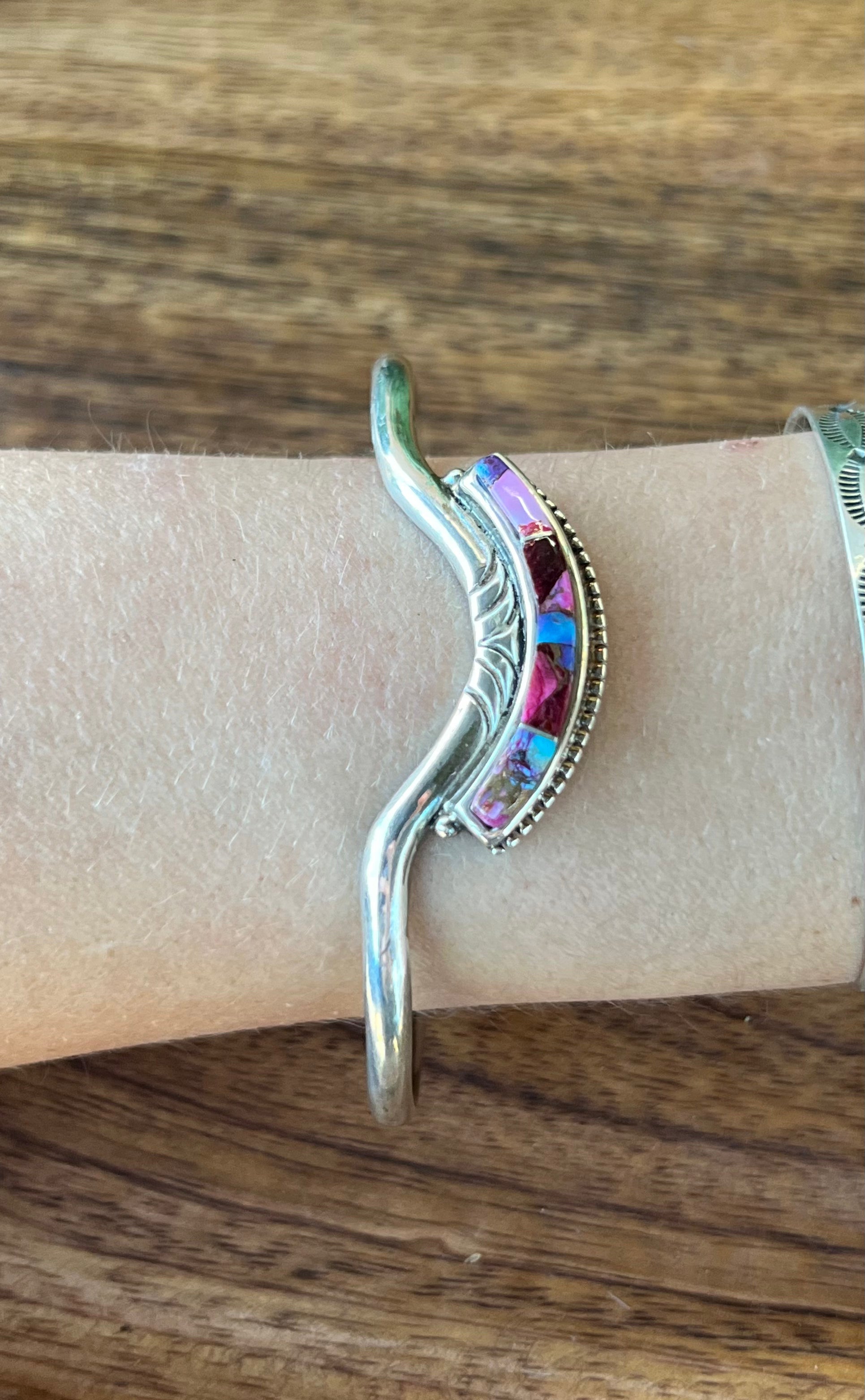 Navajo Made Pink Mohave Turquoise & Sterling Silver Cuff Bracelet