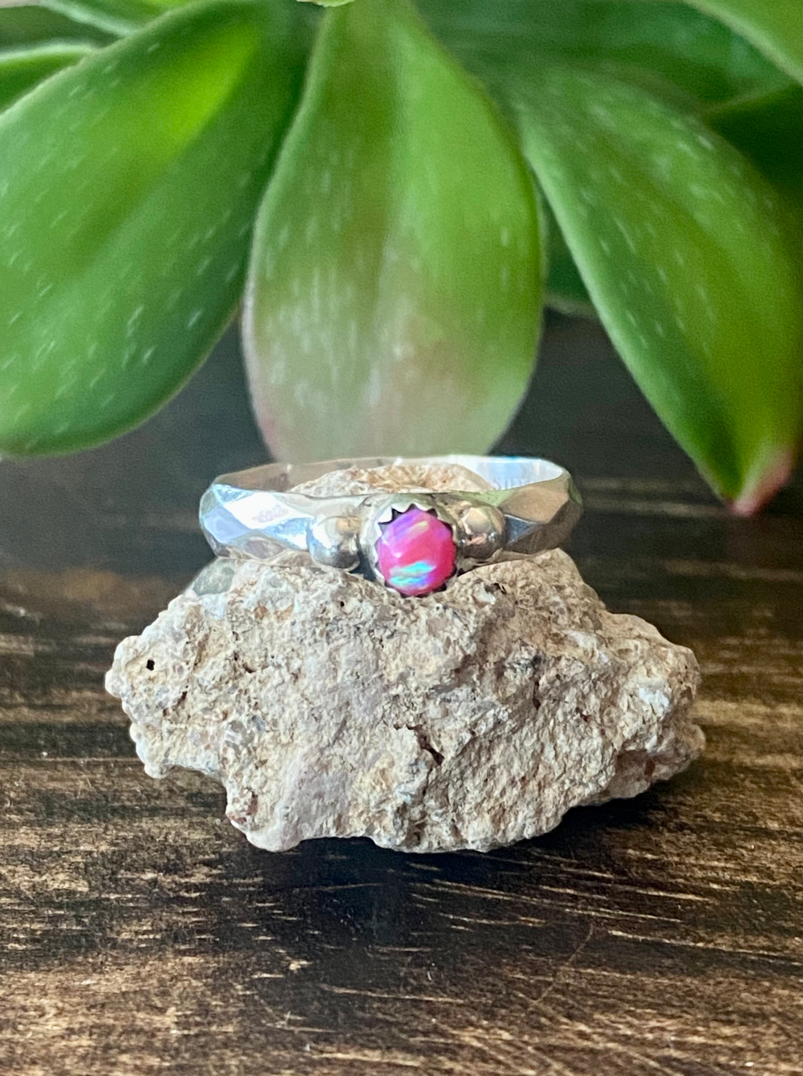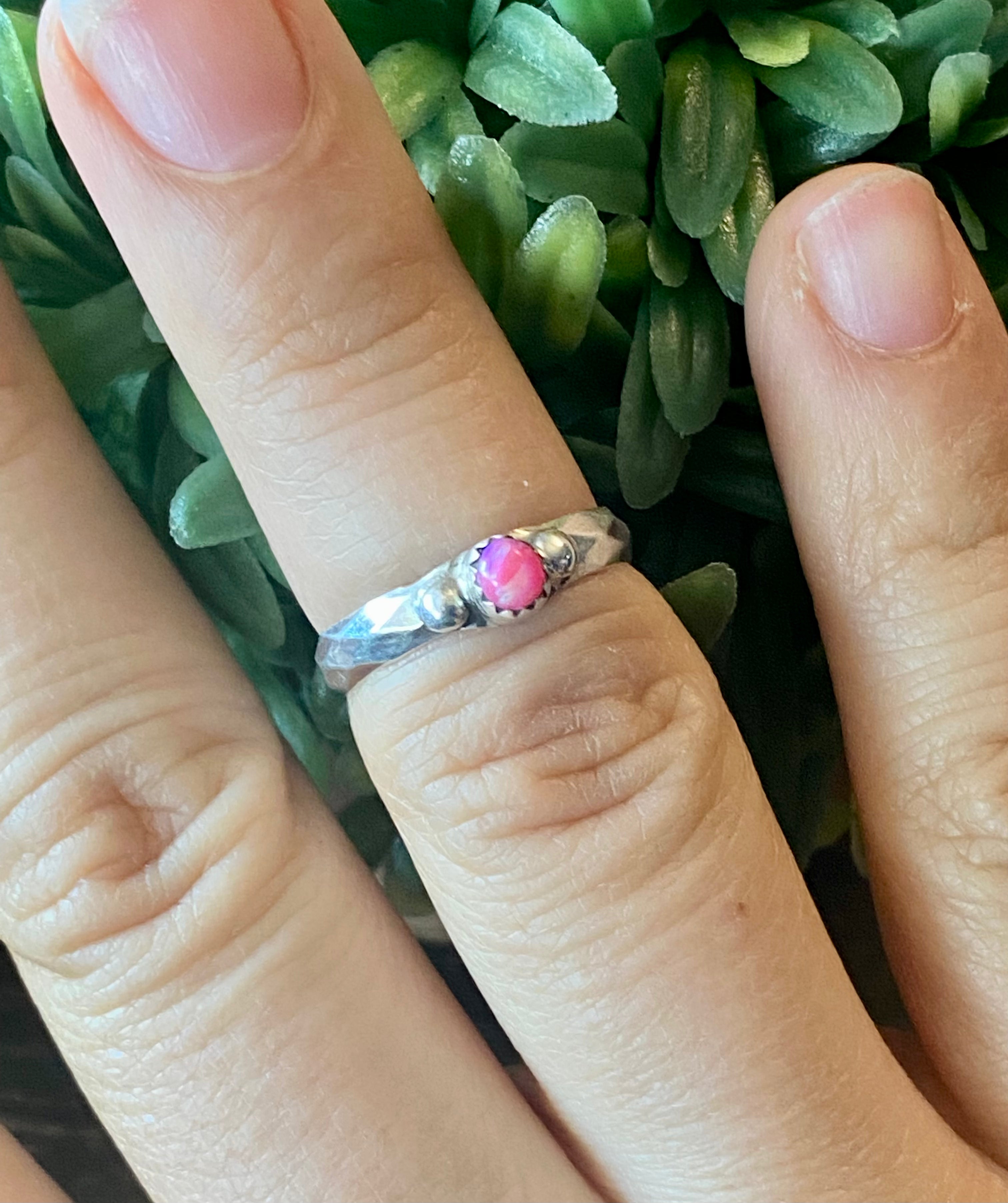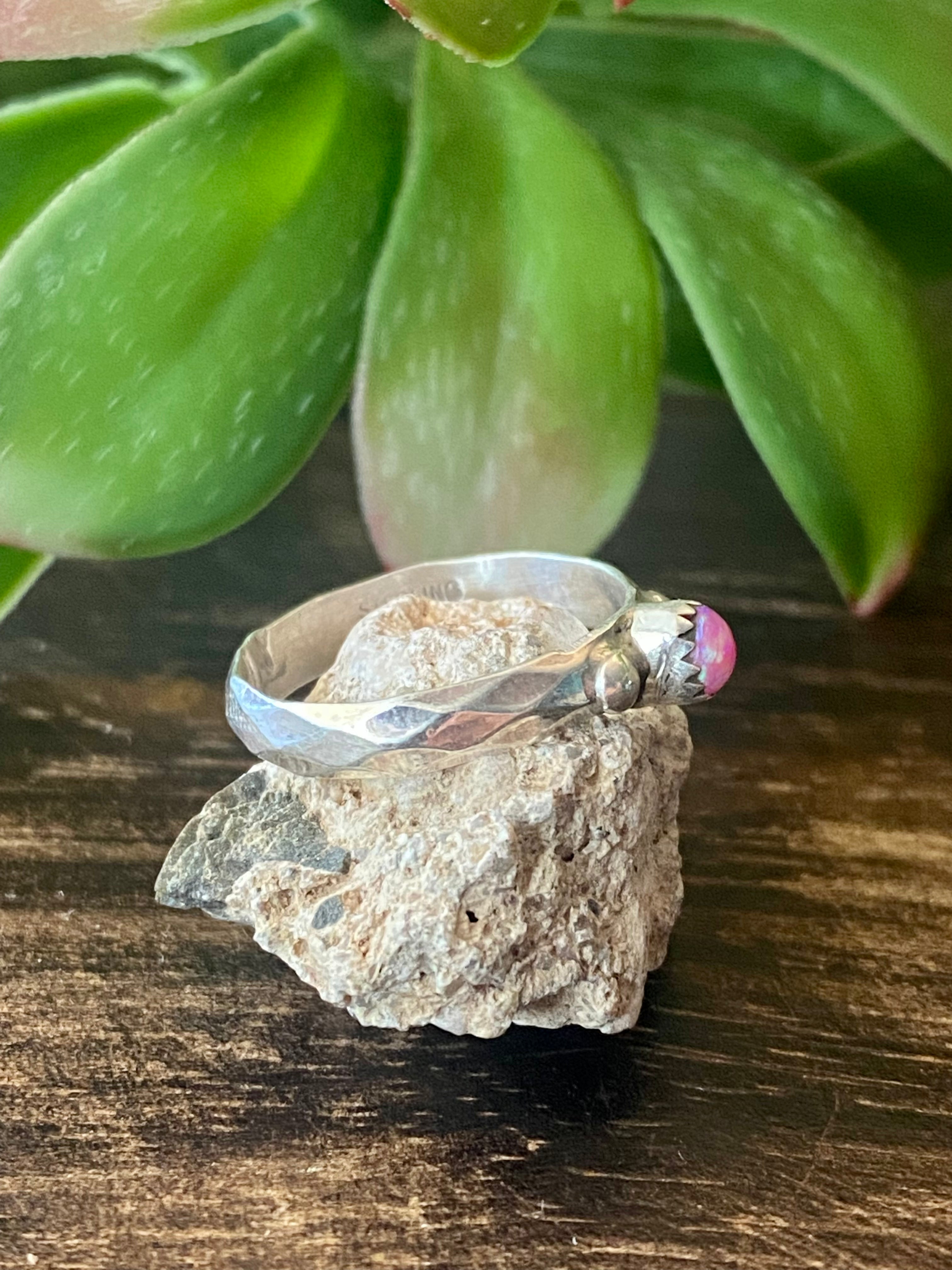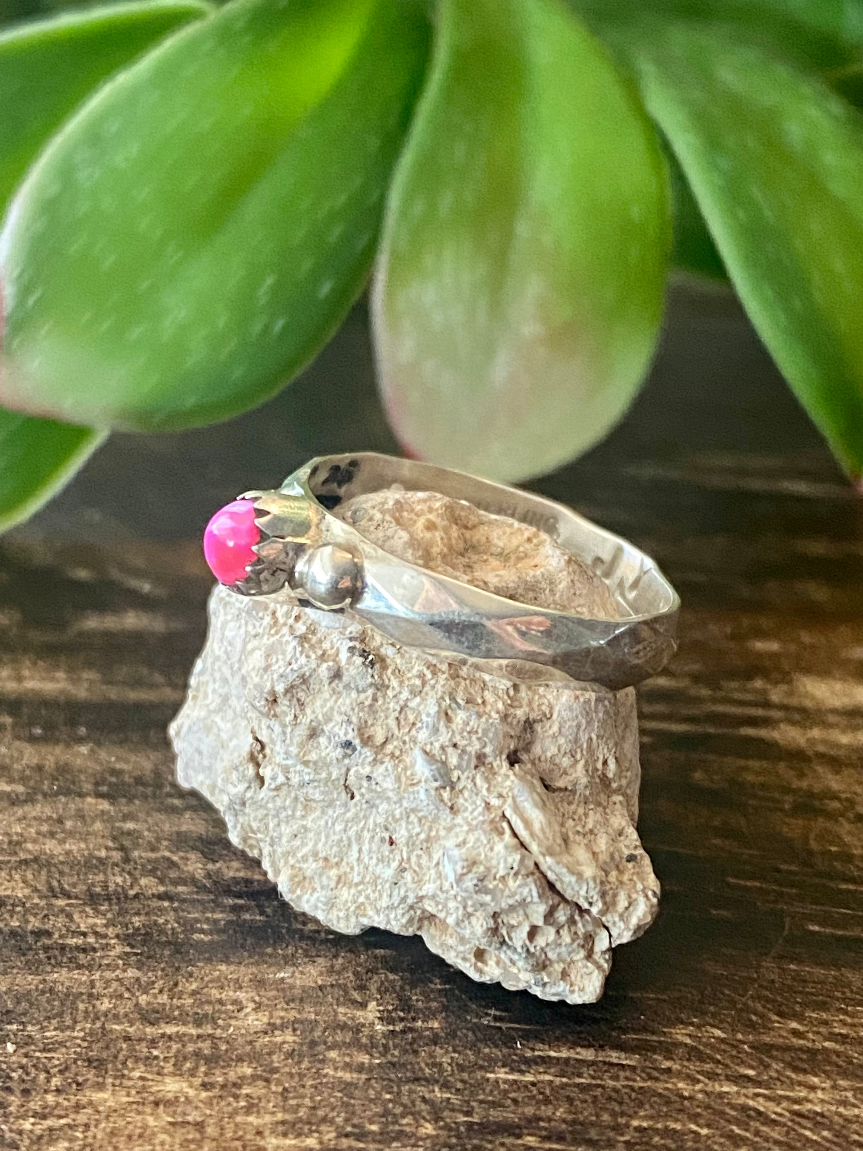 Navajo Made Pink Opal & Sterling Silver Ring Size 6.25
