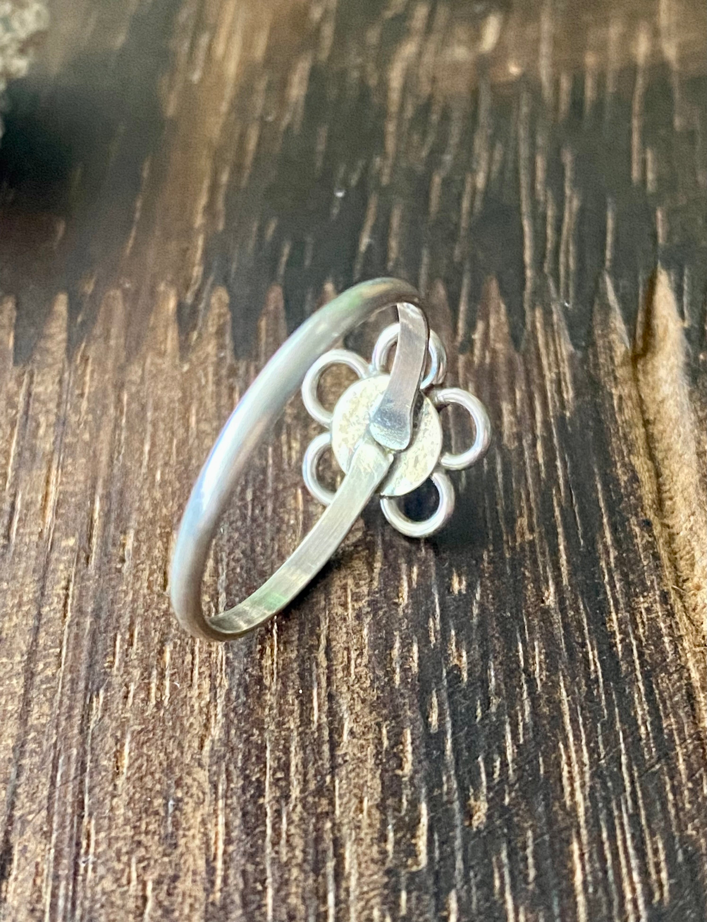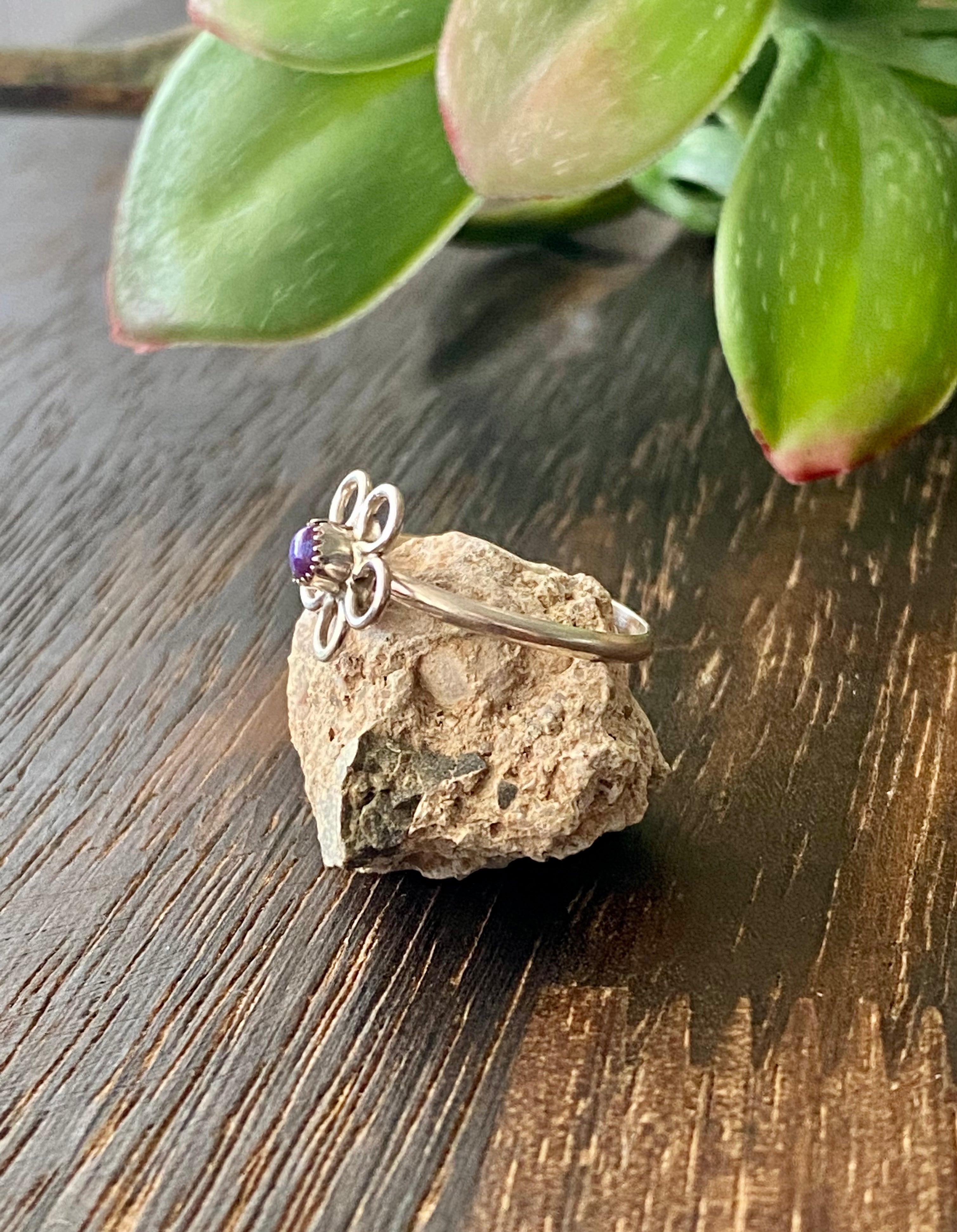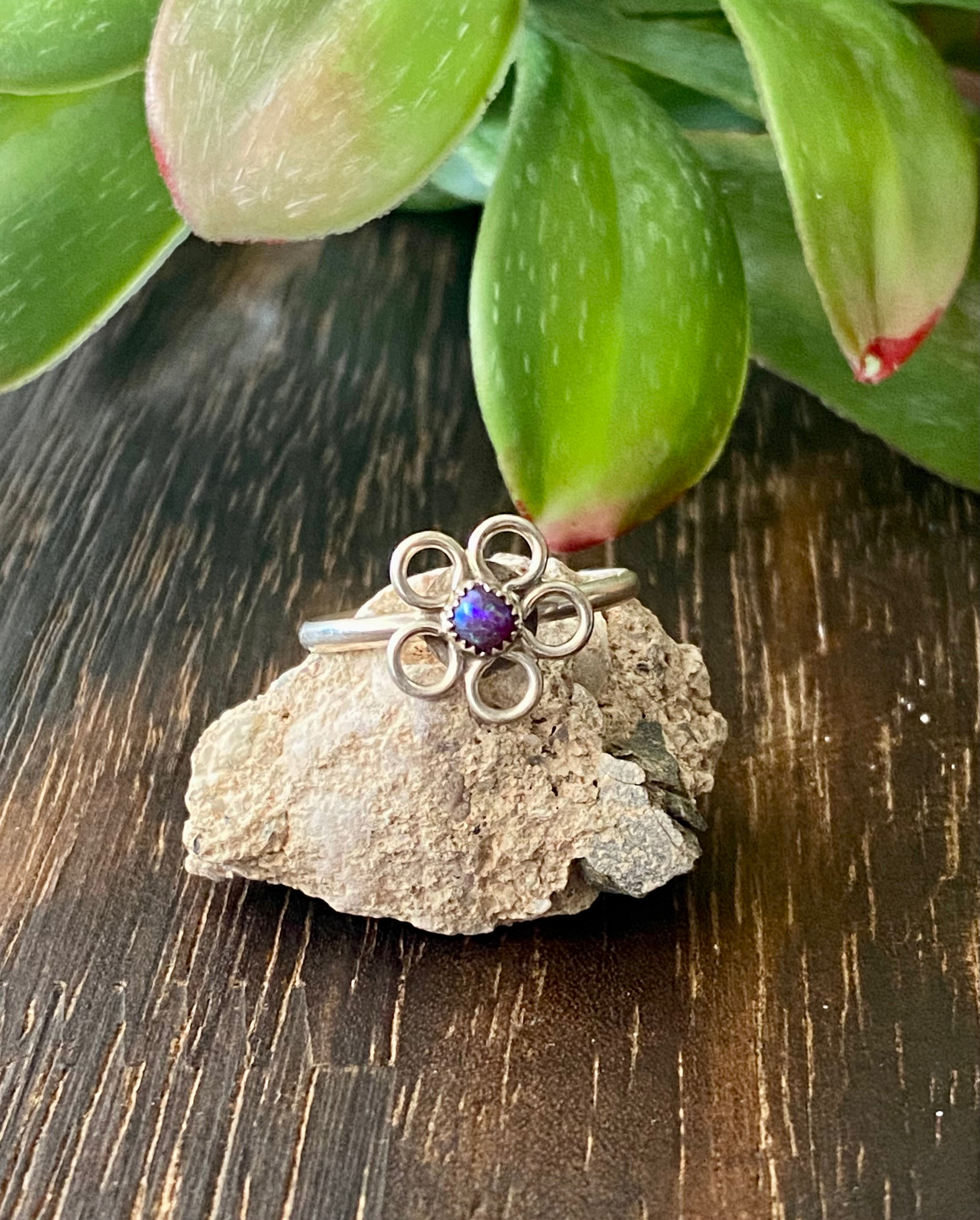Navajo Made Purple Opal & Sterling Silver Flower Ring Size 6.25