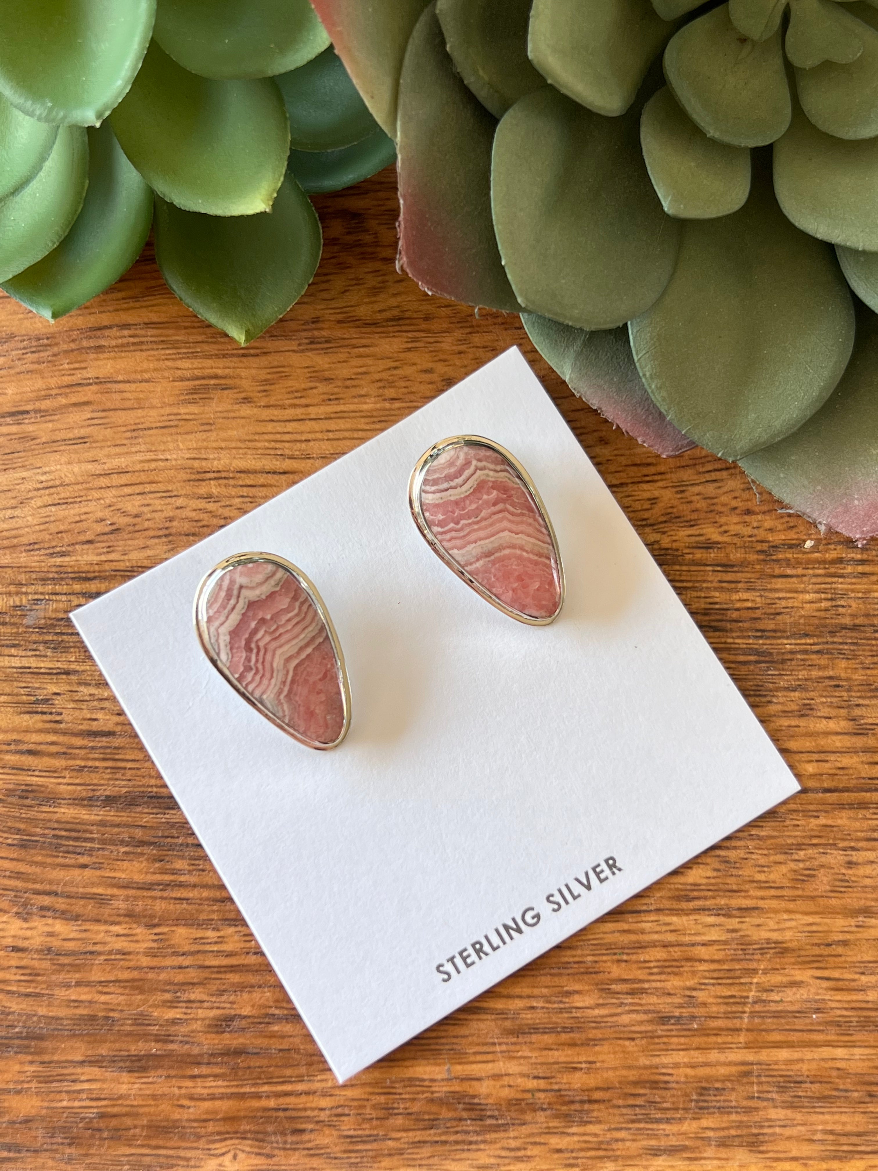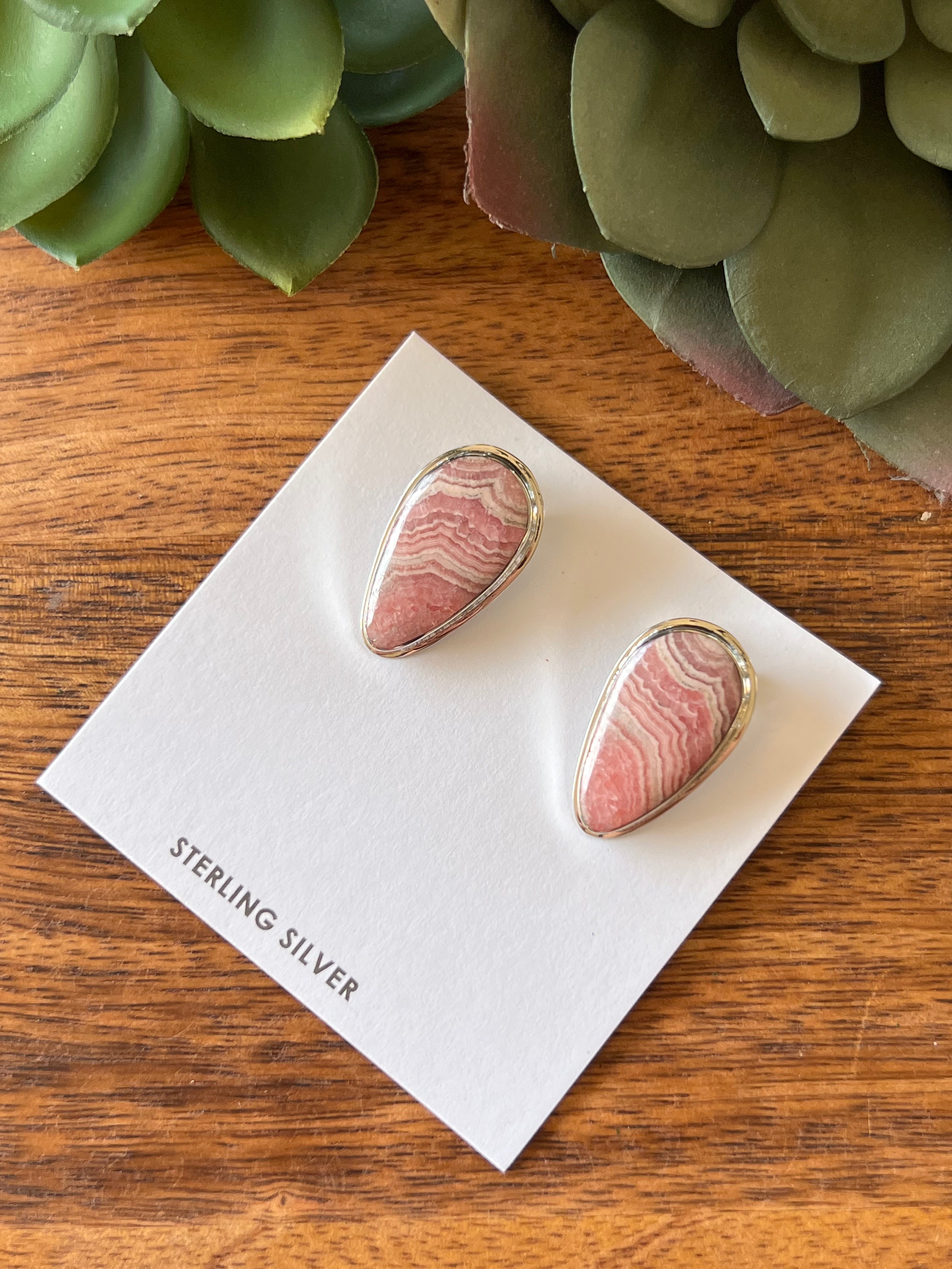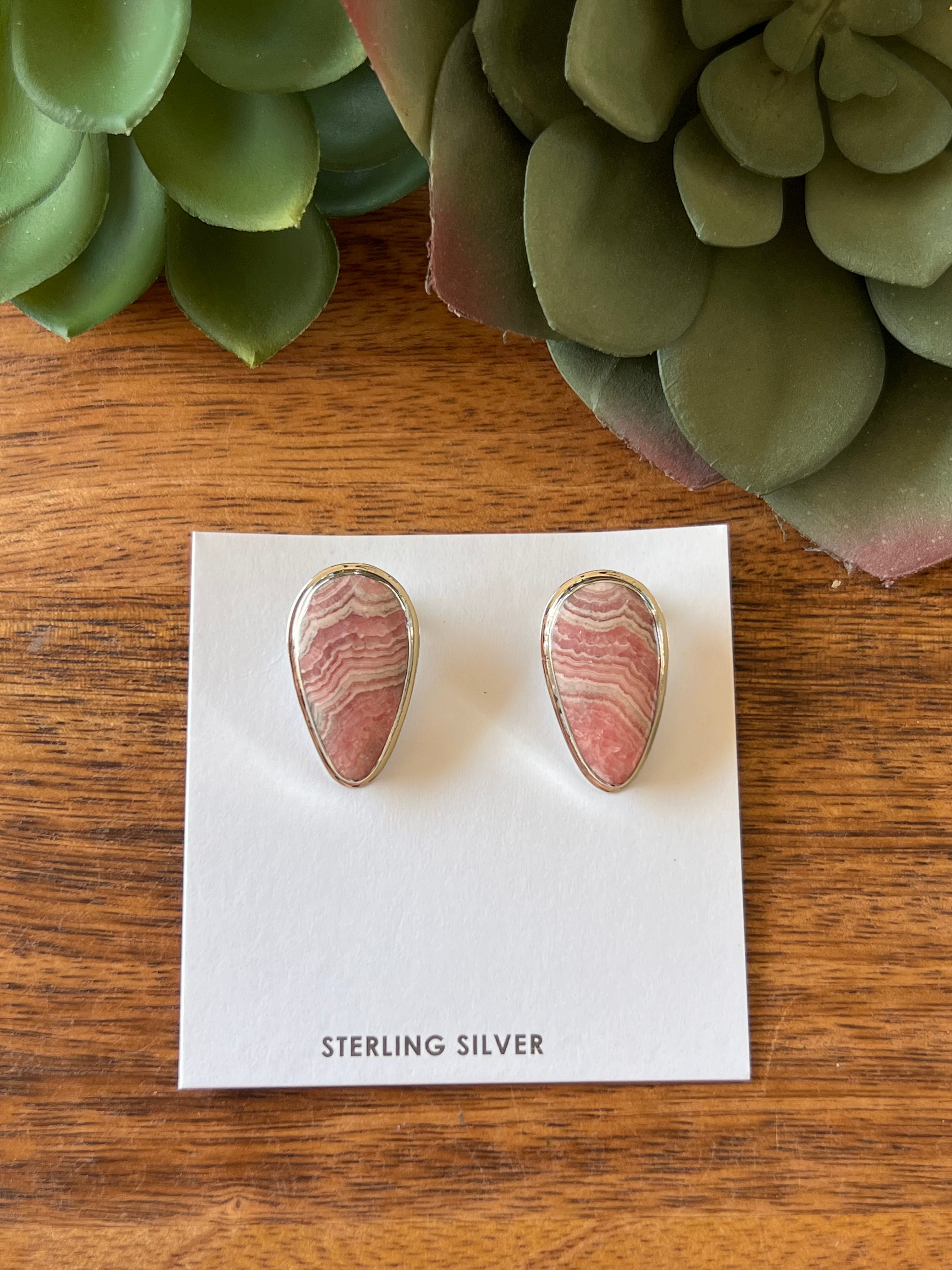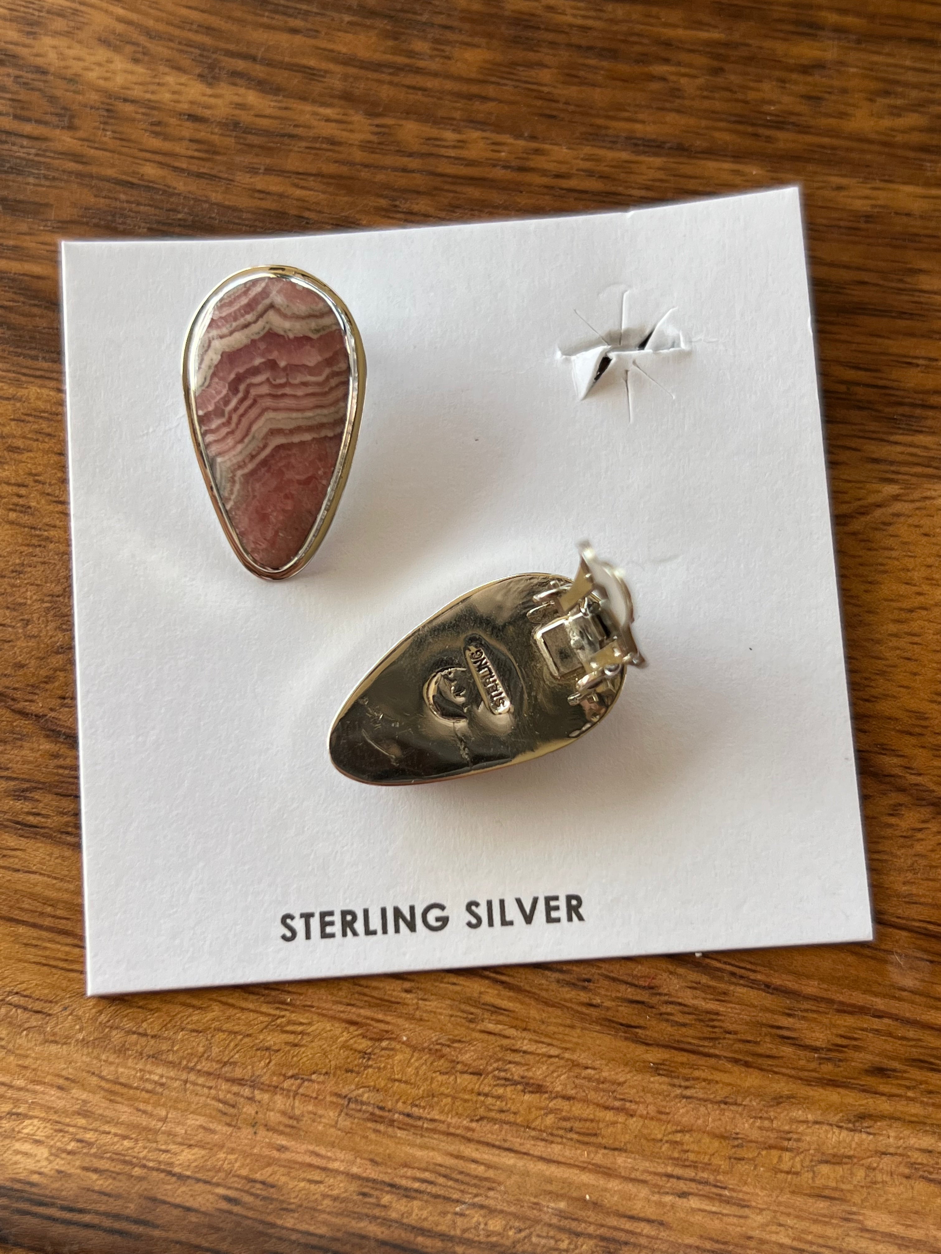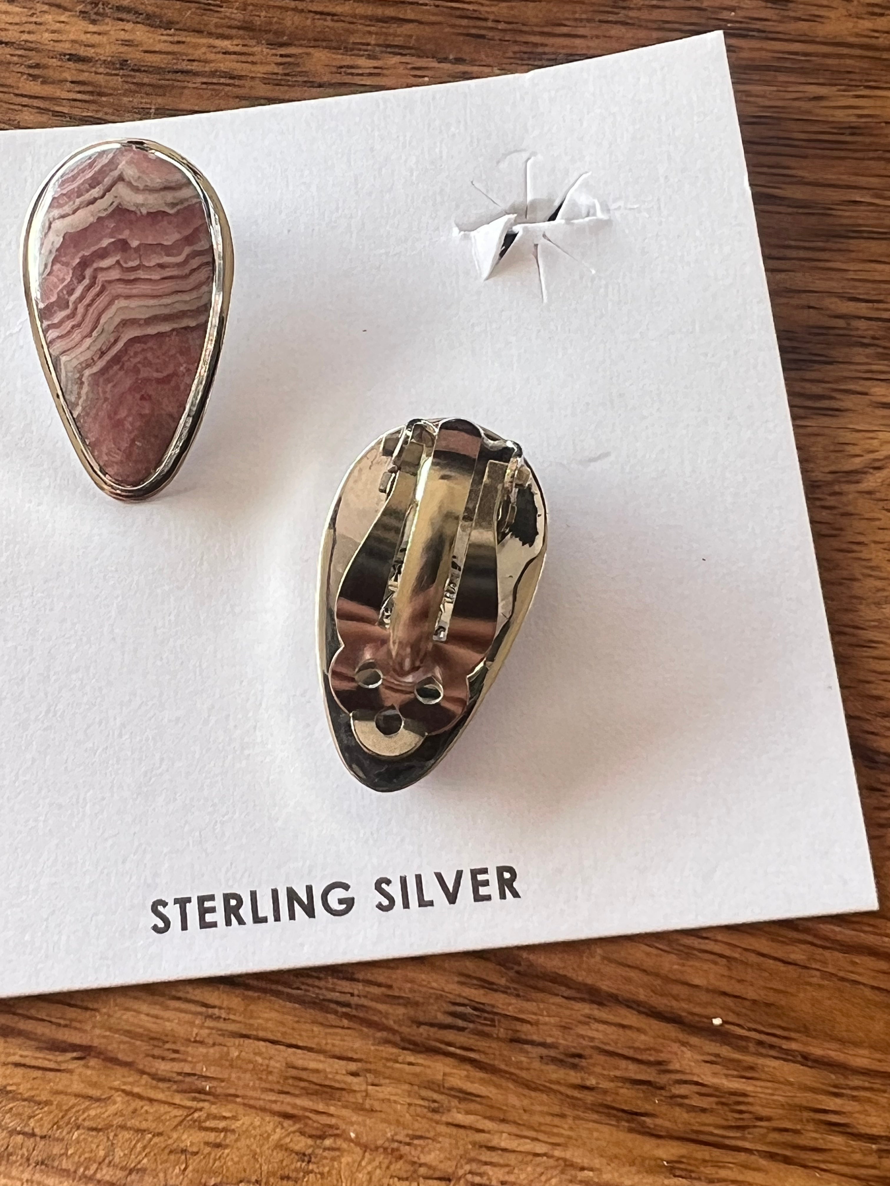 Navajo Made Rhodochrosite & Sterling Silver Clip On Earrings