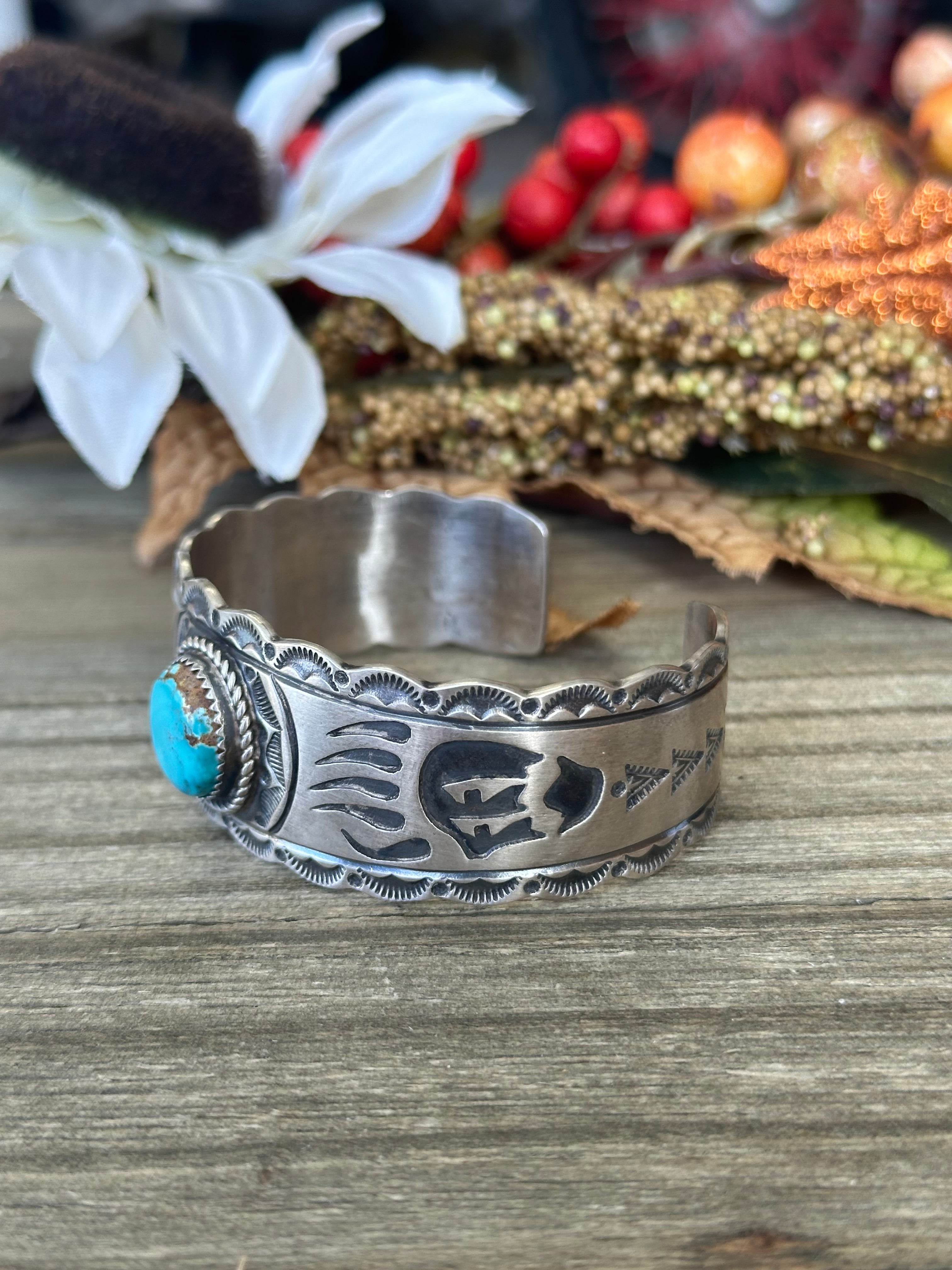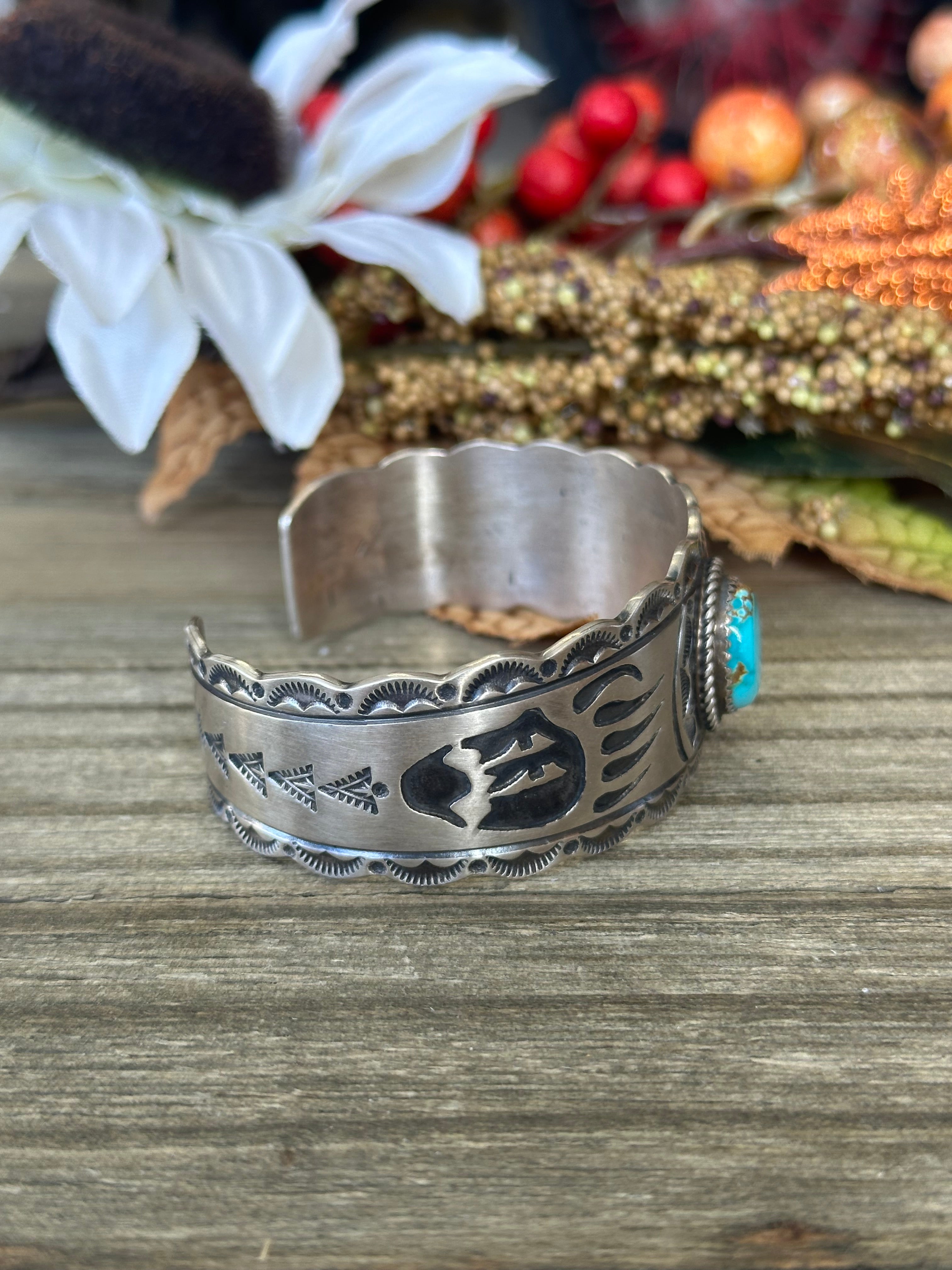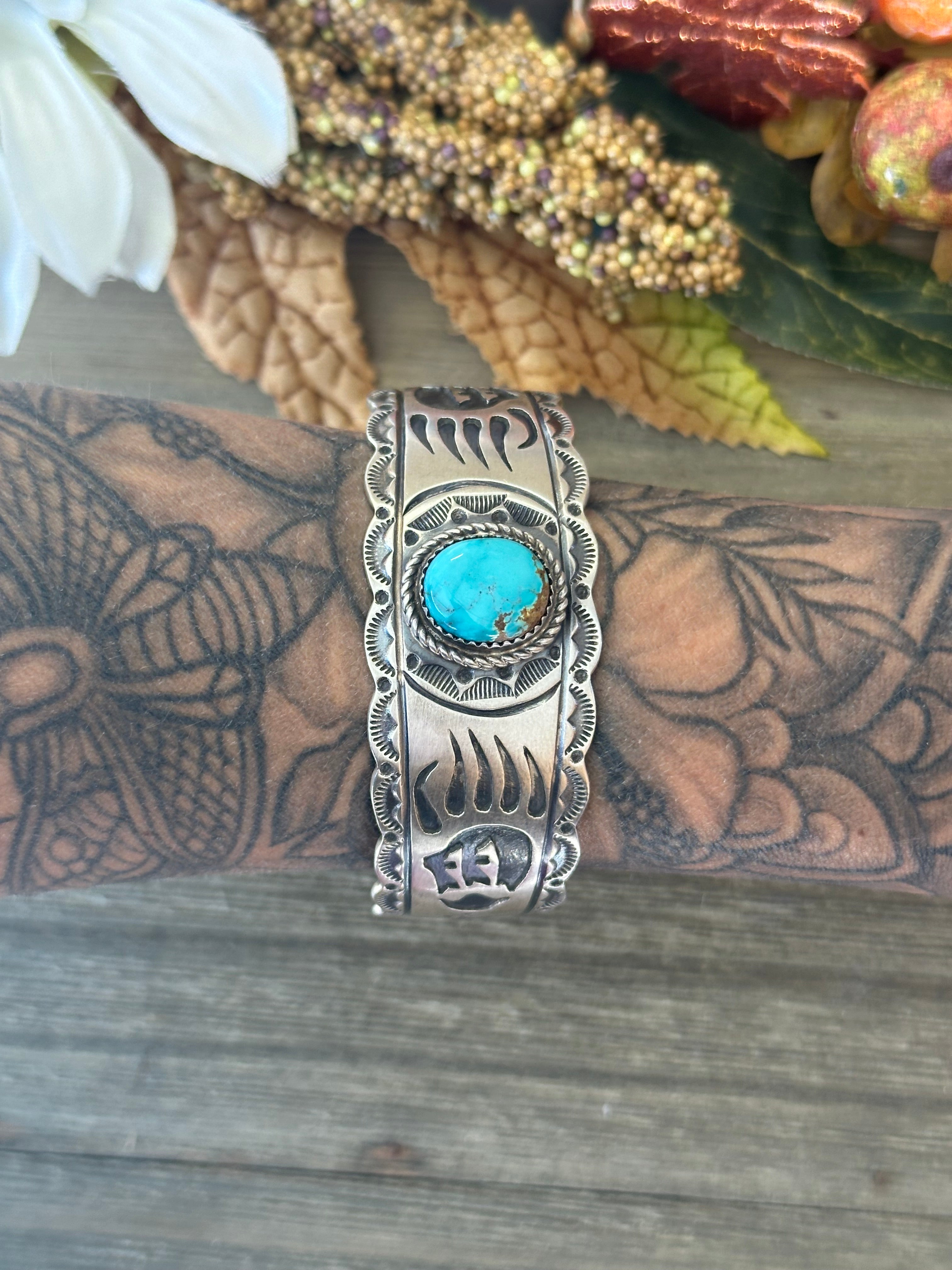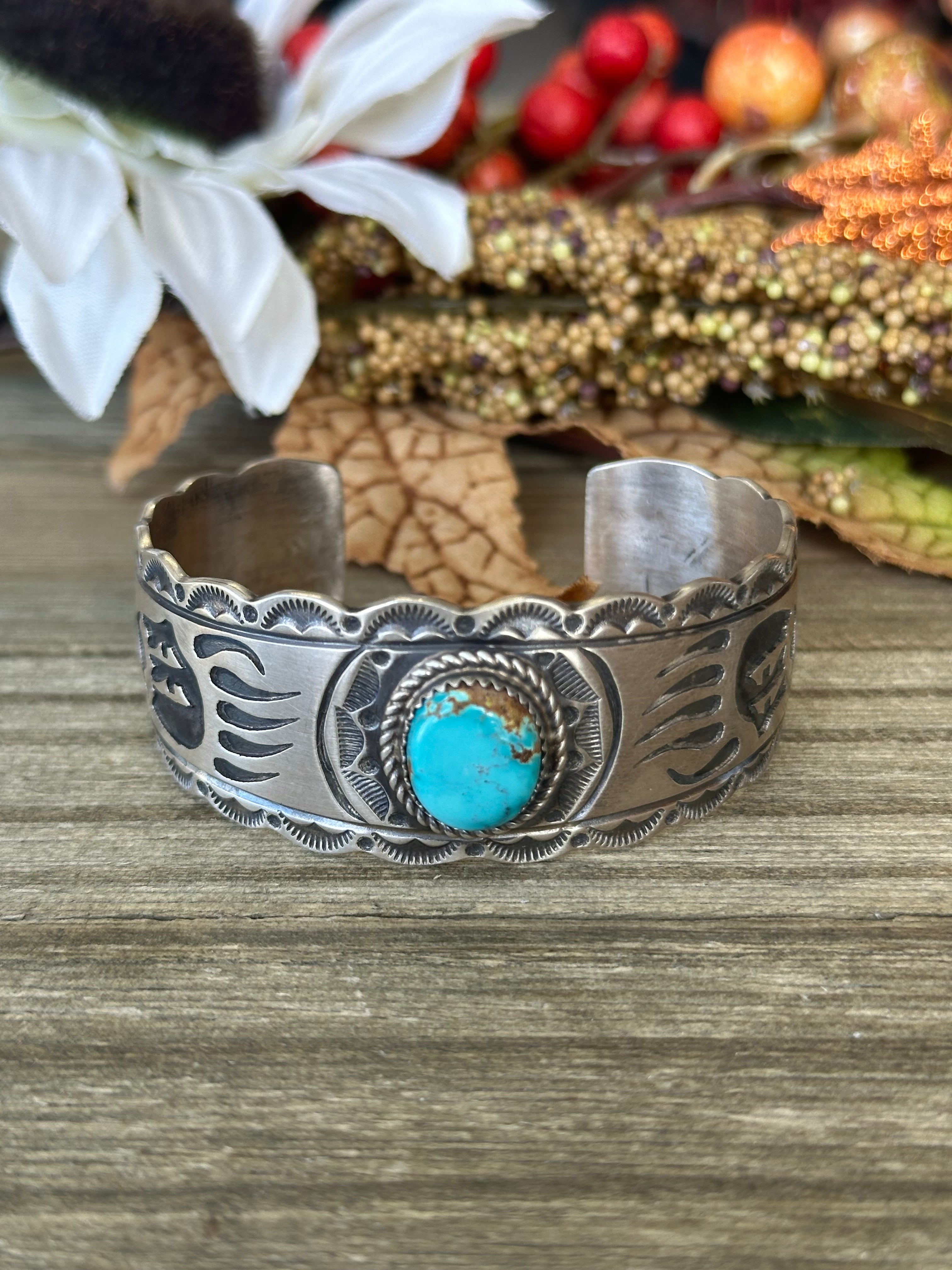 Navajo Made Royston Turquoise & Sterling Silver Cuff Bracelet