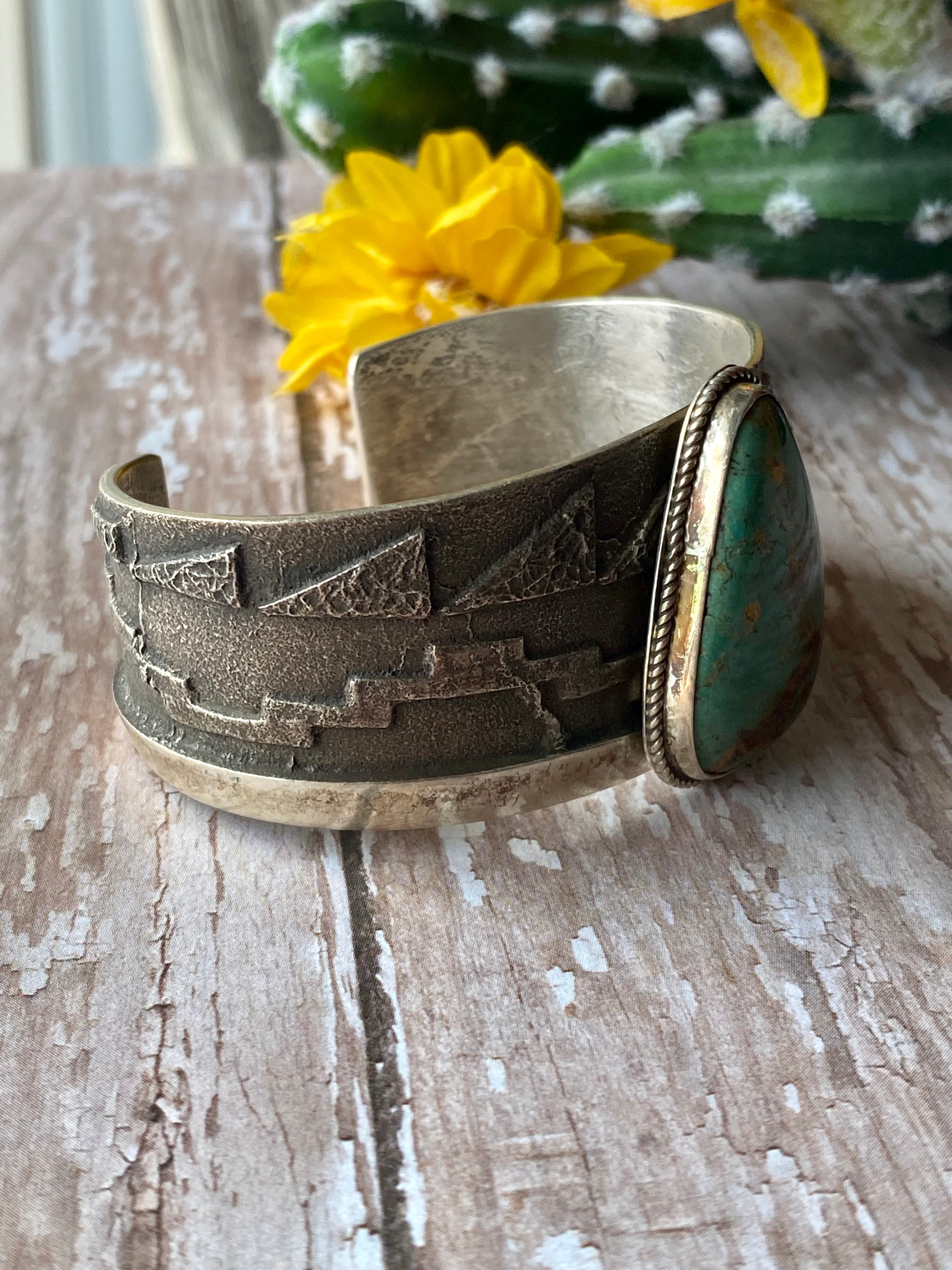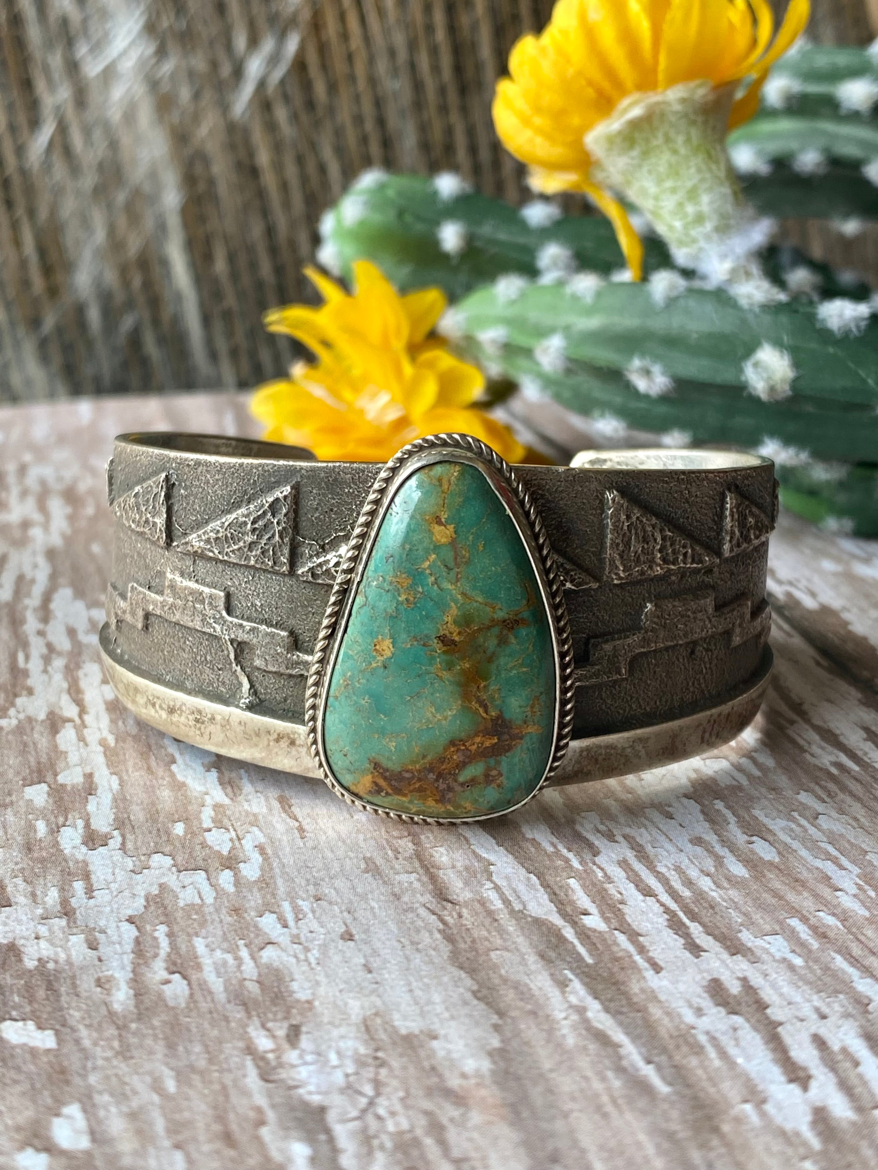 Vintage Navajo Made Royston Turquoise & Sterling Silver Cuff Bracelet