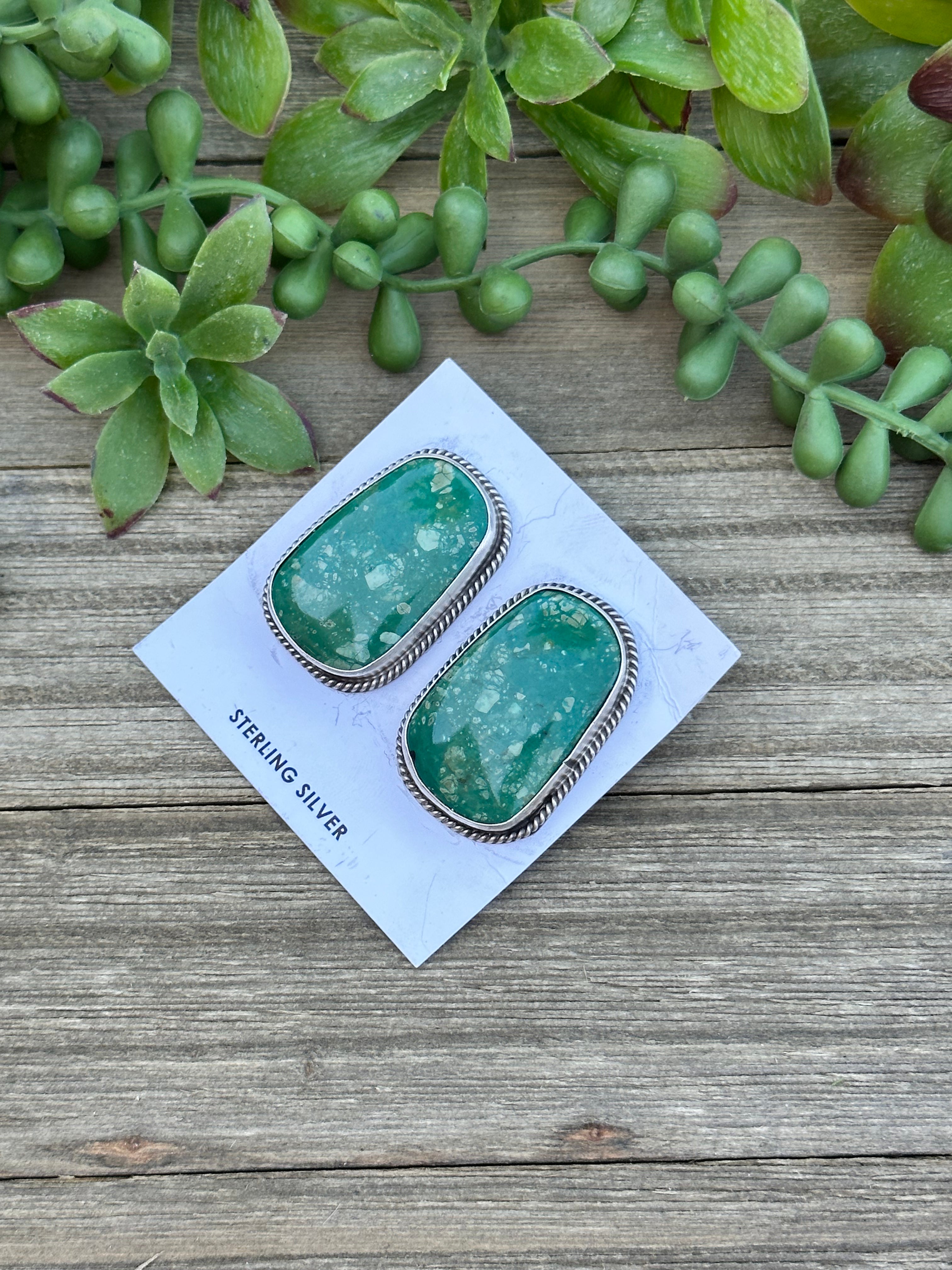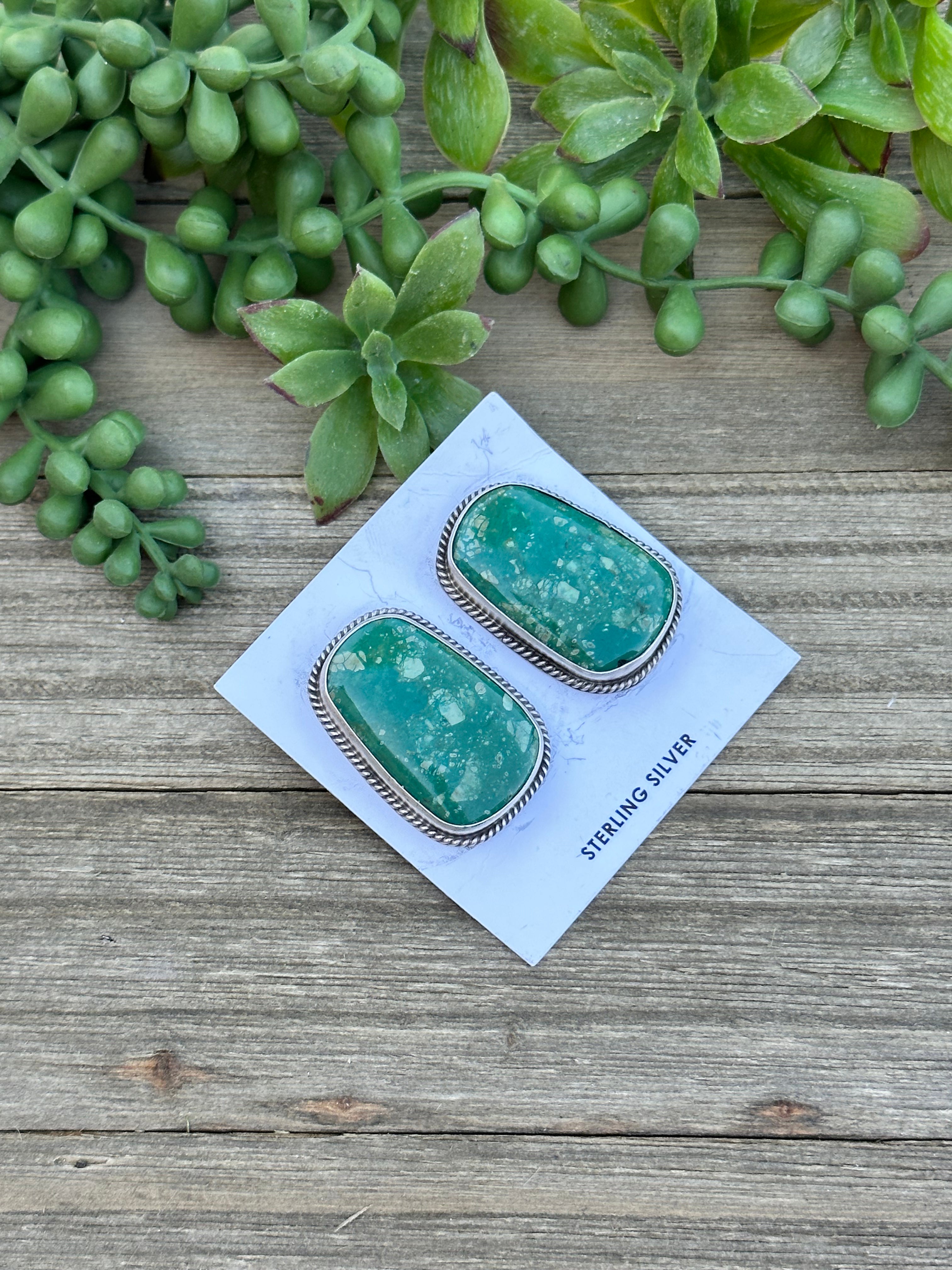 Navajo Made Royston Turquoise & Sterling Silver Post Earrings