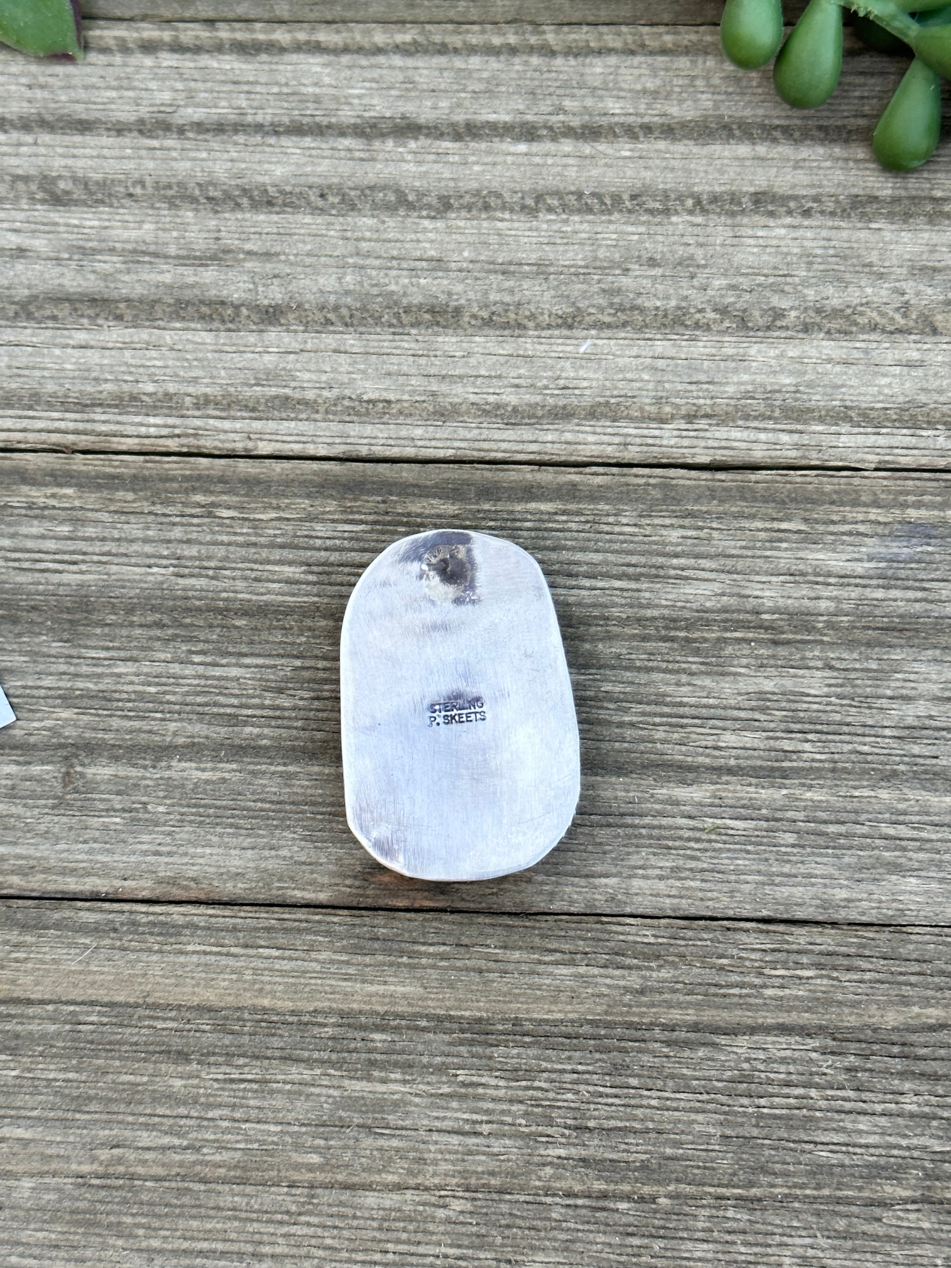 Navajo Made Royston Turquoise & Sterling Silver Post Earrings. It measures 1 3/8 inches long and 1 inch wide. Stamped sterling silver.