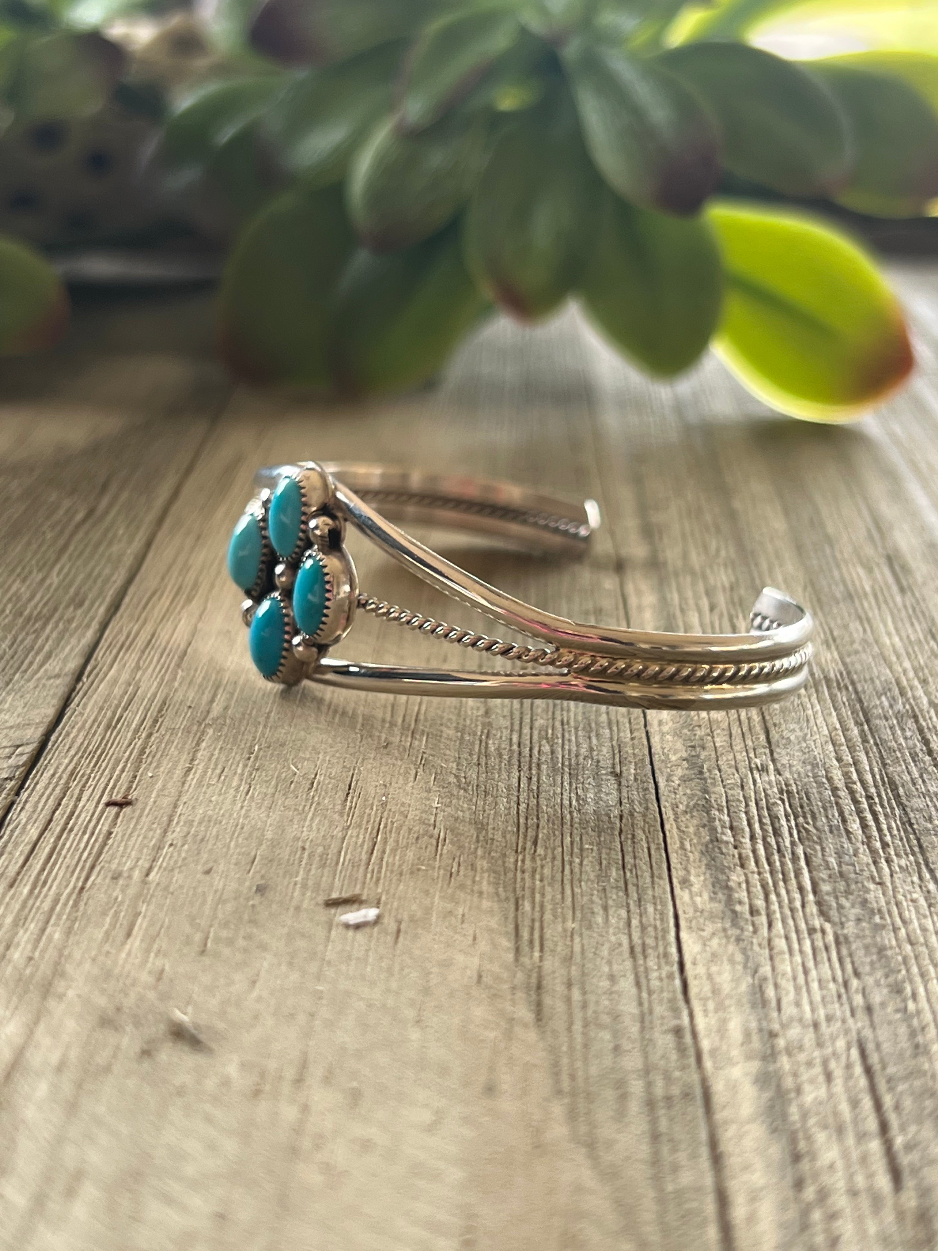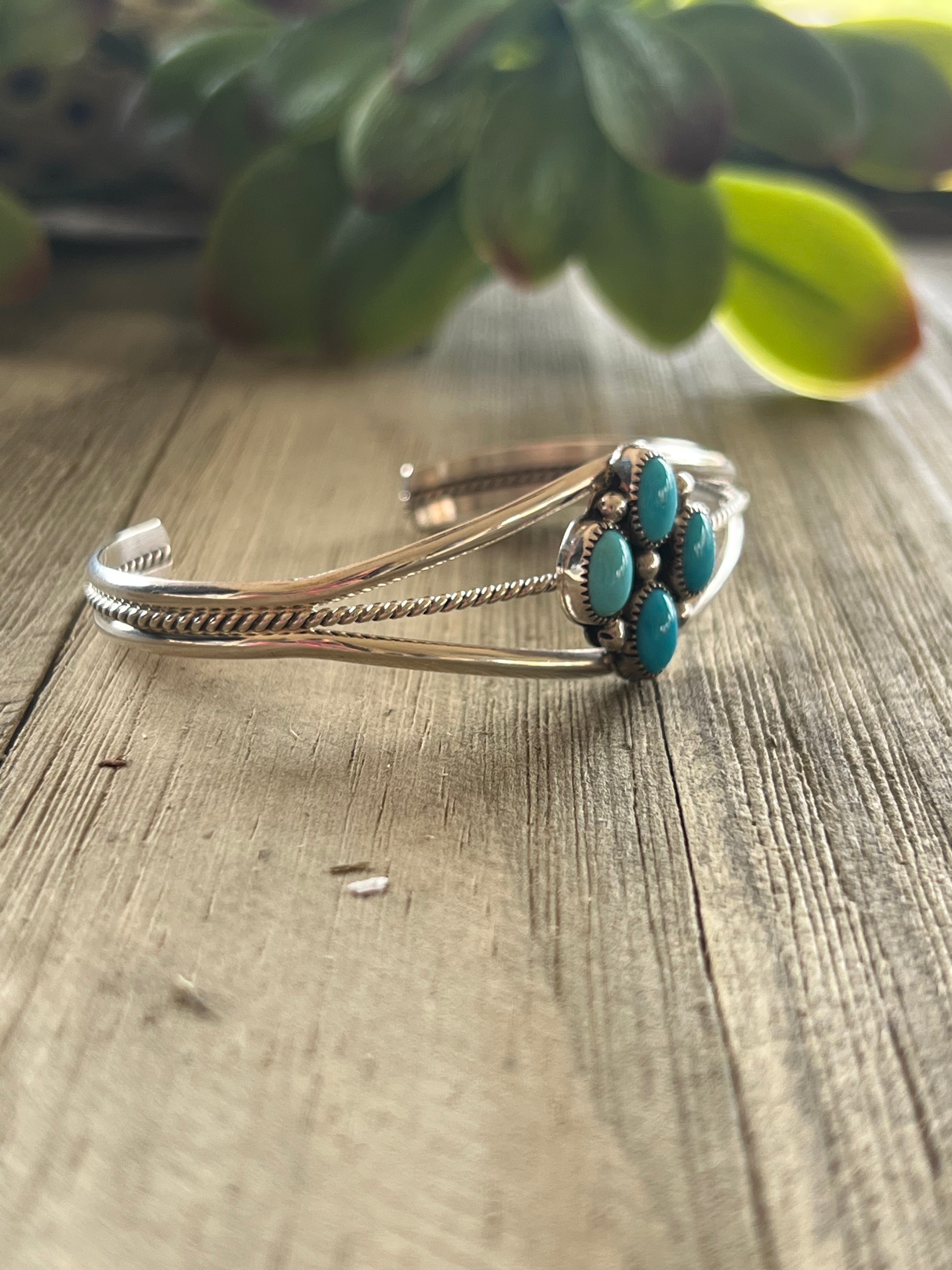 Navajo Made Sleeping Beauty & Sterling Silver Cuff Bracelet