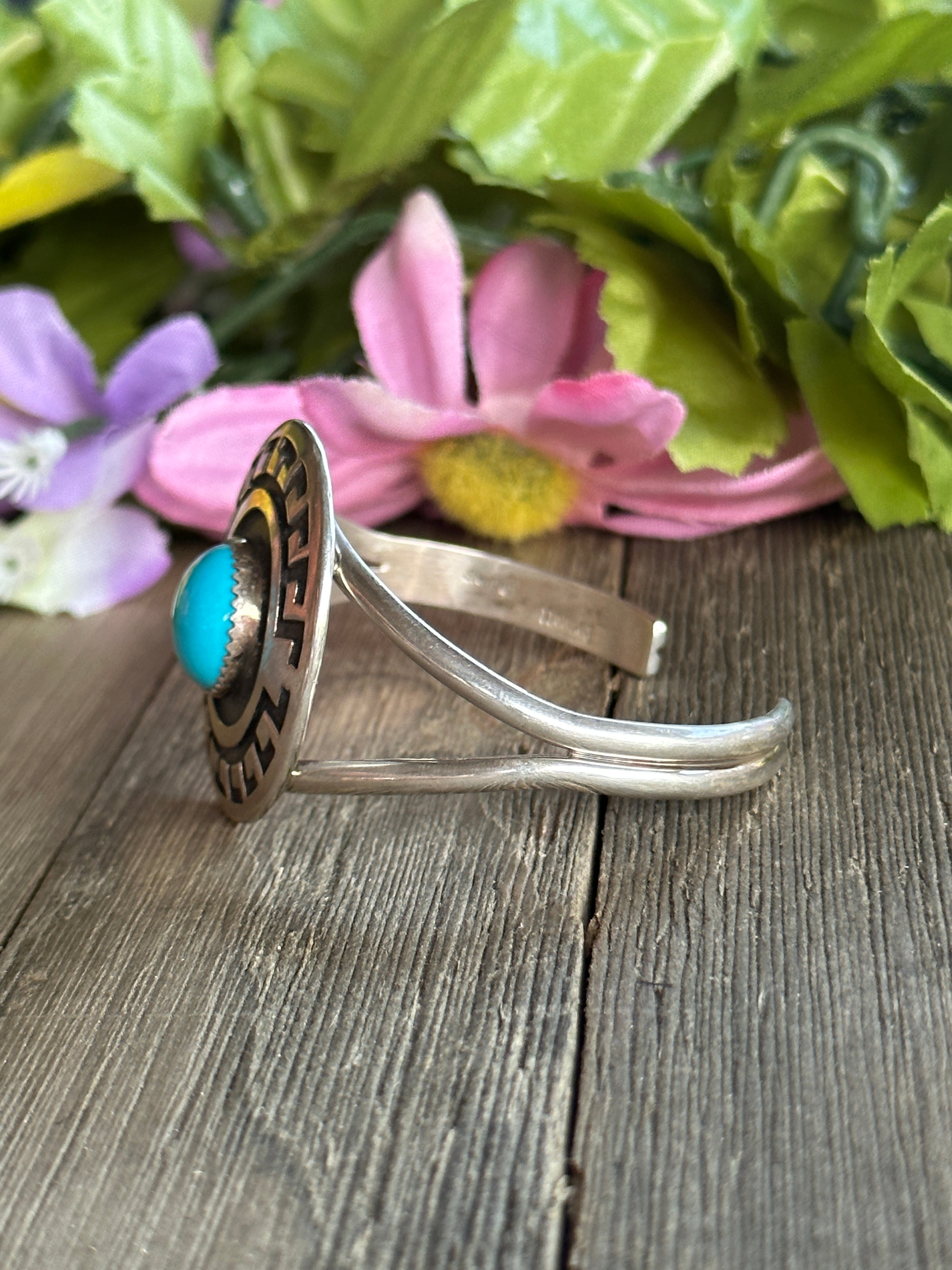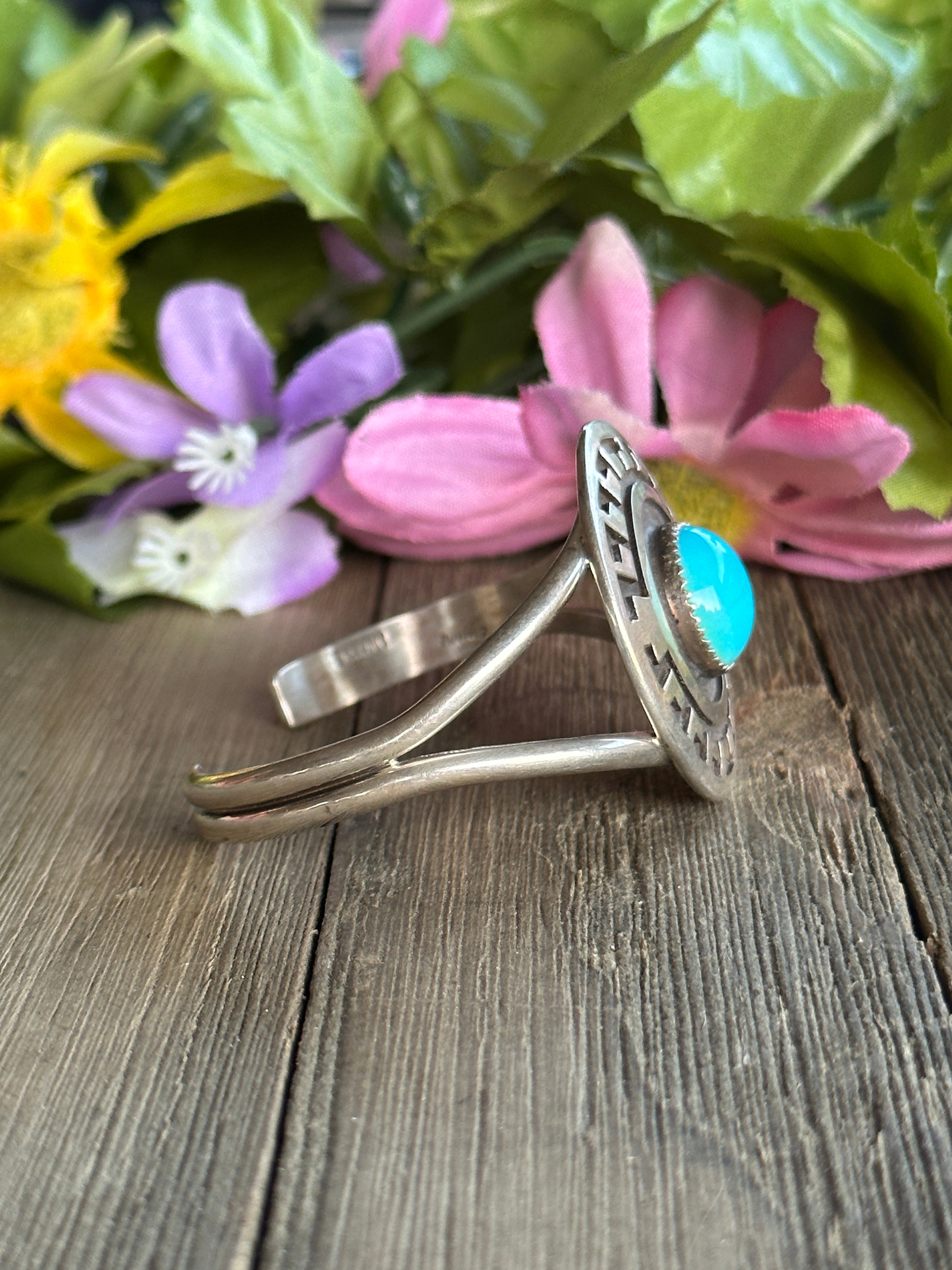 Navajo Made Sleeping Beauty Turquoise and Sterling Silver Cuff Bracelet