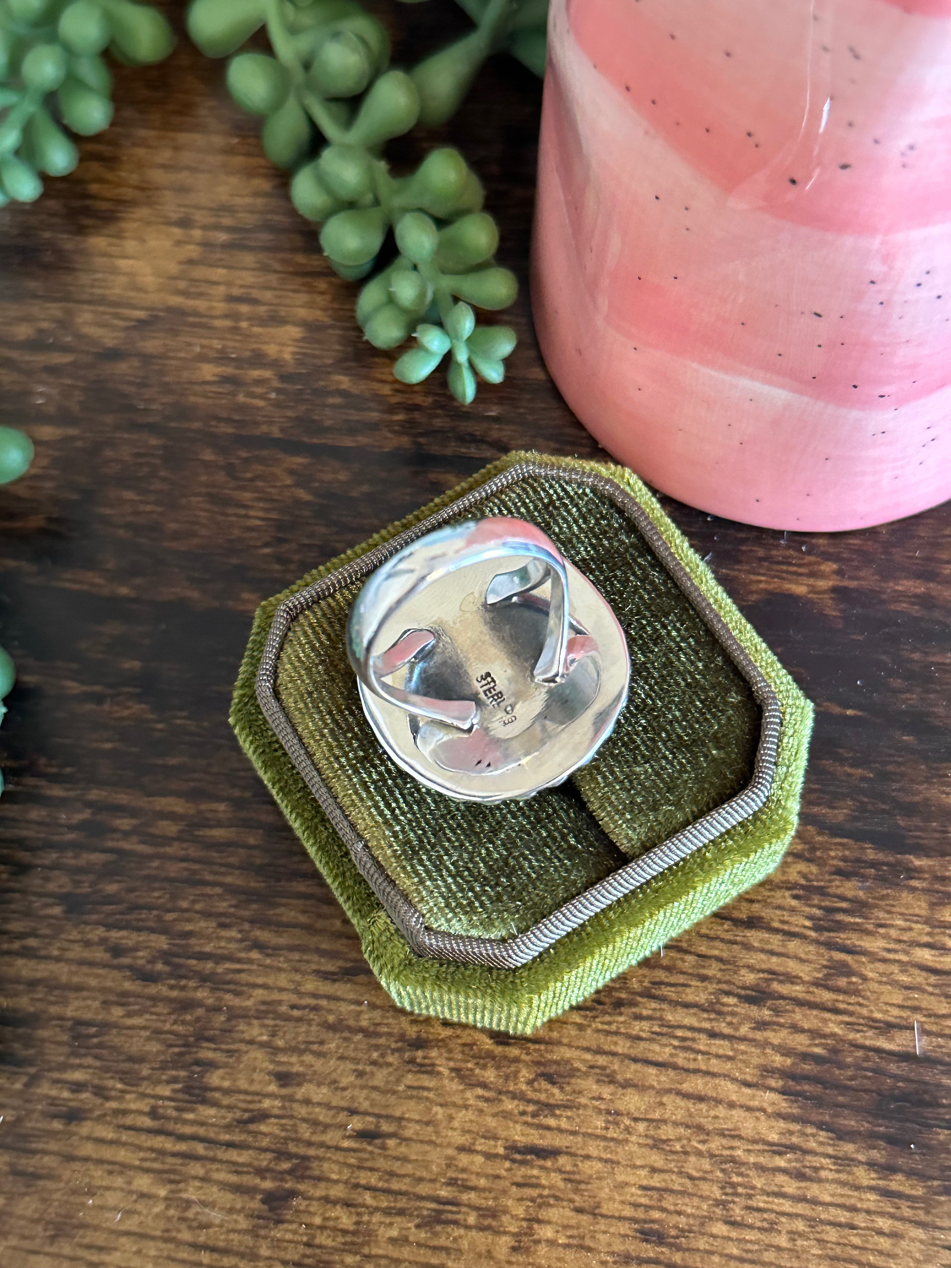 Navajo Made Sonoran Mountain Turquoise & Sterling Silver Ring Size 10.5
