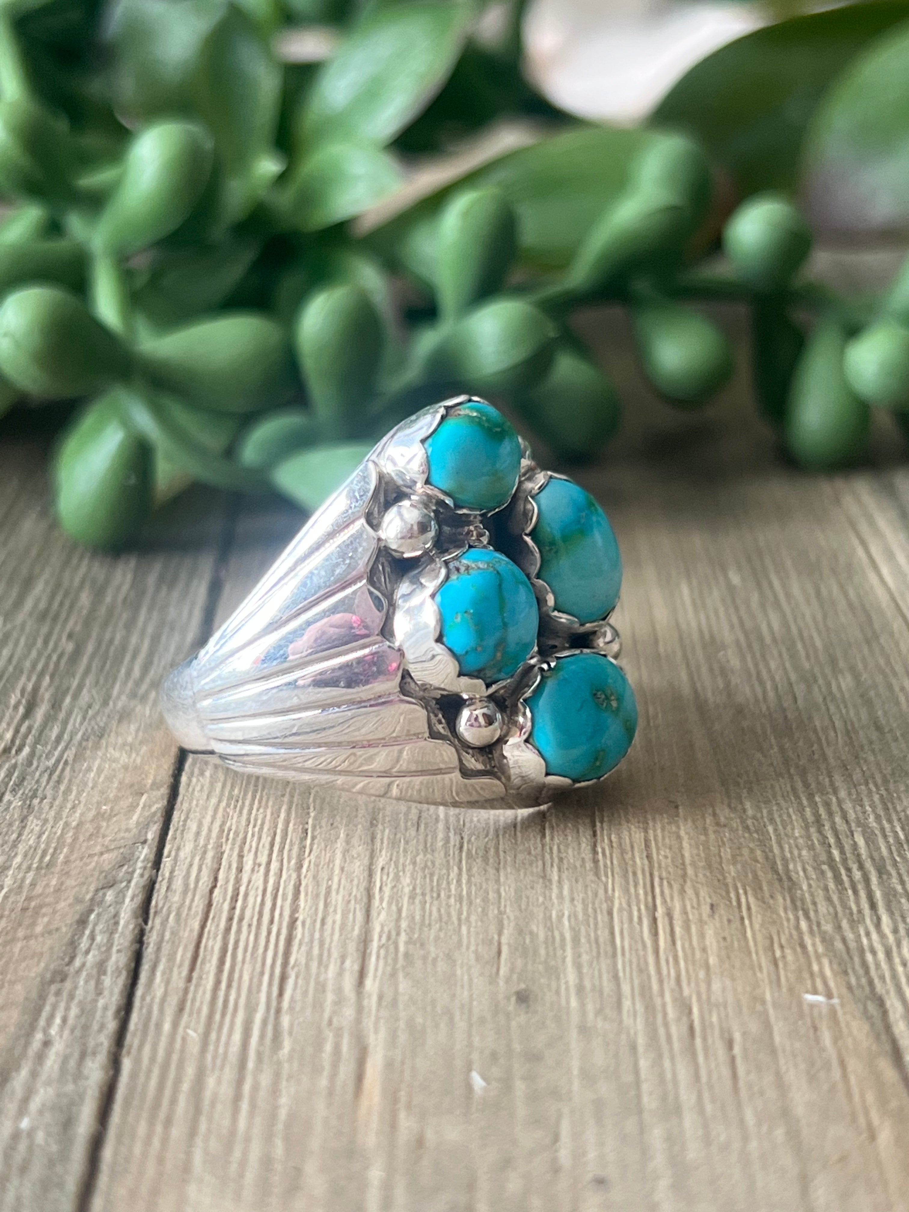 Navajo Made Sonoran Mountain Turquoise & Sterling Silver Ring Size 12