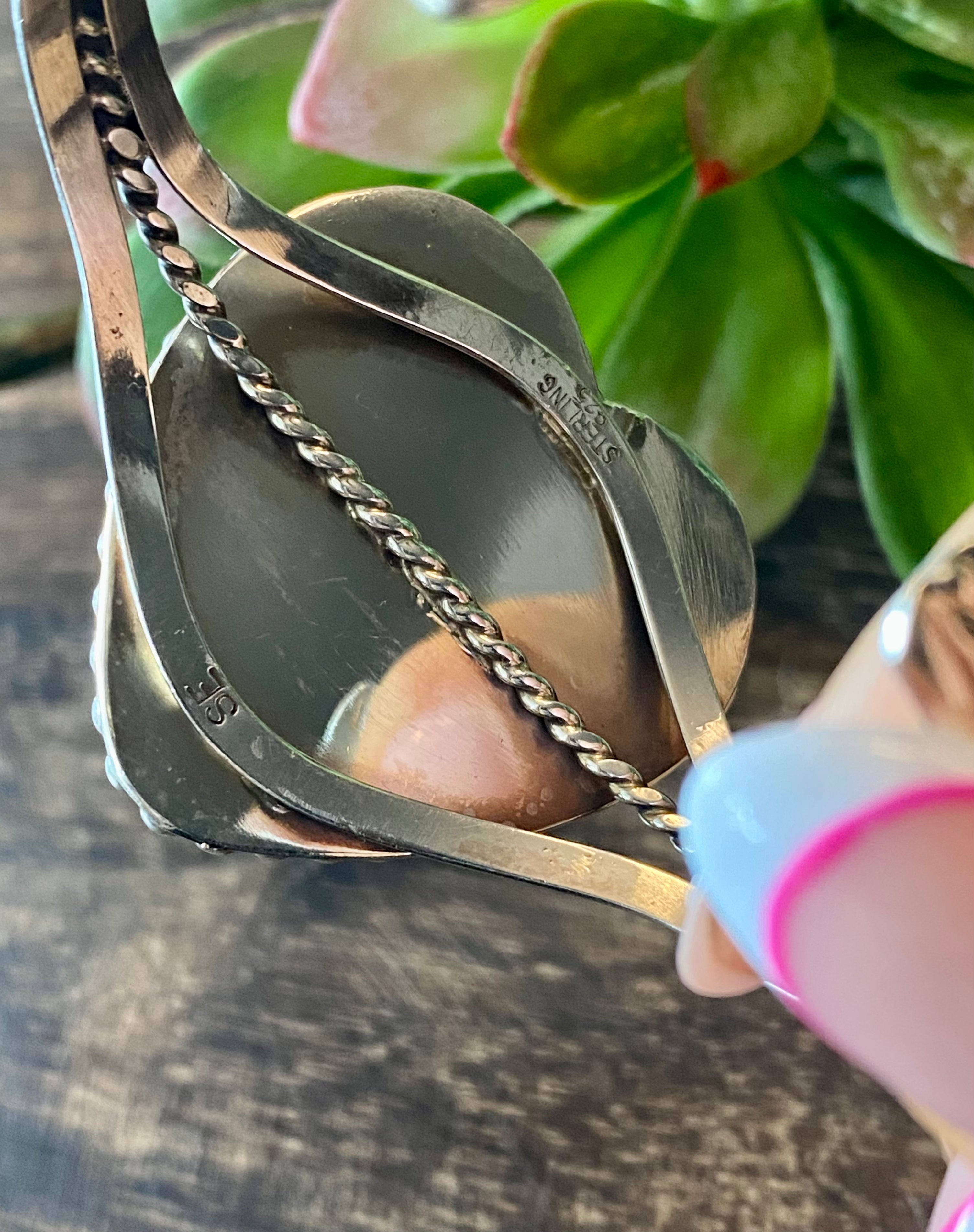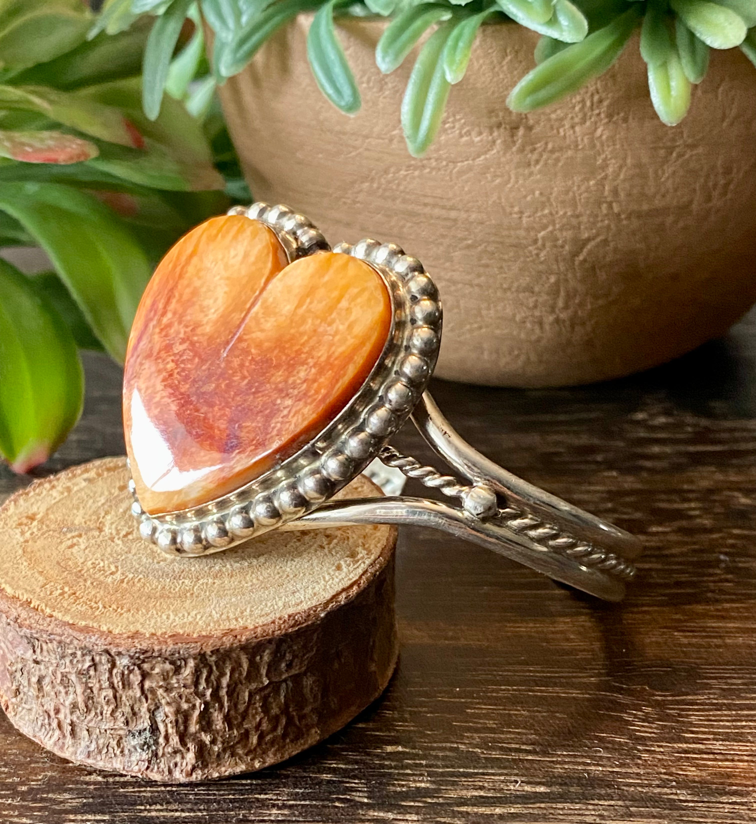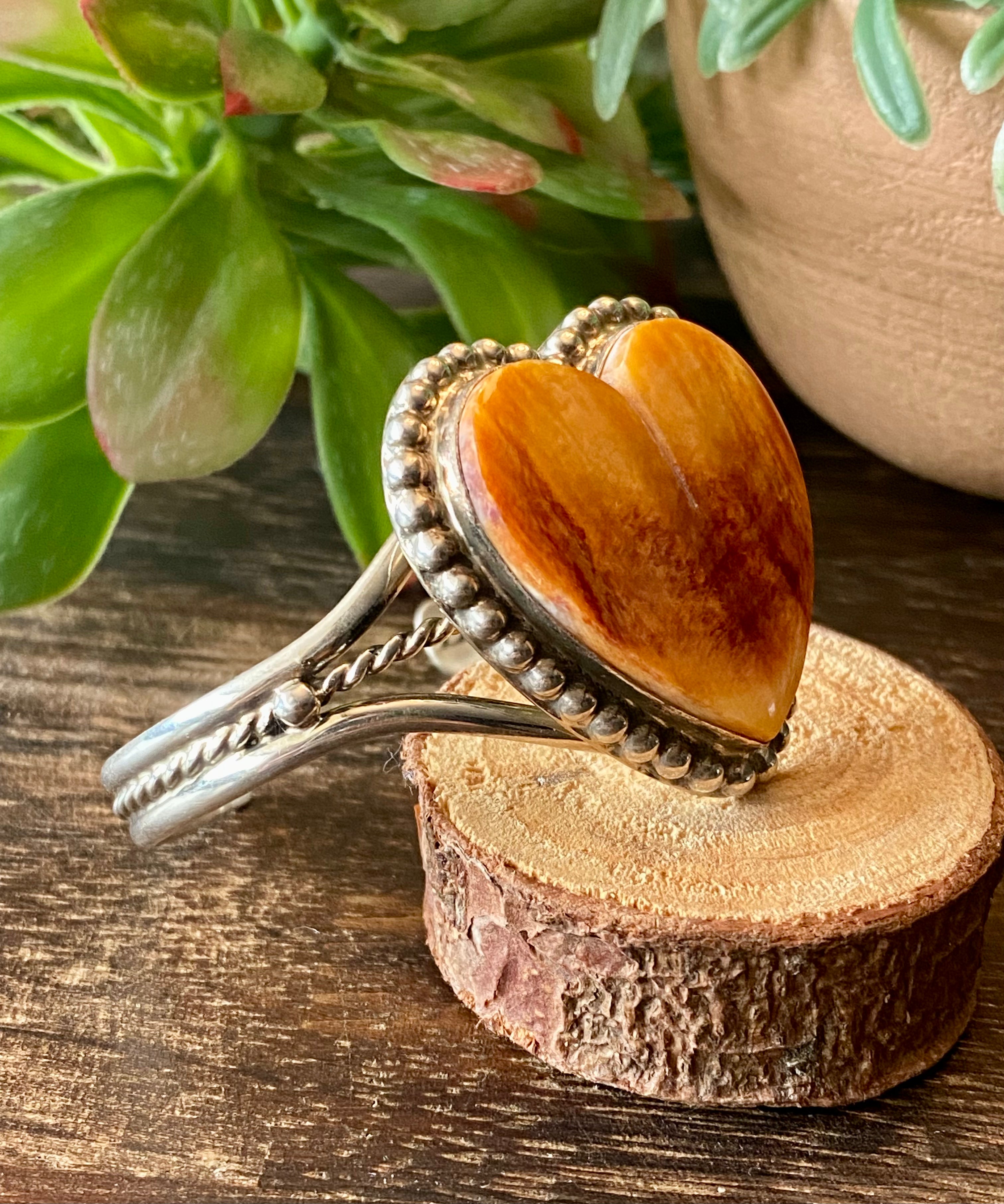 Navajo Made Spiny Oys & Sterling Silver Heart Cuff Bracelet