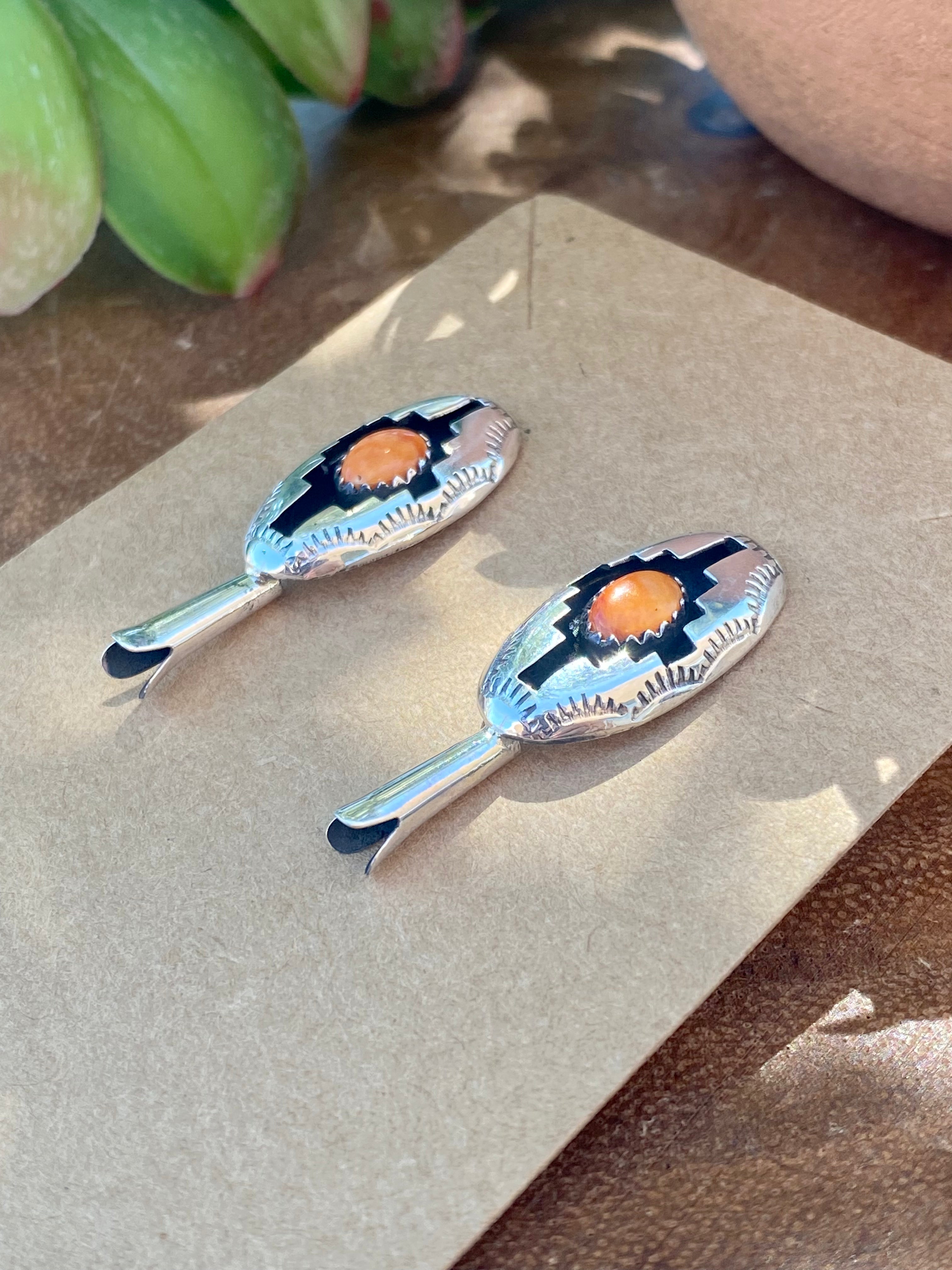 Navajo Made Spiny Oyster & Sterling Silver Blossom Post Dangle Earrings