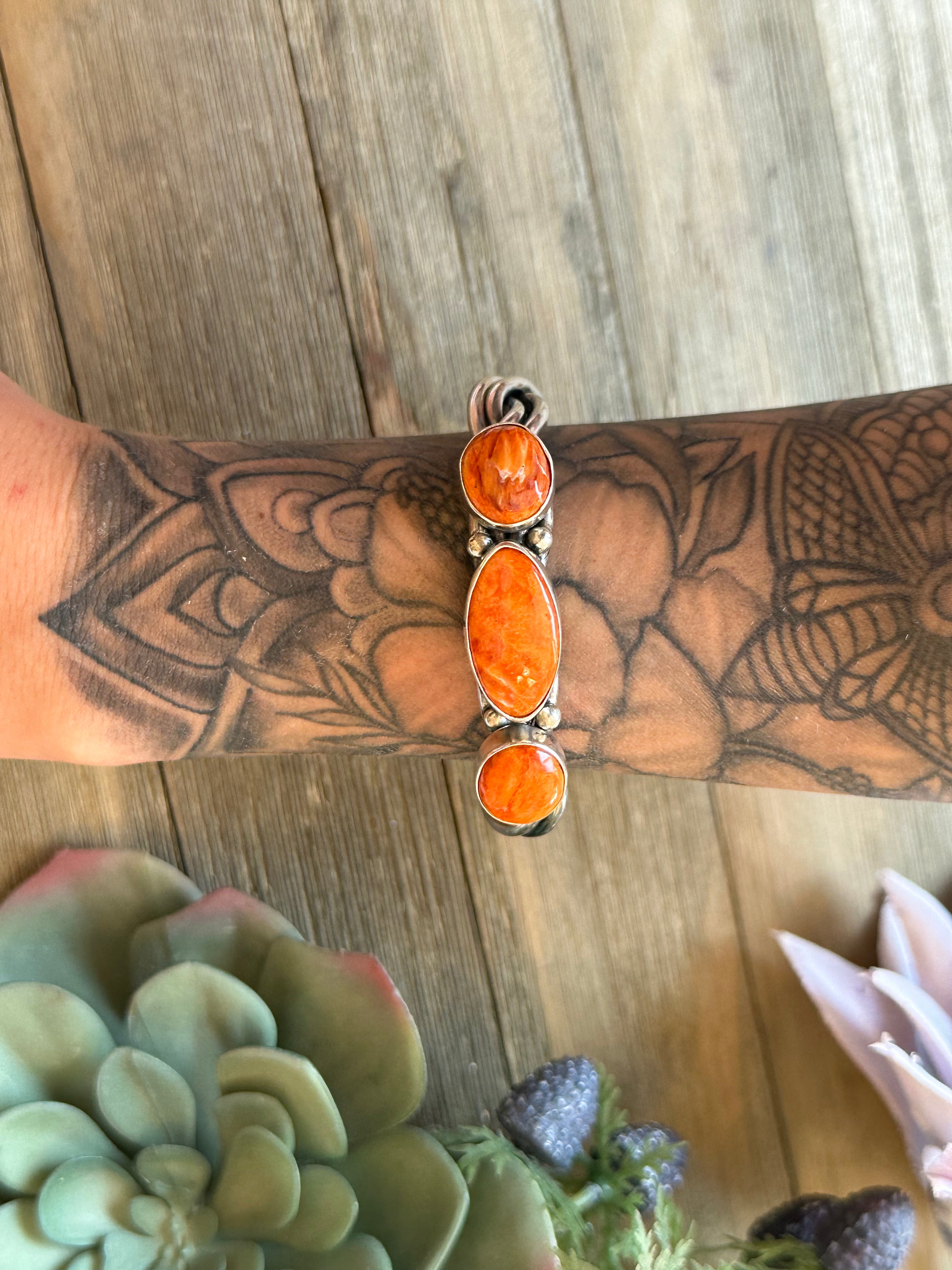 Navajo Made Spiny Oyster & Sterling Silver Cuff Bracelet